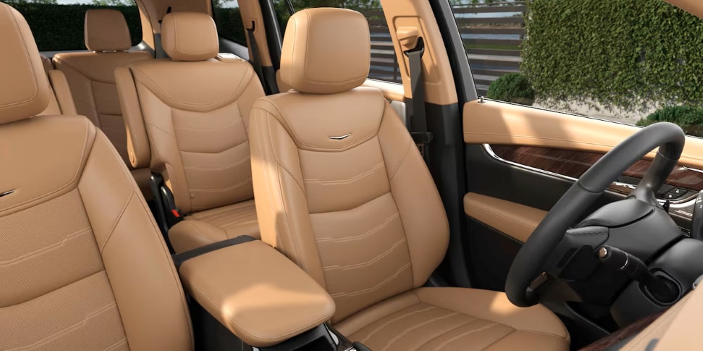 - Hands-free power liftgate with programmable memory height and Cadillac-branded projection light