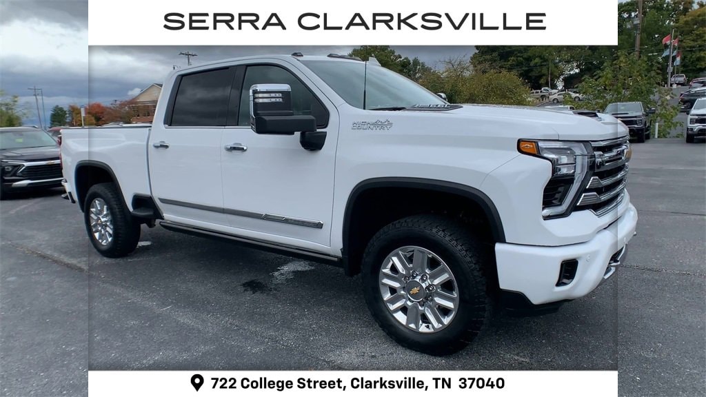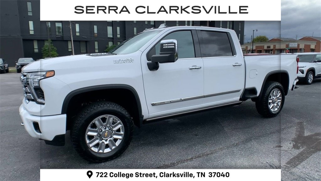 Chevrolet Certified Pre-Owned. One-owner local new car trade-in! Clean CARFAX. The Pre-Owned 2025 Chevrolet Silverado 2500HD High Country with 6.6L V8 at Serra Clarksville. Well equipped: Gooseneck/5th Wheel Prep Package (Black Chevytec Spray-On Bedliner), High Country Premium Package (Power Sunroof), Preferred Equipment Group 3LZ (120-Volt Bed Mounted Power Outlet, 120-Volt Interior Power Outlet, 170 Amp Alternator, 6 Rectangular Chromed Tubular Assist Steps, Auto-Dimming Inside Rear-View Mirror, Bed View Camera w/2 Trailer Camera Provisions, Bluetooth® For Phone, Chevrolet Connected Access Capable, Chrome Door Handles, Chrome Mirror Caps, Color-Keyed Carpeting Floor Covering, Compass, Deep-Tinted Glass, Electric Rear-Window Defogger, Front Carpeted Floor Mats, Front Chrome Recovery Hooks, Front LED Fog Lamps, Front Rain-Sensing Wipers, Heated 2nd Row Outboard Seats, Heated Steering Wheel, Hitch Guidance w/Hitch View, In-Vehicle Trailering App System, Keyless Open & Start, LED Cargo Area Lighting, Manual Tilt & Telescoping Steering Column, OnStar Services Capable, Polished Exhaust Tip, Power Door Locks, Power Front Windows w/Driver Express Up/Down, Power Front Windows w/Passenger Express Up/Down, Power Rear Windows w/Express Down, Power Sliding Rear Window w/Defogger, Push Button Start, Pwr Up/Down Tailgate Function w/Pwr Lock & Release, Rear Carpeted Floor Mats, Rear Cross Traffic Alert, Rear Wheelhouse Liners, Remote Vehicle Starter System, SiriusXM w/360L Trial Subscription, Standard Tailgate, Steering Wheel Audio Controls, Trailer Camera Provisions, Ultrasonic Front & Rear Park Assist, Unauthorized Entry Theft-Deterrent System, Universal Home Remote, Wi-Fi Hotspot Capable, Wireless Charging, Wireless Phone Projection, and Wrapped Steering Wheel), Suspension Package, Technology Package (15 Diagonal Multicolor Head-Up Display and Rear Camera Mirror), Up-Level Rear Seat w/Storage Package, Z71 Off-Road Package (Hill Descent Control and Off-Road Suspension), 10-Speed Automatic, 4WD, Jet Black Leather, 10-Way Power Driver Seat Adjuster w/Lumbar, 10-Way Power Passenger Seat Adjuster w/Lumbar, 3.73 Rear Axle Ratio, 4-Wheel Disc Brakes, 7 Speakers, 720 Cold-Cranking Amps Heavy-Duty Battery, ABS brakes, Air Conditioning, Alloy wheels, AM/FM radio: SiriusXM with 360L, Apple CarPlay/Android Auto, Auto High-beam Headlights, Auto-dimming door mirrors, Auto-dimming Rear-View mirror, Automatic temperature control, Bodyside moldings, BOSE Premium 7-Speaker Sound System, Brake assist, Bumpers: body-color, Delay-off headlights, Driver door bin, Driver Memory, Driver vanity mirror, Dual front impact airbags, Dual front side impact airbags, Durabed Pickup Bed, Electronic Stability Control, Emergency communication system: OnStar, EZ Lift Power Lock & Release Tailgate, Floor-Mounted Center Console, Front anti-roll bar, Front Bucket Seats, Front Center Armrest, Front dual zone A/C, Front fog lights, Front reading lights, Front wheel independent suspension, Fully automatic headlights, Garage door transmitter, Genuine wood console insert, Genuine wood dashboard insert, Genuine wood door panel insert, Heated door mirrors, Heated Driver & Front Outboard Passenger Seating, Heated front seats, Heated rear seats, Heated steering wheel, Illuminated entry, LED Smoked Amber Roof Marker Lamps, Low tire pressure warning, Memory seat, Multi-Flex Tailgate, Occupant sensing airbag, Outside temperature display, Overhead airbag, Overhead console, Panic alarm, Passenger door bin, Passenger vanity mirror, Perforated Leather Seat Trim, Power door mirrors, Power driver seat, Power passenger seat, Power steering, Power windows, Power-Retractable Assist Steps, Premium audio system: Chevrolet Infotainment 3 Premium, Radio: Chevrolet Infotainment 3 Premium System, Rain sensing wipers, Rear reading lights, Rear seat center armrest, Rear step bumper, Rear window defroster