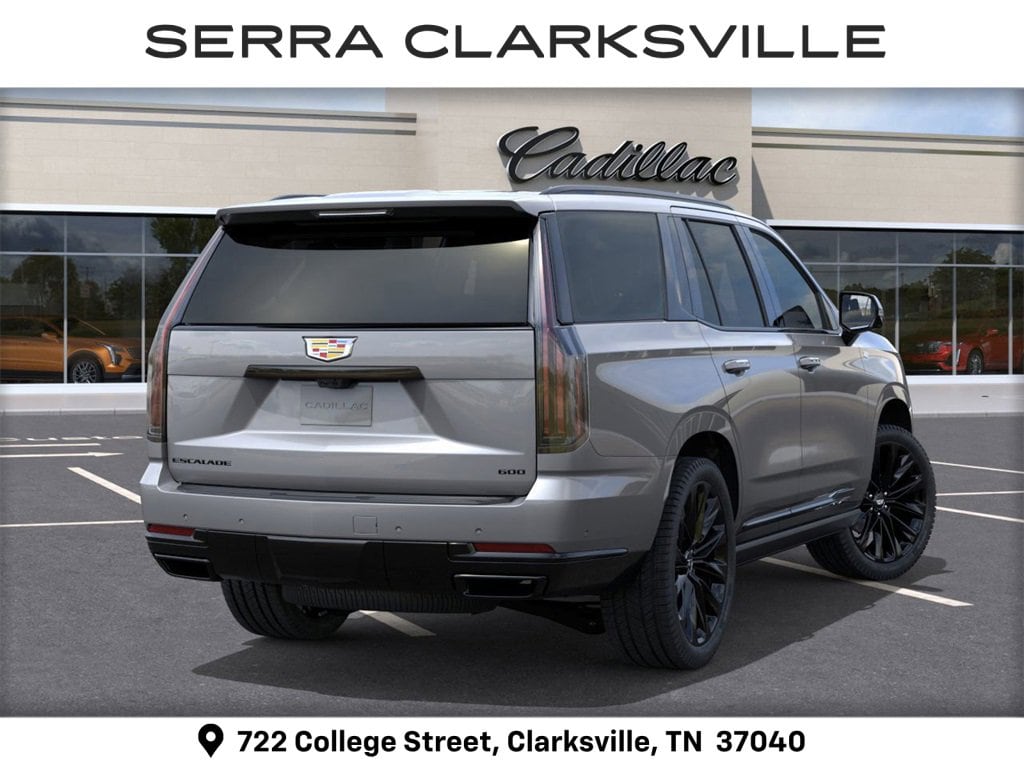 Silver Metallic 2026 Cadillac Escalade Platinum Sport For sale at Serra Cadillac Clarksville is well equipped with: Touring Package (Air Ride Adaptive Suspension, Power Open/Close Doors, and Soft Closing Front and Rear Doors), 4WD, Jet Blk Full Semi-Aniline Leather, 2-Presets Memory For Driver Seat Adjuster, 2-Speed Active Transfer Case, 3.23 Axle Ratio, 3rd row seats: split-bench, 4-Way Power Driver Lumbar Seat Adjuster, 4-Way Power Front Passenger Lumbar Seat Adjuster, 4-Wheel Disc Brakes, 8-Way Power Driver Seat Adjuster, 8-Way Power Front Passenger Seat Adjuster, ABS brakes, Active Noise Cancellation, Adaptive suspension, Air Conditioning, AKG Studio Reference 38-Speaker Audio System, Alloy wheels, AM/FM radio: SiriusXM with 360L, Apple CarPlay/Android Auto, Audio memory, Auto High-beam Headlights, Auto tilt-away steering wheel, Auto-dimming door mirrors, Auto-dimming Rear-View mirror, Automatic temperature control, Blind Zone Steering Assist with Trailering, Brake assist, Bumpers: body-color, Compass, Delay-off headlights, Door Lock and Latch Shields, Driver door bin, Driver Seat Power Bolster, Driver vanity mirror, Dual front impact airbags, Dual front side impact airbags, Electronic Limited-Slip Differential, Electronic Stability Control, Emergency communication system: OnStar Services capable, Exterior Parking Camera Rear, Four wheel independent suspension, Front anti-roll bar, Front Bucket Seats, Front Center Armrest w/Storage, Front dual zone A/C, Front Passenger Seat Power Bolster, Front reading lights, Full Semi-Aniline Leather Seats with Mini-Chevron, Fully automatic headlights, Garage door transmitter, Genuine wood console insert, Genuine wood dashboard insert, Genuine wood door panel insert, Glass Breakage Sensor, Headphones, Heads-Up Display, Heated and Ventilated Driver and Front Passenger Seats, Heated door mirrors, Heated Driver and Front Passenger Seats, Heated front seats, Heated rear seats, Heated steering wheel, Hitch Guidance with Hitch View, Illuminated entry, Illuminating Front and Rear Sill Plates, Integrated Trailer Brake Controller, Knee airbag, Lane Departure Warning System, Leather steering wheel, Low tire pressure warning, Magnetic Ride Control Suspension, Memory seat, Navigation System, Night Vision, Night vision lights, Occupant sensing airbag, Outside temperature display, Overhead airbag, Overhead console, Panic alarm, Passenger door bin, Passenger vanity mirror, Platinum Interior Trim, Power door mirrors, Power driver seat, Power Liftgate, Power Lumbar Massage Driver Seat, Power Lumbar Massage Front Passenger Seat, Power moonroof, Power Panoramic Tilt-Sliding Sunroof, Power passenger seat, Power steering, Power windows, Power-Retractable Assist Steps, Radio data system, Radio: Infotainment Experience, Rain sensing wipers, Rear air conditioning, Rear anti-roll bar, Rear audio controls, Rear reading lights, Rear Seat Entertainment System, Rear window defroster, Rear window wiper, Reconfigurable Full-Color Head-Up Display, Remote keyless entry, Security system, SiriusXM with 360L Trial Subscription, Smart Trailer Integration Indicator, Speed control, Split folding rear seat, Spoiler, Steering wheel memory, Steering wheel mounted audio controls, Tachometer, Telescoping steering wheel, Theft-Deterrent Alarm System, Tilt steering wheel, Traction control, Trailering App, Trailering Assist Guidelines, Trip computer, Turn signal indicator mirrors, Variably intermittent wipers, Vehicle Inclination Sensor, Vehicle Interior Movement Sensor, Ventilated front seats, Voltmeter, Wheel Locks, Wheels: 22 18-Spoke Alloy, and Wireless Apple CarPlay/Wireless Android Auto.
