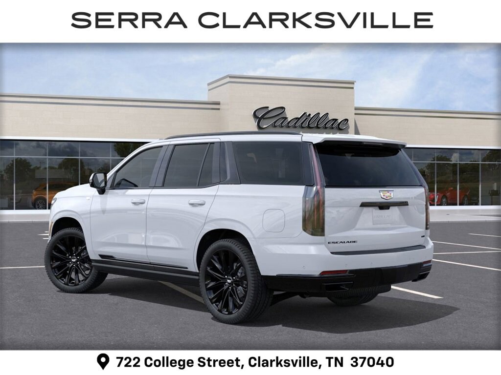 White 2026 Cadillac Escalade Platinum Edition For sale at Serra Cadillac Clarksville is well equipped with: Touring Package (Air Ride Adaptive Suspension, Power Open/Close Doors, and Soft Closing Front & Rear Doors), 4WD, Jet Blk Full Semi-Aniline Leather, 2-Presets Memory For Driver Seat Adjuster, 2-Speed Active Transfer Case, 3.23 Axle Ratio, 3rd row seats: split-bench, 4-Way Power Driver Lumbar Seat Adjuster, 4-Way Power Front Passenger Lumbar Seat Adjuster, 4-Wheel Disc Brakes, 8-Way Power Driver Seat Adjuster, 8-Way Power Front Passenger Seat Adjuster, ABS brakes, Active Noise Cancellation, Adaptive suspension, Air Conditioning, AKG Studio Reference 38-Speaker Audio System, Alloy wheels, AM/FM radio: SiriusXM with 360L, Apple CarPlay/Android Auto, Audio memory, Auto High-beam Headlights, Auto tilt-away steering wheel, Auto-dimming door mirrors, Auto-dimming Rear-View mirror, Automatic temperature control, Blind Zone Steering Assist w/Trailering, Brake assist, Bumpers: body-color, Compass, Delay-off headlights, Door Lock & Latch Shields, Driver door bin, Driver Seat Power Bolster, Driver vanity mirror, Dual front impact airbags, Dual front side impact airbags, Electronic Limited-Slip Differential, Electronic Stability Control, Emergency communication system: OnStar Services capable, Exterior Parking Camera Rear, Four wheel independent suspension, Front anti-roll bar, Front Bucket Seats, Front Center Armrest w/Storage, Front dual zone A/C, Front Passenger Seat Power Bolster, Front reading lights, Full Semi-Aniline Leather Seats w/Mini-Chevron, Fully automatic headlights, Garage door transmitter, Genuine wood console insert, Genuine wood dashboard insert, Genuine wood door panel insert, Glass Breakage Sensor, Headphones, Heads-Up Display, Heated & Ventilated Driver & Front Passenger Seats, Heated door mirrors, Heated Driver & Front Passenger Seats, Heated front seats, Heated rear seats, Heated steering wheel, Hitch Guidance w/Hitch View, Illuminated entry, Illuminating Front & Rear Sill Plates, Integrated Trailer Brake Controller, Knee airbag, Lane Departure Warning System, Leather steering wheel, Low tire pressure warning, Magnetic Ride Control Suspension, Memory seat, Navigation System, Night Vision, Night vision lights, Occupant sensing airbag, Outside temperature display, Overhead airbag, Overhead console, Panic alarm, Passenger door bin, Passenger vanity mirror, Platinum Interior Trim, Power door mirrors, Power driver seat, Power Liftgate, Power Lumbar Massage Driver Seat, Power Lumbar Massage Front Passenger Seat, Power moonroof, Power Panoramic Tilt-Sliding Sunroof, Power passenger seat, Power steering, Power windows, Power-Retractable Assist Steps, Radio data system, Radio: Infotainment Experience, Rain sensing wipers, Rear air conditioning, Rear anti-roll bar, Rear audio controls, Rear reading lights, Rear Seat Entertainment System, Rear window defroster, Rear window wiper, Reconfigurable Full-Color Head-Up Display, Remote keyless entry, Security system, SiriusXM w/360L Trial Subscription, Smart Trailer Integration Indicator, Speed control, Split folding rear seat, Spoiler, Steering wheel memory, Steering wheel mounted audio controls, Tachometer, Telescoping steering wheel, Theft-Deterrent Alarm System, Tilt steering wheel, Traction control, Trailering App, Trailering Assist Guidelines, Trip computer, Turn signal indicator mirrors, Variably intermittent wipers, Vehicle Inclination Sensor, Vehicle Interior Movement Sensor, Ventilated front seats, Voltmeter, Wheel Locks, Wheels: 22 18-Spoke Alloy, and Wireless Apple CarPlay/Wireless Android Auto.Ask us about special APR rates, lease offers and incentives available on most new 2026 Escalades. If you're shopping for a new Luxury SUV near Nashville, look no further than Serra Cadillac Clarksville, 722 College Street, Clarksville, TN Call 888-399-7307 or online at SerraCadillacClarksville.com. Veteran Owned-Value Driven, Serra Cadillac is the dealer of choice