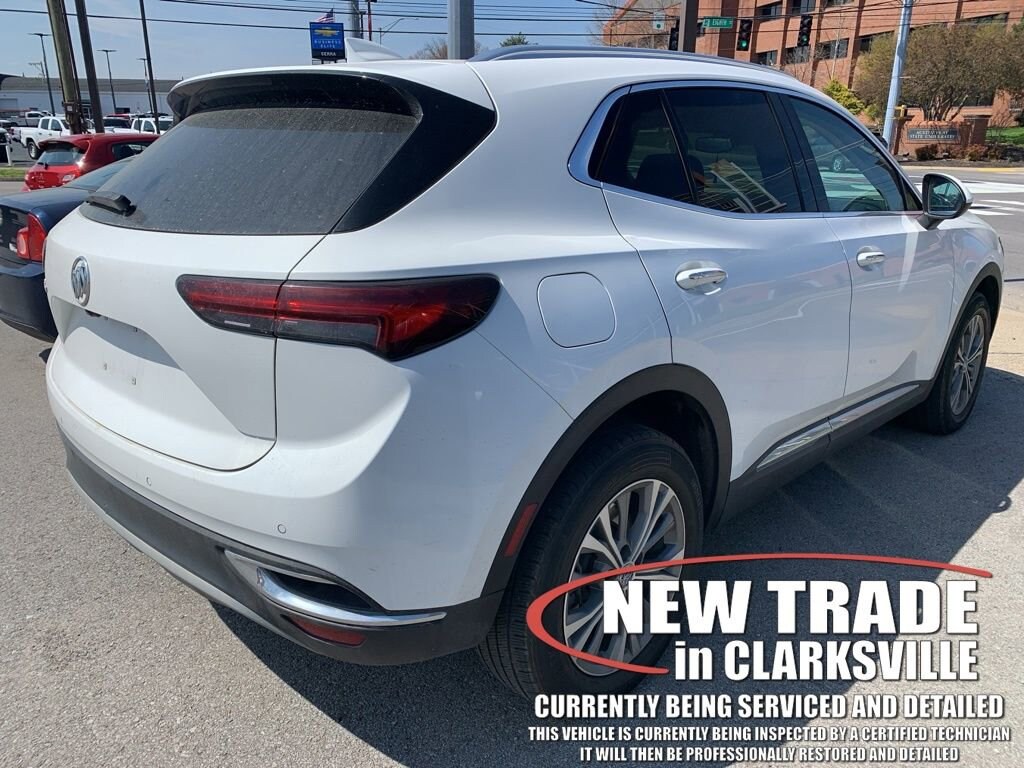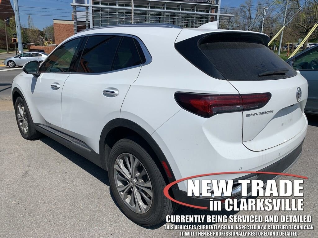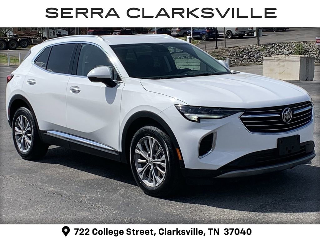 The Pre-Owned 2022 Buick Envision Preferred with 2.0L Turbocharged at Serra Clarksville. Well equipped: Comfort & Convenience Package (7-Speaker Audio System Feature w/Amplifier, Air Quality Indicator Sensor, Automatic Air Circulation/Air Quality Sensor, Dual-Zone ACC Air Conditioning, Hands Free Power Programmable Liftgate, Heated Driver & Front Passenger Seats, Heated Steering Wheel, Radio: Buick Infotainment System AM/FM Stereo, Remote Vehicle Starter System, SiriusXM Radio, and Wireless Apple CarPlay/Wireless Android Auto), Preferred Equipment Group 1SC, Safety Package (Lane Change Alert w/Side Blind Zone Alert and Rear Cross Traffic Alert), 3 Years of OnStar & Connected Services Plan, 3.47 Final Drive Axle Ratio, 4-Wheel Disc Brakes, 6 Speakers, 6-Speaker Audio System Feature, 8-Way Power Driver Seat Adjuster, ABS brakes, Air Conditioning, Alloy wheels, AM/FM radio: SiriusXM, Apple CarPlay/Android Auto, Auto High-beam Headlights, Auto-dimming door mirrors, Auto-dimming Rear-View mirror, Brake assist, Bumpers: body-color, Cloth w/Leatherette Seat Trim, Compass, Delay-off headlights, Driver door bin, Driver vanity mirror, Dual front impact airbags, Dual front side impact airbags, Electronic Stability Control, Emergency communication system: OnStar and Buick connected services capable, Four wheel independent suspension, Front anti-roll bar, Front Bin Center Console USB Ports, Front Bucket Seats, Front Center Armrest, Front Passenger 6-Way Manual Seat Adjuster, Front reading lights, Fully automatic headlights, Heated door mirrors, Illuminated entry, Knee airbag, Low tire pressure warning, Not Equipped w/Driver & Fr Passenger Heated Seats, Not Equipped w/Rear Park Assist, Occupant sensing airbag, Outside temperature display, Overhead airbag, Overhead console, Panic alarm, Passenger door bin, Passenger vanity mirror, Power door mirrors, Power driver seat, Power steering, Power windows, Premium audio system: Buick Infotainment System, Radio data system, Radio: 8 Diagonal Buick Infotainment System, Rear anti-roll bar, Rear reading lights, Rear seat center armrest, Rear window defroster, Rear window wiper, Remote keyless entry, Roof rack: rails only, Security system, Speed control, Split folding rear seat, Spoiler, Steering wheel mounted audio controls, Telescoping steering wheel, Tilt steering wheel, Traction control, Trip computer, USB Charging-Only Ports, Variably intermittent wipers, and Wheels: 18 Aluminum w/Light Charcoal Met Finish.