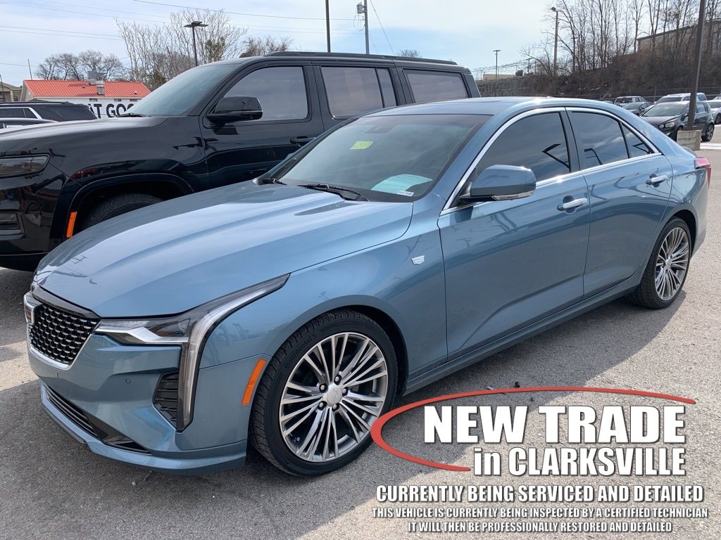 The Pre-Owned 2023 Cadillac CT4 Premium Luxury with 2.0L Turbocharged at Serra Clarksville. Well equipped: Climate Package (Driver 4-Way Power Lumbar Seat Adjuster, Front Passenger 4-Way Power Lumbar Seat Adjuster, Heated Driver & Front Passenger Seats, Heated Steering Wheel, and Ventilated Driver & Front Passenger Seats), Driver Assist Package (DISC) (Adaptive Cruise Control and Reverse Automatic Braking), Navigation & Bose Premium Audio Package, Preferred Equipment Group 1SD (Driver 2-Way Power Lumbar Seat Adjuster, Dual Digital Driver Information Center Display, Front Passenger 2-Way Power Lumbar Seat Adjuster, HD Rear Vision Camera, Leather-Wrapped Steering Wheel, LED Reflective Windshield Collision Alert, and Steering Wheel Mounted Paddle Shift Controls), Radio: Cadillac User Experience w/Embedded Nav (Bose Premium Surround Sound 14-Speaker System and SiriusXM w/360L), 4-Wheel Disc Brakes, 8 Speakers, ABS brakes, Air Conditioning, Alloy wheels, AM/FM radio: SiriusXM, Anti-whiplash front head restraints, Apple CarPlay/Android Auto, Auto High-beam Headlights, Auto-dimming door mirrors, Auto-dimming Rear-View mirror, Automatic Stop/Start w/Disable, Automatic temperature control, Brake assist, Bumpers: body-color, Compass, Delay-off headlights, Driver door bin, Driver vanity mirror, Dual front impact airbags, Dual front side impact airbags, Electronic Stability Control, Emergency communication system: OnStar and Cadillac connected services capable, Exterior Parking Camera Rear, Four wheel independent suspension, Front anti-roll bar, Front Bucket Seats, Front Center Armrest, Front dual zone A/C, Front Passenger 8-Way Power Seat Adjuster, Front reading lights, Fully automatic headlights, Garage door transmitter, HD Radio, Heated door mirrors, Illuminated entry, Knee airbag, Leather Seating Surfaces, Leather Shift Knob, Leather steering wheel, Low tire pressure warning, Memory seat, Occupant sensing airbag, Outside temperature display, Overhead airbag, Overhead console, Panic alarm, Passenger door bin, Passenger vanity mirror, Power door mirrors, Power driver seat, Power passenger seat, Power steering, Power Sunroof w/Express-Open & Venting, Power windows, Premium 8-Speaker Audio System Feature, Radio data system, Radio: Cadillac User Experience, Rain sensing wipers, Rear anti-roll bar, Rear reading lights, Rear seat center armrest, Rear window defroster, Remote keyless entry, Speed control, Speed-sensing steering, Split folding rear seat, Steering wheel mounted audio controls, Tachometer, Telescoping steering wheel, Tilt steering wheel, Traction control, Trip computer, Turn signal indicator mirrors, Variably intermittent wipers, Voltmeter, Wheels: 18 Alloy w/Diamond Cut/Midnight Silver Finish, and Wheels: 18 Alloy w/Sterling Silver Finish.