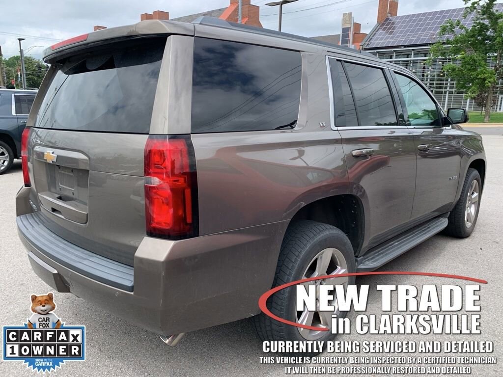 The Pre-Owned 2016 Chevrolet Tahoe LT with EcoTec3 5.3L V8 at Serra Clarksville. Well equipped: Luxury Package (2nd Row Pwr Release 60/40 Split Folding Bench Seat, 3rd Row 60/40 Power Fold Split-Bench, Extended-Range Remote Keyless Entry, Fog Lamps, Front & Rear Parking Assist, Hands Free Power Liftgate, Heated 2nd Row Seats, Heated Leather Wrapped Steering Wheel, Memory Settings, Passive Entry System, Power Tilt & Telescopic Steering Column w/Memory, Power-Folding Heated Outside Mirrors, Push Button Keyless Start, Rear Cross-Traffic Alert, Side Blind Zone Alert w/Lane Change Alert, and Wireless Charging), Preferred Equipment Group 1LT (1st & 2nd Row Color-Keyed Carpeted Floor Mats, 2nd Row 60/40 Split-Folding Manual Bench, 3rd Row Manual 60/40 Split-Folding Fold Flat Bench, 4-Wheel Antilock Disc Brakes, 5 12-Volt Auxiliary Power Outlets, Auto-Dimming Inside Rear-View Mirror, Black Assist Steps, Bose Premium 9-Speaker System, Color-Keyed Carpeting Floor Covering, Driver Inboard & Front Passenger Airbags, Electronic Cruise Control w/Set & Resume Speed, Enhanced Driver Instrument Information Display, Floor Console, Leather-Wrapped Steering Wheel, OnStar Basic Plan For 5 Years, Power Liftgate, Power-Adjustable Accelerator & Brake Pedals, Rear Park Assist w/Audible Warning, Roof-Mounted Luggage Rack Side Rails, SiriusXM Satellite Radio, and Universal Home Remote), Premium Smooth Ride Suspension Package, 4WD, Cocoa/Dune Leather, 18 x 8.5 Aluminum Wheels, 3.08 Rear Axle Ratio, 3rd row seats: split-bench, 4-Wheel Disc Brakes, 6-Way Power Front Passenger Seat Adjuster, 9 Speakers, ABS brakes, Adjustable pedals, Air Conditioning, Alloy wheels, AM/FM radio: SiriusXM, Apple CarPlay, Auto High-beam Headlights, Auto-dimming Rear-View mirror, Automatic temperature control, Brake assist, Bumpers: body-color, CD player, Compass, Delay-off headlights, Driver door bin, Driver vanity mirror, Dual front impact airbags, Dual front side impact airbags, Electronic Stability Control, Emergency communication system: OnStar, Exterior Parking Camera Rear, Forward Collision Alert Sensor Indicator, Front anti-roll bar, Front Bucket Seats, Front Center Armrest, Front dual zone A/C, Front Heated Reclining Bucket Seats, Front reading lights, Front wheel independent suspension, Fully automatic headlights, Garage door transmitter, Heated door mirrors, Heated front seats, Illuminated entry, IntelliBeam Headlamps, Lane Departure Warning System, Lane Keep Assist, Leather-Appointed Seat Trim, Low tire pressure warning, Memory seat, Occupant sensing airbag, Outside temperature display, Overhead airbag, Overhead console, Panic alarm, Passenger door bin, Passenger vanity mirror, Pedal memory, Polished Exhaust Tip, Power door mirrors, Power driver seat, Power passenger seat, Power Release 2nd Row Bucket Seats, Power steering, Power Sunroof, Power windows, Premium audio system: Chevrolet MyLink, Radio: Chevrolet MyLink AM/FM Stereo, Radio: Chevrolet MyLink w/Navigation/AM/FM Stereo, Rain sensing wipers, Rear air conditioning, Rear anti-roll bar, Rear reading lights, Rear seat center armrest, Rear window defroster, Rear window wiper, Remote keyless entry, Roof rack: rails only, Safety Alert Driver Seat, Security system, Single-Slot CD/MP3 Player, Speed control, Speed-sensing steering, Split folding rear seat, Spoiler, Steering wheel mounted audio controls, Tachometer, Telescoping steering wheel, Tilt steering wheel, Traction control, Trip computer, Unauthorized Entry Electrical Theft Deterrent Sys., Variably intermittent wipers, Voltmeter, and Wheels: 20 x 9 Polished-Aluminum.