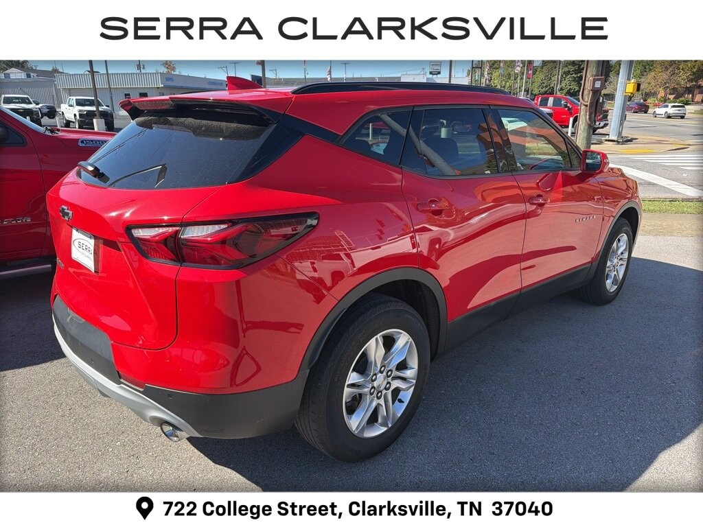 Clean CARFAX. Red Hot 2019 Chevrolet Blazer 2LTThe Pre-Owned 2019 Chevrolet Blazer with 3.6L V6 SIDI DOHC VVT at Serra Clarksville. Well equipped: Convenience & Driver Confidence Package (Black Roof Rails, Heated Driver & Front Passenger Seats, Inside Rear-View Auto-Dimming Mirror, Lane Change Alert w/Side Blind Zone Alert, Outside Heated Power-Adjustable Body-Color Mirrors, Rear Cross Traffic Alert, Rear Park Assist w/Audible Warning, Rear Power Programmable Liftgate, Remote Vehicle Starter System, and Universal Home Remote), Floor Liner Package (LPO) (1st & 2nd Row All-Weather Floor Liner (LPO) and Integrated Cargo Liner (LPO)), Preferred Equipment Group 2LT (155 Amp Alternator), 3.49 Final Drive Ratio, 4-Wheel Disc Brakes, 6 Speakers, 6-Speaker Audio System Feature, ABS brakes, Air Conditioning, Alloy wheels, AM/FM radio: SiriusXM, Apple CarPlay/Android Auto, Automatic temperature control, Brake assist, Bumpers: body-color, Child-Seat-Sensing Airbag, Compass, Delay-off headlights, Driver door bin, Driver vanity mirror, Dual front impact airbags, Dual front side impact airbags, Electronic Stability Control, Emergency communication system: OnStar and Chevrolet connected services capable, Four wheel independent suspension, Front & Rear Black Bowtie Emblems (LPO), Front anti-roll bar, Front Bucket Seats, Front Center Armrest, Front dual zone A/C, Front reading lights, Fully automatic headlights, Heated door mirrors, High-Intensity Discharge Headlights, Illuminated entry, Knee airbag, Leather Shift Knob, Low tire pressure warning, Occupant sensing airbag, Outside temperature display, Overhead airbag, Overhead console, Panic alarm, Passenger door bin, Passenger vanity mirror, Power door mirrors, Power driver seat, Power steering, Power windows, Premium Cloth Seat Trim, Radio data system, Radio: Chevrolet Infotainment 3 System, Rear anti-roll bar, Rear reading lights, Rear seat center armrest, Rear window defroster, Rear window wiper, Remote keyless entry, Ride & Handling Suspension, Security system, Speed control, Speed-sensing steering, Split folding rear seat, Spoiler, Steering wheel mounted audio controls, Tachometer, Telescoping steering wheel, Tilt steering wheel, Traction control, Trip computer, Variably intermittent wipers, Voltmeter, and Wheels: 18 Bright Silver Aluminum.FWD 3.6L V6 SIDI DOHC VVT 9-Speed AutomaticRecent Arrival! 20/26 City/Highway MPGAwards:* JD Power Automotive Performance, Execution and Layout (APEAL) Study