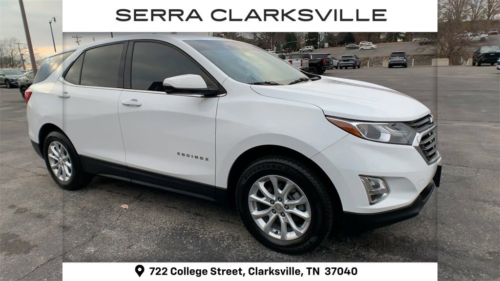 The Pre-Owned 2019 Chevrolet Equinox LT with 1.5L DOHC at Serra Clarksville. Well equipped: Cargo Package (LPO) (Retractable Cargo Shade and Vertical Cargo Net (LPO)), Driver Confidence Package (Lane Change Alert w/Side Blind Zone Alert, Outside Heated Power-Adjustable Mirrors, Rear Cross Traffic Alert, and Rear Park Assist w/Audible Warning), Driver Confidence Plus Package (3-Spoke Leather-Wrapped Steering Wheel, Following Distance Indicator, Forward Collision Alert, Front Pedestrian Braking, IntelliBeam Auto High Beam Headlamp Control, Lane Keep Assist w/Lane Departure Warning, and Low Speed Forward Automatic Braking), Interior Protection Package (LPO) (All-Weather Floor Mats and Cargo Mat), Preferred Equipment Group 2FL, AWD, 17 Aluminum Wheels, 2 Rear USB Charging-Only Ports, 2 USB Ports & Auxiliary Input Jack, 2-Way Power Driver Lumbar Control Seat Adjuster, 3.87 Final Drive Axle Ratio, 4-Wheel Disc Brakes, 6 Speaker Audio System Feature, 6 Speakers, 8-Way Power Driver Seat Adjuster, ABS brakes, Air Conditioning, Alloy wheels, AM/FM radio: SiriusXM, Apple CarPlay/Android Auto, Auto High-beam Headlights, Bluetooth® For Phone, Brake assist, Bumpers: body-color, Compass, Delay-off headlights, Driver door bin, Driver vanity mirror, Dual front impact airbags, Dual front side impact airbags, Electronic Stability Control, Emergency communication system: OnStar and Chevrolet connected services capable, Four wheel independent suspension, Front anti-roll bar, Front Bucket Seats, Front Center Armrest, Front Passenger 4-Way Manual Seat Adjuster, Front reading lights, Fully automatic headlights, Heated door mirrors, High-Intensity Discharge Headlights, Illuminated entry, Low tire pressure warning, Occupant sensing airbag, Outside temperature display, Overhead airbag, Overhead console, Panic alarm, Passenger door bin, Passenger vanity mirror, Power door mirrors, Power driver seat, Power steering, Power windows, Premium audio system: Chevrolet MyLink, Premium Cloth Seat Trim, Radio data system, Radio: Chevrolet Infotainment 3 System w/AM/FM, Rear anti-roll bar, Rear reading lights, Rear seat center armrest, Rear window defroster, Rear window wiper, Remote keyless entry, Security system, SiriusXM Radio, Speed control, Speed-sensing steering, Split folding rear seat, Spoiler, Steering wheel mounted audio controls, Tachometer, Telescoping steering wheel, Tilt steering wheel, Traction control, Trip computer, Turn signal indicator mirrors, and Variably intermittent wipers.
