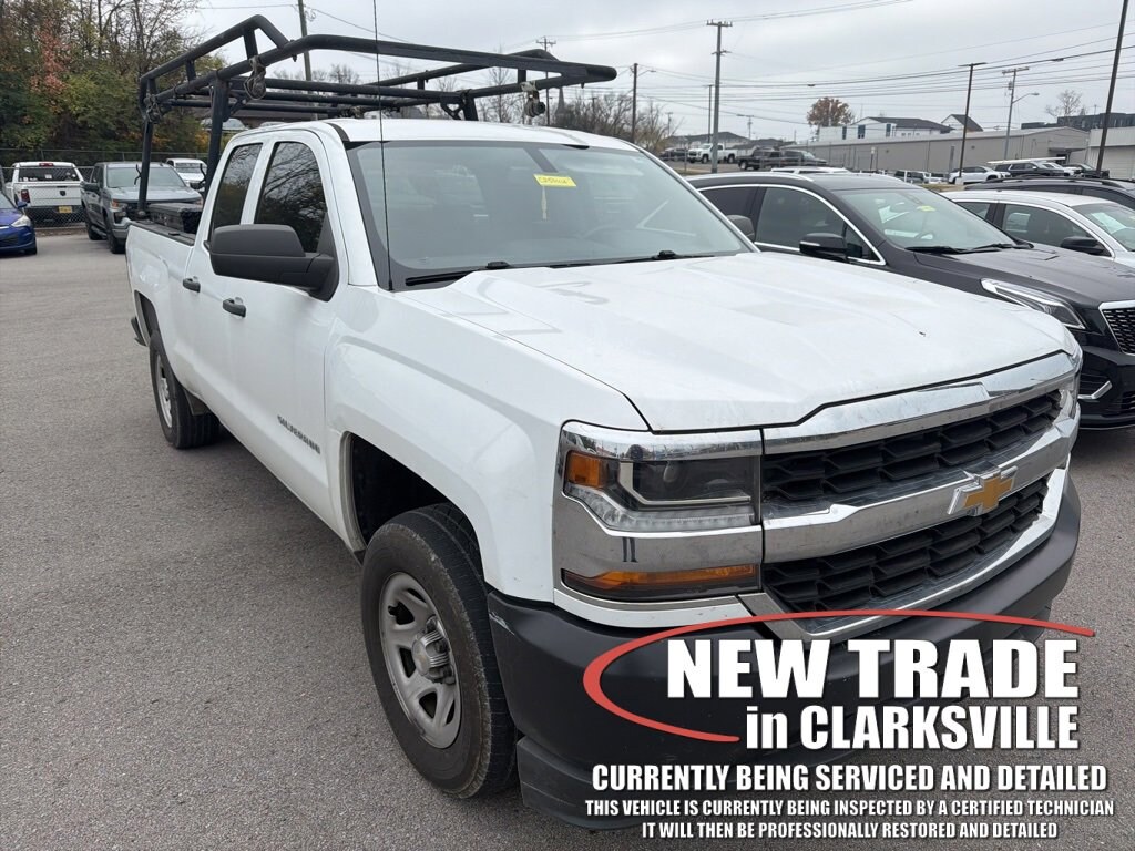 One-owner local new car trade-in! Clean CARFAX. White 2019 Chevrolet Silverado 1500 LD WT WITH UTILITY RACK!! The Pre-Owned 2019 Chevrolet Silverado 1500 LD WT with EcoTec3 5.3L V8 at Serra Clarksville. Well equipped: Preferred Equipment Group 1WT (3-Passenger Full-Width Folding Rear Bench Seat, Chrome Grille Surround, Driver Information Center, Graphite-Colored Rubberized-Vinyl Floor Covering, Manual Tilt-Wheel Steering Column, and Solar Absorbing Tinted Glass), WT Convenience Package (110-Volt AC Power Outlet, Black Power-Adjustable Heated Outside Mirrors, Deep-Tinted Glass, Remote Keyless Entry, and Remote Locking Tailgate), 3.42 Rear Axle Ratio, 4-Wheel Disc Brakes, 40/20/40 Front Split Bench Seat, 6 Speakers, ABS brakes, Air Conditioning, AM/FM radio, Brake assist, Cloth Seat Trim, Delay-off headlights, Driver door bin, Dual front impact airbags, Dual front side impact airbags, Electronic Stability Control, Exterior Parking Camera Rear, Front anti-roll bar, Front Center Armrest w/Storage, Front License Plate Kit, Front reading lights, Front wheel independent suspension, Fully automatic headlights, Heavy Duty Suspension, High-Intensity Discharge Headlights, Low tire pressure warning, Occupant sensing airbag, Overhead airbag, Overhead console, Passenger door bin, Passenger vanity mirror, Power steering, Power windows, Premium audio system: Chevrolet MyLink, Radio data system, Radio: AM/FM 7 Diagonal Color Touch Screen, Rear reading lights, Rear step bumper, Speed control, Speed-sensing steering, Tachometer, Tilt steering wheel, Traction control, Trip computer, Variably intermittent wipers, Voltmeter, and Wheels: 17 x 8 Painted Steel.