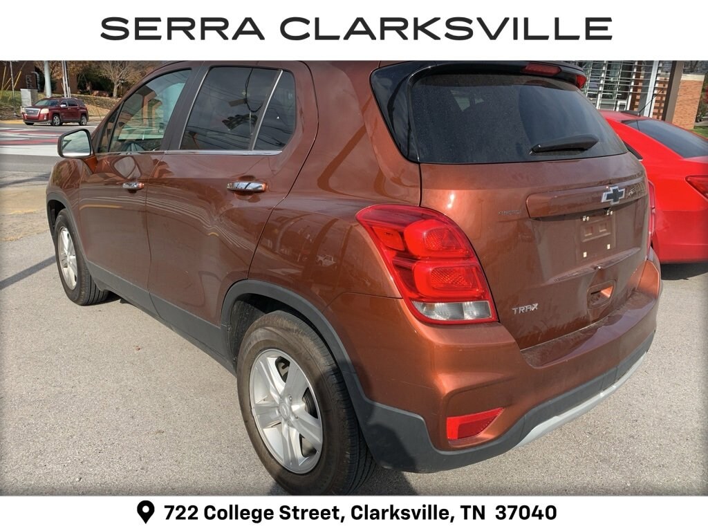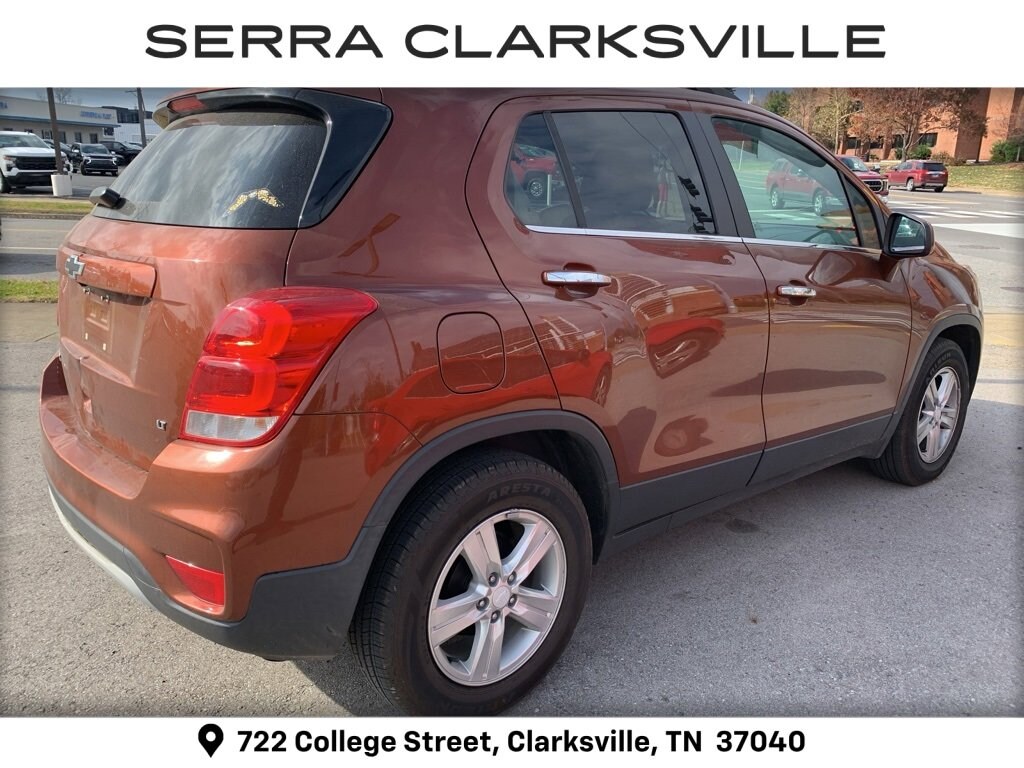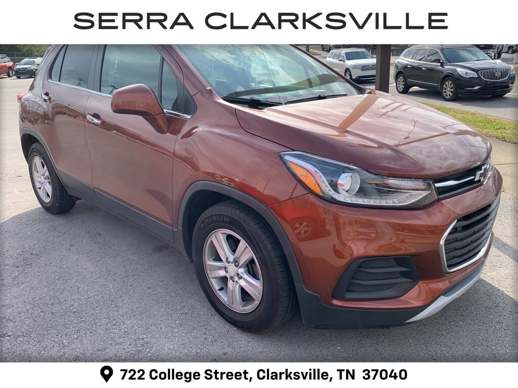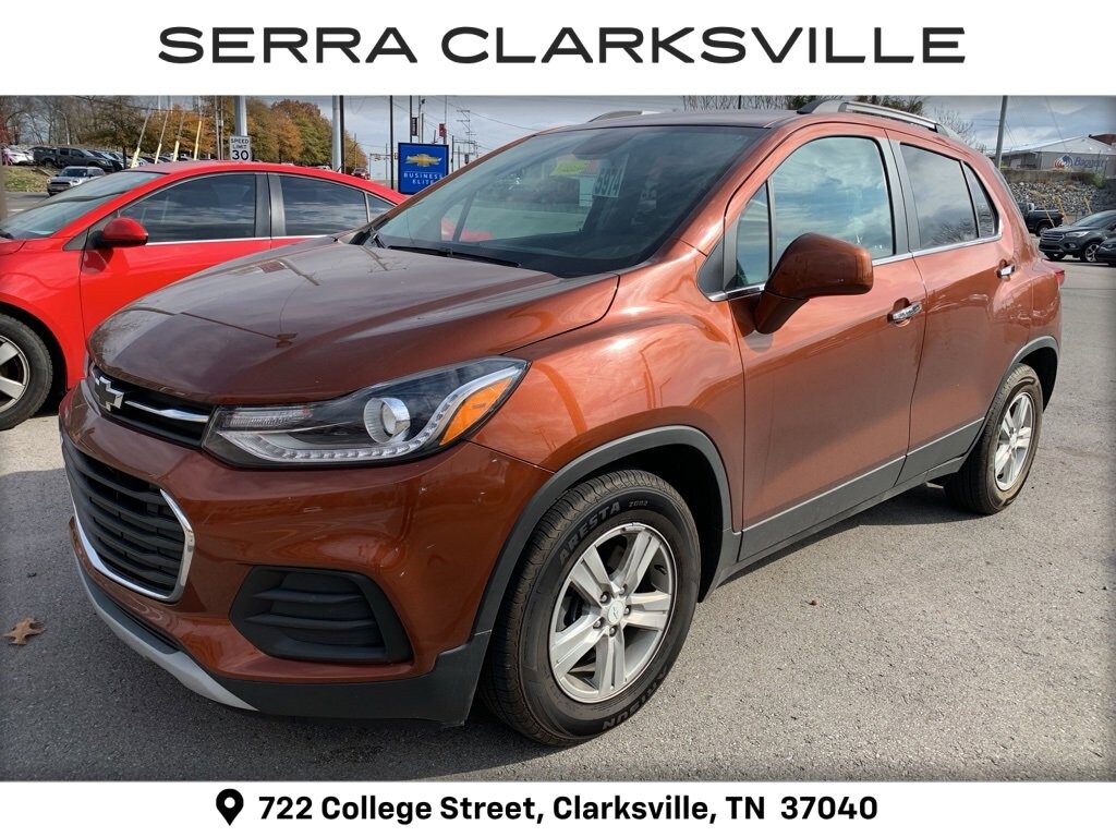 Clean CARFAX. Dark Copper Metallic 2019 Chevrolet Trax LTThe Pre-Owned 2019 Chevrolet Trax LT with ECOTEC 1.4L I4 SMPI DOHC Turbocharged VVT at Serra Clarksville. Well equipped: LT Convenience Package (2 Spare Keys Key System, 3-Spoke Leather-Wrapped Steering Wheel, 6-Way Power Driver Seat Adjuster, Body-Color Door Handles w/Chrome Accent, Deluxe Cloth/Leatherette Seat Trim, Keyless Open w/Panic Alarm, and Keyless Start), Preferred Equipment Group 1LT, 16 Aluminum Wheels, 2 USB Ports w/Auxiliary Input Jack, 2-Way Manual Front Passenger Seat Adjuster, 3.53 Final Drive Axle Ratio, 4-Way Manual Driver Seat Adjuster, 6 Speakers, 6-Speaker Audio System Feature, ABS brakes, Air Conditioning, Alloy wheels, AM/FM radio: SiriusXM, Apple CarPlay/Android Auto, Black Bowtie (LPO), Black Front & Rear All-Weather Floor Liners (LPO), Brake assist, Bumpers: body-color, Cargo Tray, Compass, Delay-off headlights, Deluxe Cloth Seat Trim, Driver door bin, Driver vanity mirror, Driver's Seat Mounted Armrest, Dual front impact airbags, Dual front side impact airbags, Electronic Stability Control, Emergency communication system: OnStar and Chevrolet connected services capable, Exterior Parking Camera Rear, Front anti-roll bar, Front Bucket Seats, Front Bucket Seats w/Driver Power Lumbar, Front License Plate Bracket, Front reading lights, Front wheel independent suspension, Fully automatic headlights, Heated door mirrors, Illuminated entry, Knee airbag, Low tire pressure warning, Occupant sensing airbag, Outside temperature display, Overhead airbag, Panic alarm, Passenger door bin, Passenger vanity mirror, Power door mirrors, Power steering, Power windows, Premium audio system: Chevrolet MyLink, Radio data system, Radio: Chevrolet Infotainment 3 System, Rear seat center armrest, Rear side impact airbag, Rear window defroster, Rear window wiper, Remote keyless entry, Roof rack: rails only, Security system, SiriusXM Radio, Speed control, Speed-sensing steering, Split folding rear seat, Spoiler, Steering wheel mounted audio controls, Tachometer, Telescoping steering wheel, Tilt steering wheel, Traction control, Trip computer, and Variably intermittent wipers.FWD ECOTEC 1.4L I4 SMPI DOHC Turbocharged VVT 6-Speed AutomaticRecent Arrival! 26/31 City/Highway MPG