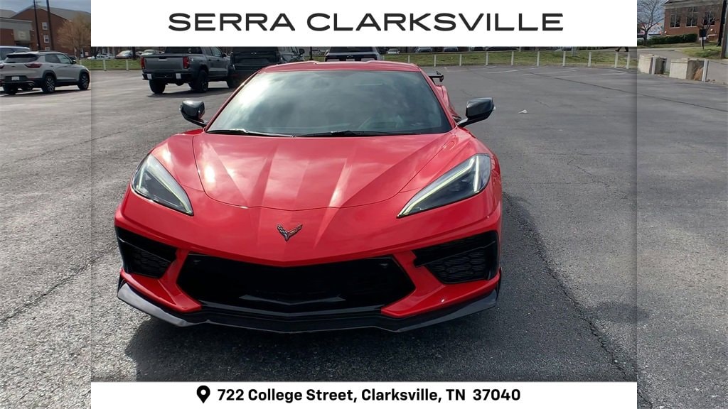 Clean CARFAX. Torch Red 2020 Chevrolet Corvette Stingray 3LTThe Pre-Owned 2020 Chevrolet Corvette Stingray with 6.2L V8 at Serra Clarksville. Well equipped: Carbon Flash Metallic Painted Outside Mirrors (Carbon Flash Metallic-Painted Outside Mirrors), Custom Leather Wrapped Interior Package, Engine Appearance Package, Memory Driver & Passenger Convenience Package, Preferred Equipment Group 3LT (2 Cargo Nets, Driver Power Bolster Seat Adjuster, Electrical Theft Deterrent System, HD Front & Rear Vision Cameras, Head-Up Display, Heated & Vented Driver & Passenger Seats, Heated Steering Wheel, Passenger Power Bolster Seat Adjuster, Performance Data & Video Recorder, Power Driver Lumbar Control Seat Adjuster, Power Passenger Lumbar Control Seat Adjuster, Power-Adjustable Outside Heated Mirrors, Rear Camera Mirror, Rear Cross Traffic Alert, Side Blind Zone Alert, Sueded Microfiber-Wrapped Upper Interior Trim Pkg, Universal Home Remote, Vehicle Inclination Theft Deterrent Sensor, Vehicle Interior Movement Theft Deterrent Sensor, and Wireless Charging for Devices), Z51 Performance Package (Electronic Limited-Slip Differential, Heavy-Duty Cooling System, Performance Exhaust w/Stainless-Steel Tips, Performance Rear Axle Ratio, Rear Z51 Spoiler, Z51 Performance Brakes, and Z51 Performance Suspension), 14 Speakers, 4-Wheel Disc Brakes, 8-Way Power Driver Seat Adjuster, 8-Way Power Passenger Seat Adjuster, ABS brakes, Adrenaline Red Custom Leather Stitch, Air Conditioning, Alloy wheels, AM/FM radio: SiriusXM, Apple CarPlay/Android Auto, Auto-dimming door mirrors, Auto-dimming Rear-View mirror, Automatic temperature control, Black Lug Nuts (LPO), Black Wheel Locks (LPO), Body-Color Removeable Roof Panel, Bose Performance Series Sound System w/14 Speakers, Brake assist, Bumpers: body-color, Carbon Fiber Interior Trim, Compass, Custom Interior Trim & Seat Combination, Delay-off headlights, Driver door bin, Driver vanity mirror, Dual front impact airbags, Dual front side impact airbags, Edge Red LT2 Engine Cover (LPO), Edge Red-Painted Calipers, Electronic Stability Control, Emergency communication system: OnStar and Chevrolet connected services capable, Four wheel independent suspension, Front anti-roll bar, Front Bucket Seats, Front Center Armrest, Front dual zone A/C, Front Lift Adjustable Height w/Memory, Front reading lights, Fully automatic headlights, Garage door transmitter, GT2 Bucket Seats, HD Radio, Heads-Up Display, Heated door mirrors, Heated front seats, Heated steering wheel, Illuminated entry, Illuminated Sill Plates w/Stingray Logo (LPO), Jake Logo Wheel Center Caps (LPO), Leather Shift Knob, Leather steering wheel, Low tire pressure warning, Memory seat, Napa Lthr Seating Surfaces w/Perforated Inserts, Navigation System, Occupant sensing airbag, Outside temperature display, Overhead console, Panic alarm, Passenger door bin, Passenger vanity mirror, Performance Traction Management, Power door mirrors, Power driver seat, Power passenger seat, Power steering, Power windows, Radio data system, Radio: Chevrolet Infotainment 3 Premium System, Rear anti-roll bar, Rear Parking Sensors, Rear window defroster, Remote keyless entry, Roof Panel Storage Pouch (LPO), Security system, SiriusXM Radio, Speed control, Speed-sensing steering, Sport steering wheel, Steering wheel memory, Steering wheel mounted audio controls, Tachometer, Telescoping steering wheel, Tilt steering wheel, Tire Pressure Monitor (LPO), Traction control, Trip computer, Turn signal indicator mirrors, Variably intermittent wipers, Ventilated front seats, Voltmeter, Wheels: 19 x 8.5 Fr/20 x 11 Rr Black (LPO), Wheels: 19 x 8.5 Fr/20 x 11 Rr Bright Silver, and Z51 Perf Suspension w/Magnetic Selective Ride Cntrl.RWD 6.2L V8 8 Speed Dual ClutchRecent Arrival! Odometer is 7841 miles below market average! 15/27 City/Highway MPGAwards:* Car and Driver 10 Best * Motor Trend Car of the Year * Ward's 10 Best Engines and Propulsion Syst
