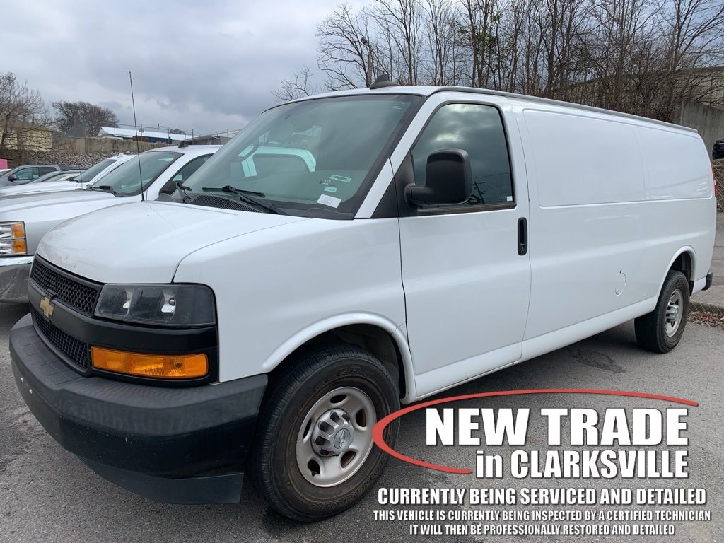 The Pre-Owned 2020 Chevrolet Express 2500 Work Van with 4.3L V6 at Serra Clarksville. Well equipped: Driver Convenience Package (Cruise Control and Tilt Steering Wheel), Preferred Equipment Group 1WT, 16 x 6.5 Steel Wheels, 2 Speakers, 3.42 Rear Axle Ratio, 4-Wheel Disc Brakes, 8-Point Digital Compass, ABS brakes, Air Conditioning, AM/FM radio, AM/FM Stereo w/MP3 Player, Auxiliary Lighting, Delay-off headlights, Driver & Front Passenger High-Back Bucket Seats, Driver & Front Passenger Vinyl Visors, Driver door bin, Driver's Seat Mounted Armrest, Dual front impact airbags, Dual front side impact airbags, Electronic Stability Control, Emergency communication system, Exterior Parking Camera Rear, Fixed Rear Door Window Glass, Front anti-roll bar, Front Bucket Seats, Front Reclining High-Back Bucket Seats, Front wheel independent suspension, Full-Length Black Rubberized-Vinyl Floor Covering, Fully automatic headlights, Heavy-Duty Rear Locking Differential, Low tire pressure warning, Occupant sensing airbag, Overhead airbag, Passenger cancellable airbag, Passenger door bin, Passenger seat mounted armrest, Power steering, Power windows, Power-Adjustable Black Outside Heated Mirrors, Reading Lights, Rear Door Glass, Remote Keyless Entry, Seat-Mounted & Roof-Rail Side-Impact Airbags, Single-Zone Manual Air Conditioning, Tachometer, Theft Alarm Notification, Traction control, Trip computer, Underhood Lights, Variably intermittent wipers, Vinyl Seat Trim, and Voltmeter.