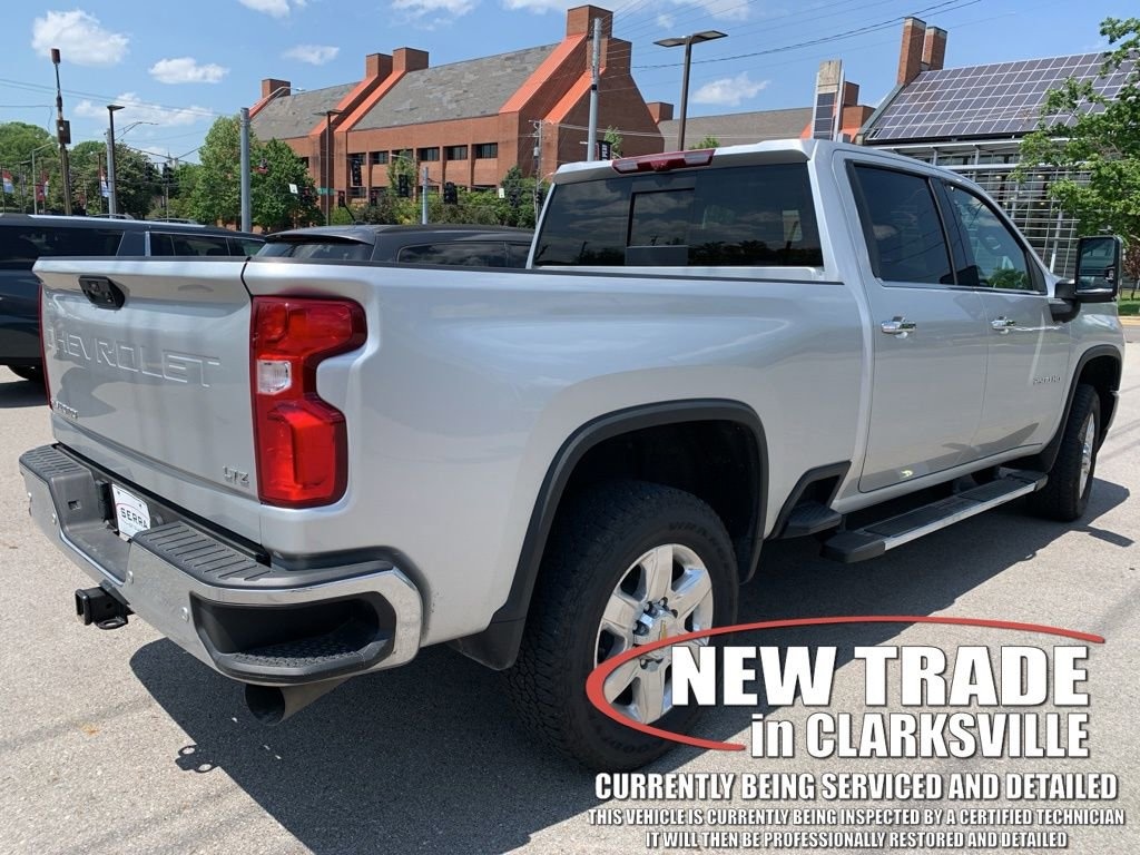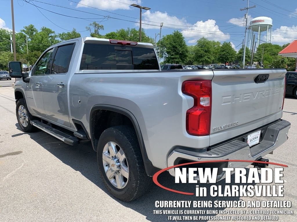The Pre-Owned 2021 Chevrolet Silverado 2500HD LTZ with Duramax 6.6L V8 Turbodiesel at Serra Clarksville. Well equipped: Gooseneck/5th Wheel Package (Black Chevytec Spray-On Bedliner w/Chevrolet Logo), Gooseneck/5th Wheel Prep Package, Hitch Package (LPO), LTZ Convenience Package (2 USB Ports (1st Row), 2 USB Ports & 1 SD Card Reader, Floor-Mounted Center Console, Front Bucket Seats w/Center Console, Heated 2nd Row Outboard Seats, LED Cargo Area Lighting, Power Sliding Rear Window w/Defogger, Pwr Up/Down Tailgate Function w/Pwr Lock & Release, Universal Home Remote, and Ventilated Driver & Front Passenger Seats), LTZ Convenience Package II (BOSE Premium 7-Speaker Sound System, HD Surround Vision w/2 Trailer View Cam Provisions, Hitch Guidance w/Hitch View, Radio: Chevrolet Infotainment 3 Premium System, SiriusXM w/360L, and Wireless Charging), LTZ Premium Package (Wheels: 20 6-Spoke Polished Aluminum), Preferred Equipment Group 1LZ (10-Way Power Driver Seat Adjuster w/Lumbar, 10-Way Power Passenger Seat Adjuster w/Lumbar, 12-Volt Rear Auxiliary Power Outlet, 120-Volt Bed Mounted Power Outlet, 120-Volt Instrument Panel Power Outlet, 170 Amp Alternator, 2-Speed Active Electronic AutoTrac Transfer Case, 4.2 Diagonal Color Display DIC, 4G LTE Wi-Fi Hotspot Capable, Advanced Trailering System, Auto-Dimming Inside Rear-View Mirror, Bluetooth® For Phone, Chevrolet Connected Access Capable, Chrome Front Grille, Chrome Mirror Caps, Color-Keyed Carpeting Floor Covering, Compass, Deep-Tinted Glass, Driver Memory, Dual Charge-Only USB Ports (2nd Row), Electric Rear-Window Defogger, Electrical Lock Control Steering Column, Electronic Cruise Control w/Set & Resume Speed, Front LED Fog Lamps, Front Rubberized Vinyl Floor Mats, HD Radio, HD Rear Vision Camera, Heated & Auto-Dim Pwr Vertical Trailering Mirrors, Heated Driver & Front Outboard Passenger Seating, Heated Steering Wheel, Integrated Trailer Brake Controller, Keyless Open & Start, Leather-Wrapped Steering Wheel, Manual Tailgate Function w/EZ Lift, Manual Tilt & Telescoping Steering Column, OnStar & Chevrolet Connected Services Capable, Power Door Locks, Power Front Windows w/Driver Express Up/Down, Power Front Windows w/Passenger Express Up/Down, Power Rear Windows w/Express Down, Rear Rubberized Vinyl Floor Mats, Rear Wheelhouse Liners, Remote Vehicle Starter System, Steering Wheel Audio Controls, Unauthorized Entry Theft-Deterrent System, and Wireless Phone Projection), Safety Package (Lane Change Alert w/Side Blind Zone Alert, Rear Cross Traffic Alert, and Ultrasonic Front & Rear Park Assist), Safety Package II (Automatic Emergency Braking, Following Distance Indicator, Forward Collision Alert, IntelliBeam Automatic High Beam On/Off, Lane Departure Warning System, and Safety Alert Seat), Snow Plow Prep/Camper Package, Suspension Package, Technology Package (15 Diagonal Multicolor Head-Up Display, 8 Diagonal Multicolor Digital Display DIC, and Rear Camera Mirror), Up-Level Rear Seat w/Storage Package, Z71 Off-Road & Protection Package (1st & 2nd Row All-Weather Floor Liners (LPO) (AAK)), Z71 Off-Road Package (Hill Descent Control and Off-Road Suspension), 10-Speed Automatic, 4WD, Jet Black Leather, 220 Amp Alternator, 4-Wheel Disc Brakes, 6 Speakers, 6-Speaker Audio System, 720 Cold-Cranking Amps Heavy-Duty Battery, ABS brakes, Air Conditioning, Alloy wheels, AM/FM radio: SiriusXM with 360L, Apple CarPlay/Android Auto, Auto-dimming door mirrors, Auto-dimming Rear-View mirror, Automatic temperature control, Bed View Camera w/2 Trailer Camera Provisions (DISC), Black Molded Splash Guards (LPO), Brake assist, Bumpers: chrome, Delay-off headlights, Driver door bin, Driver vanity mirror, Dual front impact airbags, Dual front side impact airbags, Electronic Stability Control, Engine Block Heater, Exhaust Brake, Front 40/20/40 Split-Bench Seat w/Lockable Storag