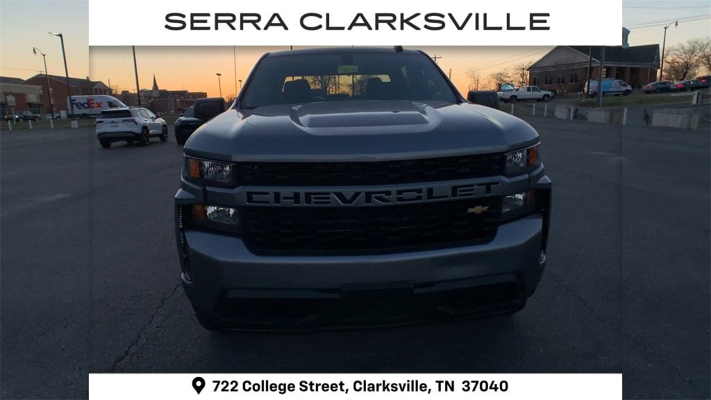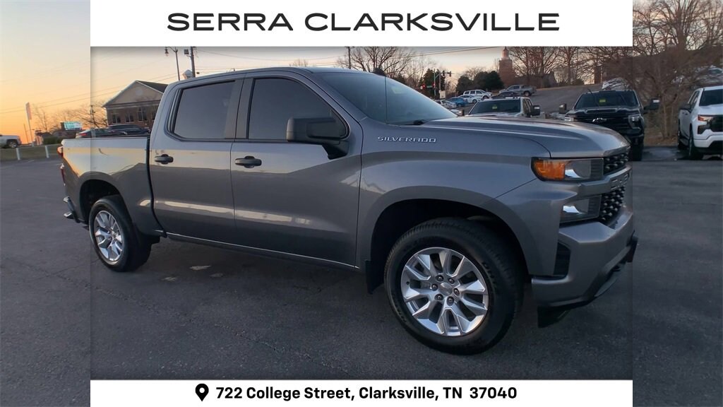 The Pre-Owned 2022 Chevrolet Silverado 1500 LTD Custom with 2.7L Turbo at Serra Clarksville. Well equipped: Custom Convenience Package (Electric Rear-Window Defogger, EZ Lift Power Lock & Release Tailgate, LED Cargo Area Lighting, Remote Vehicle Starter System, and Theft Deterrent System (Unauthorized Entry)), Custom Value Package, Infotainment Package (Chevrolet Connected Access Capable, OnStar & Chevrolet Connected Services Capable, SiriusXM Radio, and Wi-Fi Hot Spot Capable), Preferred Equipment Group 1CX (3.5 Monochromatic Display Driver Info Center, Bluetooth® For Phone, Body Color Grille, Color-Keyed Carpeting Floor Covering, Compass, Deep-Tinted Glass, Electronic Cruise Control, Front Frame-Mounted Black Recovery Hooks, Front Rubberized Vinyl Floor Mats, Manual Tilt Wheel Steering Column, Power Door Locks, Power Front Windows w/Driver Express Up/Down, Power Front Windows w/Passenger Express Down, Power Rear Windows w/Express Down, Rear 60/40 Folding Bench Seat (Folds Up), Rear Rubberized-Vinyl Floor Mats, Remote Keyless Entry, and Standard Tailgate), Trailering Package (Hitch Guidance), 10-Way Power Driver Seat w/Lumbar, 120-Volt Bed Mounted Power Outlet, 120-Volt Instrument Panel Power Outlet, 3.42 Rear Axle Ratio, 4-Wheel Disc Brakes, 40/20/40 Front Split Bench Seat, 6 Speakers, 6-Speaker Audio System, ABS brakes, Air Conditioning, Alloy wheels, AM/FM radio: SiriusXM, Apple CarPlay/Android Auto, Auto-Locking Rear Differential, Brake assist, Bumpers: body-color, Cloth Seat Trim, Delay-off headlights, Driver door bin, Driver vanity mirror, Dual front impact airbags, Dual front side impact airbags, Electronic Stability Control, Front anti-roll bar, Front Center Armrest w/Storage, Front reading lights, Front wheel independent suspension, Fully automatic headlights, Heated door mirrors, Heavy Duty Suspension, Illuminated entry, Low tire pressure warning, Occupant sensing airbag, Outside temperature display, Overhead airbag, Overhead console, Panic alarm, Passenger door bin, Passenger vanity mirror, Power door mirrors, Power steering, Power windows, Premium audio system: Chevrolet Infotainment 3, Radio data system, Radio: Chevrolet Infotainment 3 System, Rear reading lights, Rear step bumper, Rear window defroster, Remote keyless entry, Security system, Speed control, Speed-sensing steering, Split folding rear seat, Tachometer, Tilt steering wheel, Traction control, Trip computer, Variably intermittent wipers, Voltmeter, and Wheels: 20 x 9 Bright Silver Painted Aluminum.