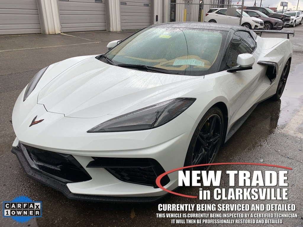 The Pre-Owned 2023 Chevrolet Corvette Stingray with 6.2L V8 at Serra Clarksville. Well equipped: Custom Leather Wrapped Interior Package, Memory Driver & Passenger Convenience Package, Preferred Equipment Group 3LT (2 Cargo Nets, Driver Power Bolster Seat Adjuster, Electrical Theft Deterrent System, HD Front & Rear Vision Cameras, Head-Up Display, Heated & Vented Driver & Passenger Seats, Heated Steering Wheel, Passenger Power Bolster Seat Adjuster, Performance Data & Video Recorder, Power Driver Lumbar Control Seat Adjuster, Power Passenger Lumbar Control Seat Adjuster, Power-Adjustable Outside Heated Mirrors, Rear Cross Traffic Alert, Side Blind Zone Alert, Sueded Microfiber-Wrapped Upper Interior Trim Pkg, Universal Home Remote, Vehicle Inclination Theft Deterrent Sensor, Vehicle Interior Movement Theft Deterrent Sensor, and Wireless Charging for Devices), 14 Speakers, 4-Wheel Disc Brakes, 8-Way Power Driver Seat Adjuster, 8-Way Power Passenger Seat Adjuster, ABS brakes, Air Conditioning, Alloy wheels, AM/FM radio: SiriusXM, Apple CarPlay/Android Auto, Auto-dimming door mirrors, Auto-dimming Rear-View mirror, Automatic Leveling System Headlamp Control, Automatic temperature control, Bose Performance Series Sound System w/14 Speakers, Brake assist, Bumpers: body-color, Compass, Convertible HardTop, Convertible roof lining, Convertible Top w/Carbon Flash Nacelles & Roof, Delay-off headlights, Driver door bin, Driver vanity mirror, Dual front impact airbags, Dual front side impact airbags, Edge Yellow-Painted Calipers, Electronic Stability Control, Emergency communication system: OnStar and Chevrolet connected services capable, Four wheel independent suspension, Front anti-roll bar, Front Bucket Seats, Front Center Armrest, Front dual zone A/C, Front Lift Adjustable Height w/Memory, Front reading lights, Fully automatic headlights, Garage door transmitter, Glass rear window, GT2 Bucket Seats, HD Radio, Heads-Up Display, Heated door mirrors, Heated front seats, Heated steering wheel, Illuminated entry, Integrated roll-over protection, Leather Shift Knob, Leather steering wheel, Low tire pressure warning, Memory seat, Napa Lthr Seating Surfaces w/Perforated Inserts, Navigation System, Occupant sensing airbag, Outside temperature display, Overhead console, Panic alarm, Passenger door bin, Passenger vanity mirror, Performance Exhaust w/Stainless-Steel Tips, Power convertible roof, Power door mirrors, Power driver seat, Power passenger seat, Power steering, Power windows, Premium audio system: Chevrolet Infotainment 3 Premium, Radio data system, Radio: Chevrolet Infotainment 3 Premium System, Rear anti-roll bar, Rear window defroster, Remote keyless entry, Security system, SiriusXM Radio, Speed control, Speed-sensing steering, Sport steering wheel, Steering wheel memory, Steering wheel mounted audio controls, Tachometer, Telescoping steering wheel, Tilt steering wheel, Traction control, Trip computer, Turn signal indicator mirrors, Variably intermittent wipers, Ventilated front seats, Voltmeter, Wheels: 19 x 8.5 Fr/20 x 11 Rr Bright Silver, Wheels: 19 x 8.5 Fr/20 x 11 Rr Carbon Flash, and Yellow Seat Belt Color.