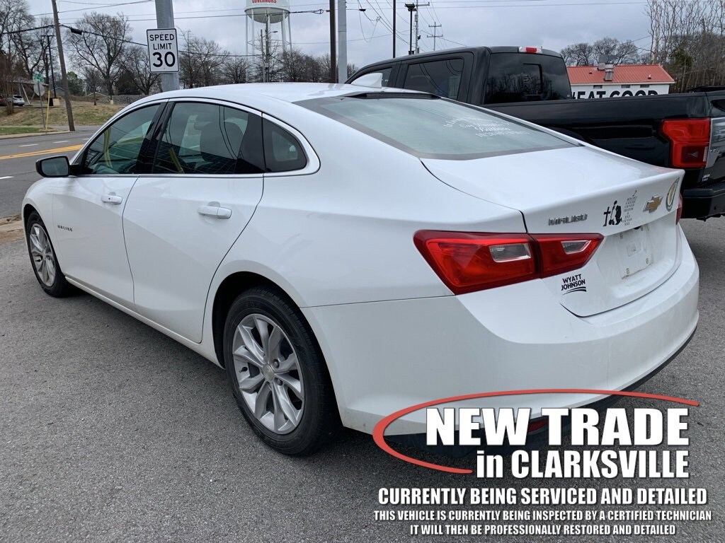 Summit White 2023 Chevrolet Malibu LT 1LTThe Pre-Owned 2023 Chevrolet Malibu LT with 1.5L DOHC at Serra Clarksville. Well equipped: Preferred Equipment Group 1LT, Jet Black Cloth, 17 Aluminum Wheels, 4-Wheel Disc Brakes, 6 Speakers, 6-Speaker Audio System Feature, 6-Way Manual Front Passenger Seat Adjuster, 8-Way Power Driver Seat Adjuster, ABS brakes, Air Conditioning, Alloy wheels, AM/FM radio: SiriusXM, Apple CarPlay/Android Auto, Auto High-beam Headlights, Automatic temperature control, Brake assist, Bumpers: body-color, Compass, Delay-off headlights, Deleted 3 Years of Remote Access, Driver door bin, Driver vanity mirror, Dual front impact airbags, Dual front side impact airbags, Electronic Stability Control, Emergency communication system: OnStar and Chevrolet connected services capable, Exterior Parking Camera Rear, Four wheel independent suspension, Front anti-roll bar, Front Bucket Seats, Front Center Armrest, Front dual zone A/C, Front License Plate Bracket, Front reading lights, Fully automatic headlights, Heated door mirrors, Heated Driver & Front Passenger Seats, Heated front seats, Illuminated entry, Knee airbag, Low tire pressure warning, Occupant sensing airbag, Outside temperature display, Overhead airbag, Overhead console, Panic alarm, Passenger door bin, Passenger vanity mirror, Power door mirrors, Power Driver Lumbar Control Seat Adjuster, Power driver seat, Power steering, Power windows, Premium audio system: Chevrolet Infotainment 3 Plus, Premium Cloth Seat Trim, Radio data system, Radio: Chevrolet Infotainment 3 System, Rear anti-roll bar, Rear reading lights, Rear seat center armrest, Rear side impact airbag, Rear window defroster, Remote keyless entry, Security system, SiriusXM Radio, Speed control, Split folding rear seat, Steering wheel mounted audio controls, Tachometer, Telescoping steering wheel, Tilt steering wheel, Traction control, Trip computer, Variably intermittent wipers, Voltmeter, and Wireless Apple CarPlay/Android Auto.FWD 1.5L DOHC CVTRecent Arrival! Odometer is 20715 miles below market average! 27/35 City/Highway MPG