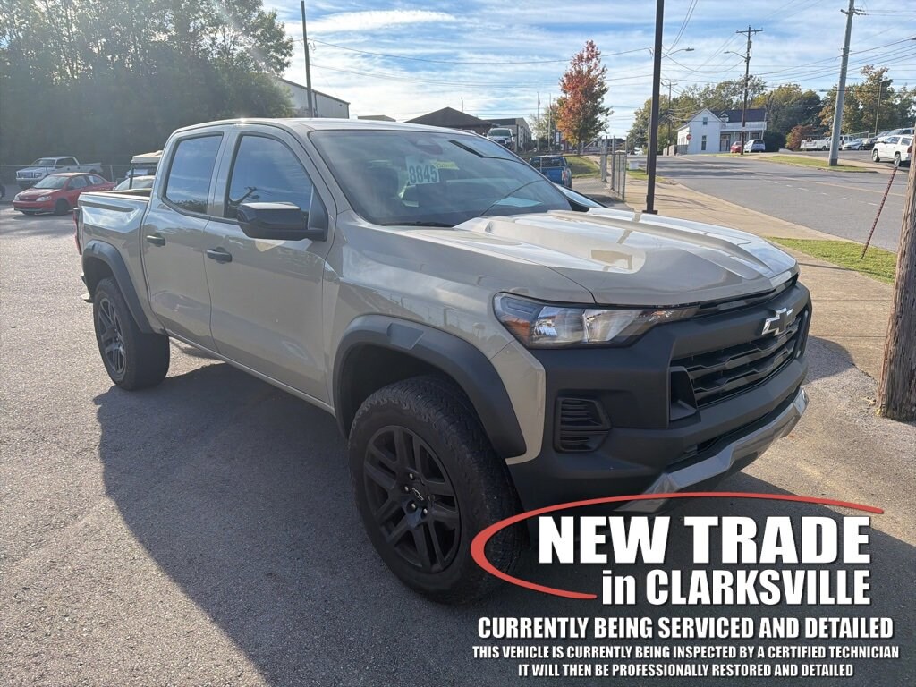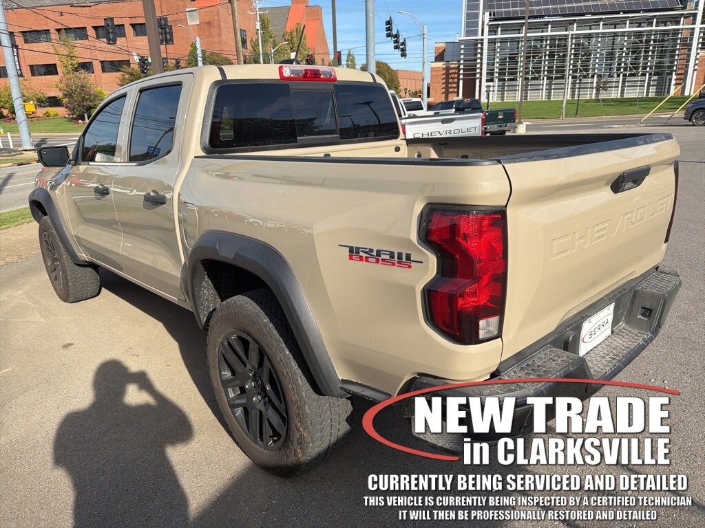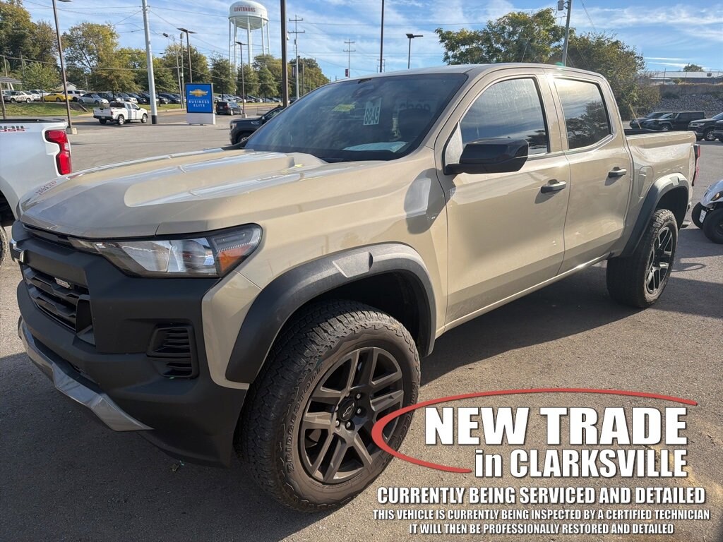 One-owner local new car trade-in! Clean CARFAX. The Pre-Owned 2024 Chevrolet Colorado Trail Boss with 2.7L I4 Turbocharged DOHC 16V LEV3-ULEV50 310hp at Serra Clarksville. Well equipped: Preferred Equipment Group 0TR (Automatic Emergency Braking, Chevy Safety Assist, Following Distance Indicator, Forward Collision Alert, Front Pedestrian & Bicyclist Braking, IntelliBeam Automatic High Beam On/Off, and Lane Keep Assist w/Lane Departure Warning), Safety Package (Black Painted Mirror Caps, Heated Power-Adjustable Outside Mirrors, Rear Cross Traffic Braking, and Rear Park Assist), Trail Boss Convenience Package (Electronic Automatic Cruise Control, Manual Rear-Sliding Window, and Rear-Window Electric Defogger), 4WD, 3.42 Rear Axle Ratio, 4-Way Manual Passenger Seat Adjuster, 4-Wheel Disc Brakes, 6 Speakers, 6-Speaker Audio System Feature, 6-Way Manual Driver Seat Adjuster, ABS brakes, Air Conditioning, Alloy wheels, AM/FM radio: SiriusXM, Apple CarPlay/Android Auto, Auto High-beam Headlights, Blind Zone Steering Assist, Brake assist, Cloth Seat Trim, Compass, Delay-off headlights, Driver door bin, Driver vanity mirror, Dual front impact airbags, Dual front side impact airbags, Electronic Stability Control, Front anti-roll bar, Front Bucket Seats, Front Center Armrest, Front wheel independent suspension, Illuminated entry, Low tire pressure warning, Navigation System, Occupant sensing airbag, Off-Road Assist Steps (LPO), Outside temperature display, Overhead airbag, Overhead console, Panic alarm, Passenger door bin, Passenger vanity mirror, Power door mirrors, Power steering, Power windows, Radio data system, Radio: 11.3 Diagonal Advanced Color LCD Display, Rear reading lights, Rear step bumper, Remote keyless entry, Security system, SiriusXM Radio, Speed-sensing steering, Split folding rear seat, Steering Wheel Mounted Audio Controls, Steering wheel mounted audio controls, Tachometer, Tilt steering wheel, Traction control, Trip computer, Variably intermittent wipers, Wheels: 18 x 8.5 Black High Gloss Aluminum, Wheels: 20 x 9 High Gloss Black Aluminum, and Wireless Phone Projection.