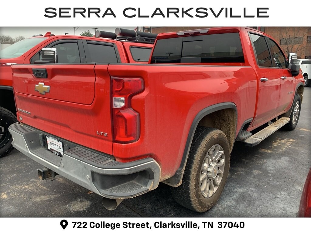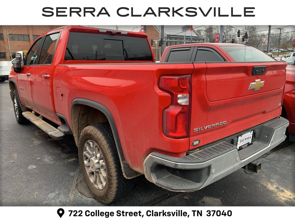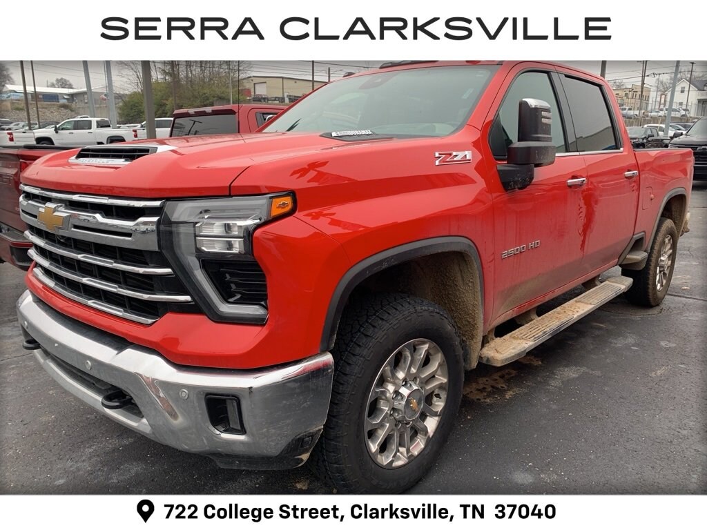 The Pre-Owned 2024 Chevrolet Silverado 2500HD LTZ with Duramax 6.6L V8 Turbodiesel at Serra Clarksville. Well equipped: Gooseneck/5th Wheel Package (DISC) (Black Chevytec Spray-On Bedliner), Gooseneck/5th Wheel Prep Package, LTZ Convenience Package (2 Charge/Data USB Ports Inside Center Console, BOSE Premium 7-Speaker Sound System, Floor-Mounted Center Console, Front Bucket Seats, LED Cargo Area Lighting, Ventilated Driver & Front Passenger Seats, and Wireless Charging), LTZ Convenience Package II (Adaptive Cruise Control, Heated 2nd Row Outboard Seats, Power Sliding Rear Window w/Defogger, and Universal Home Remote), Preferred Equipment Group 1LZ (120-Volt Bed Mounted Power Outlet, 120-Volt Interior Power Outlet, 170 Amp Alternator, 6-Speaker Audio System, Auto-Dimming Inside Rear-View Mirror, Bluetooth® For Phone, Chevrolet Connected Access Capable, Chrome Door Handles, Chrome Mirror Caps, Color-Keyed Carpeting Floor Covering, Compass, Deep-Tinted Glass, Electric Rear-Window Defogger, Electronic Cruise Control w/Set & Resume Speed, EZ Lift Power Lock & Release Tailgate, Front LED Fog Lamps, Front Rain-Sensing Wipers, Front Rubberized Vinyl Floor Mats, HD Rear Vision Camera, Heated Steering Wheel, Hitch Guidance w/Hitch View, In-Vehicle Trailering App System, Keyless Open & Start, Manual Tilt & Telescoping Steering Column, OnStar & Chevrolet Connected Services Capable, Power Door Locks, Power Front Windows w/Driver Express Up/Down, Power Front Windows w/Passenger Express Up/Down, Power Rear Windows w/Express Down, Push Button Start, Rear Rubberized Vinyl Floor Mats, Rear Wheelhouse Liners, Remote Vehicle Starter System, SiriusXM w/360L, Standard Tailgate, Steering Wheel Audio Controls, Unauthorized Entry Theft-Deterrent System, Wi-Fi Hotspot Capable, Wireless Phone Projection, and Wrapped Steering Wheel), Safety Package (Bed View Camera w/2 Trailer Camera Provisions, HD Surround Vision, Rear Cross Traffic Alert, Safety Alert Seat, Trailer Camera Provisions, Trailer Side Blind Zone Alert, and Ultrasonic Front & Rear Park Assist), Suspension Package, Technology Package (15 Diagonal Multicolor Head-Up Display and Rear Camera Mirror), Up-Level Rear Seat w/Storage Package, Z71 Off-Road Package (Hill Descent Control and Off-Road Suspension), 10-Speed Automatic, 4WD, Gideon/Very Dark Atmosphere Leather, 10-Way Power Driver Seat Adjuster w/Lumbar, 10-Way Power Passenger Seat Adjuster w/Lumbar, 4-Wheel Disc Brakes, 6 Speakers, 6 Rectangular Chromed Tubular Assist Steps (LPO), 720 Cold-Cranking Amps Heavy-Duty Battery, ABS brakes, Air Conditioning, Alloy wheels, AM/FM radio: SiriusXM with 360L, Apple CarPlay/Android Auto, Auto High-beam Headlights, Auto-dimming door mirrors, Auto-dimming Rear-View mirror, Automatic temperature control, Brake assist, Bumpers: chrome, Delay-off headlights, Driver door bin, Driver Memory, Driver vanity mirror, Dual 220-Amp Primary/170-Amp Auxiliary Alternators, Dual front impact airbags, Dual front side impact airbags, Durabed Pickup Bed, Electronic Stability Control, Engine Block Heater, Exhaust Brake, Front 40/20/40 Split-Bench Seats w/Lockable Storage, Front anti-roll bar, Front Center Armrest w/Storage, Front dual zone A/C, Front fog lights, Front reading lights, Front wheel independent suspension, Fully automatic headlights, Heated door mirrors, Heated Driver & Front Outboard Passenger Seating, Heated front seats, Heated steering wheel, High Idle Switch, Illuminated entry, LED Smoked Amber Roof Marker Lamps, LED Taillamps w/Fixed Signature, Low tire pressure warning, Memory seat, Multi-Flex Tailgate, Occupant sensing airbag, Outside temperature display, Overhead airbag, Overhead console, Panic alarm, Passenger door bin, Passenger vanity mirror, Perf Leather-Appointed Front Outboard Seat Trim, Power door mirrors, Power driver seat, Power passenger seat, Power steering, P