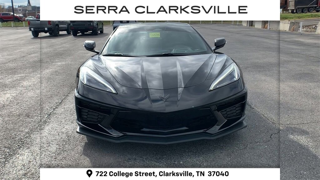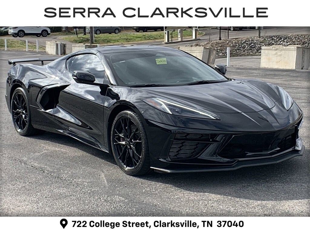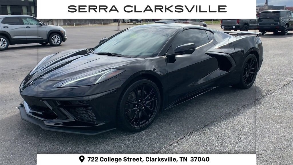 CARFAX One-Owner. Clean CARFAX. Black 2025 Chevrolet Corvette Stingray 1LTThe Pre-Owned 2025 Chevrolet Corvette Stingray with 6.2L V8 at Serra Clarksville. Well equipped: Battery Protection Package, Preferred Equipment Group 1LT, Z51 Performance Package (Electronic Limited-Slip Differential, Heavy-Duty Cooling System, Performance Exhaust w/Stainless-Steel Tips, Performance Rear Axle Ratio, Rear Z51 Spoiler, Z51 Performance Brakes, and Z51 Performance Suspension), 10 Speakers, 4-Wheel Disc Brakes, 8-Way Power Driver Seat Adjuster, 8-Way Power Passenger Seat Adjuster, ABS brakes, Air Conditioning, Alloy wheels, AM/FM radio: SiriusXM, Auto High-beam Headlights, Auto-dimming Rear-View mirror, Automatic temperature control, Body-Color Removable Roof Panel, Brake assist, Bumpers: body-color, Compass, Dark Stealth Front Crossed Flags Emblem (LPO), Delay-off headlights, Driver door bin, Driver vanity mirror, Dual front impact airbags, Dual front side impact airbags, Electronic Stability Control, Emergency communication system: OnStar and Chevrolet connected services capable, Four wheel independent suspension, Front anti-roll bar, Front Bucket Seats, Front Center Armrest, Front dual zone A/C, Front reading lights, Fully automatic headlights, GT1 Bucket Seats, Heated door mirrors, Illuminated entry, Leather Shift Knob, Leather steering wheel, Low tire pressure warning, Mulan Lthr Seating Surfaces w/Perforated Inserts, Navigation System, Occupant sensing airbag, Outside temperature display, Overhead console, Panic alarm, Passenger door bin, Passenger vanity mirror, Power door mirrors, Power driver seat, Power passenger seat, Power steering, Power windows, Premium audio system: Chevrolet Infotainment 3 Plus, Radio data system, Radio: Chevrolet Infotainment 3 Premium System, Rear anti-roll bar, Rear window defroster, Remote keyless entry, Speed control, Speed-sensing steering, Sport steering wheel, Steering wheel mounted audio controls, Tachometer, Telescoping steering wheel, Tilt steering wheel, Traction control, Trip computer, Turn signal indicator mirrors, Variably intermittent wipers, Voltmeter, Wheels: 19 x 8.5 Fr/20 x 11 Rr Bright Silver, and Wheels: 19 x 8.5 Fr/20 x 11 Rr Gloss Black.RWD 6.2L V8 8-Speed Dual ClutchRecent Arrival! Odometer is 2481 miles below market average!Awards:* Car and Driver 10 BestCar and Driver, January 2017.