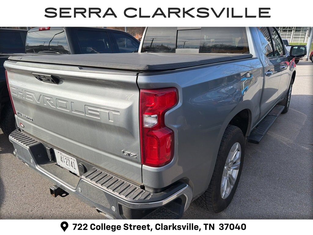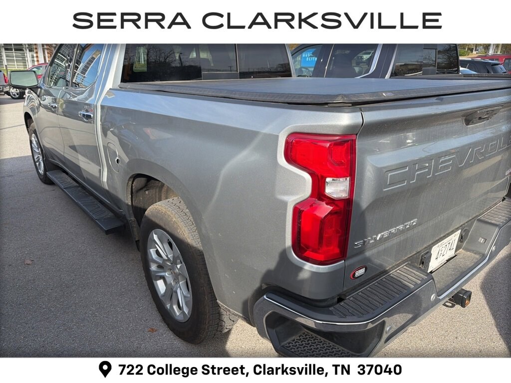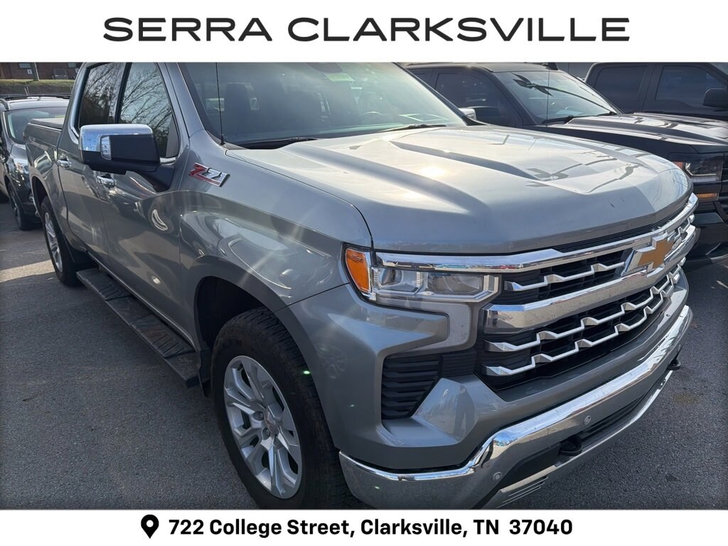 The Pre-Owned 2025 Chevrolet Silverado 1500 LTZ with EcoTec3 5.3L V8 at Serra Clarksville. Well equipped: High Capacity Suspension Package, LTZ Convenience Package (2 USB Data Ports, Floor Mounted Center Console, Power Tilt & Telescoping Steering Column, Premium Bose 7-Speaker Sound System, Ventilated Driver & Front Passenger Seats, and Wireless Charging), LTZ Convenience Package II (2nd Row Heated Outboard Seats, Adaptive Cruise Control, Power Sliding Rear Window w/Rear Defogger, and Universal Home Remote), LTZ Plus Package, Preferred Equipment Group 1LZ (10-Way Power Driver Seat w/Lumbar, 10-Way Power Passenger Seat Adjuster w/Lumbar, 12.3 Multicolor Reconfigurable Digital Display, 120-Volt Bed Mounted Power Outlet, 120-Volt Interior Power Outlet, Auto-Dimming Inside Rear-View Mirror, Auto-Locking Rear Differential, Bluetooth® For Phone, Chrome Mirror Caps, Color-Keyed Carpeting Floor Covering, Deep-Tinted Glass, Driver Memory, Dual Rear USB Ports (Charge Only), Electric Rear-Window Defogger, Electronic Cruise Control, Front Frame-Mounted Black Recovery Hooks, Front LED Fog Lamps, Front Rain-Sensing Wipers, Front Rubberized Vinyl Floor Mats, Heated Driver & Front Outboard Passenger Seats, Heated Steering Wheel, Hitch Guidance w/Hitch View, In-Vehicle Trailering System App, Integrated Trailer Brake Controller, Keyless Open & Start, LED Cargo Area Lighting, OnStar Services Capable, Outside Heated Power-Adjustable Mirrors, Power Front Passenger Windows w/Express Up/Down, Power Front Windows w/Driver Express Up/Down, Power Rear Windows w/Express Down, Power Tailgate, Rear Rubberized-Vinyl Floor Mats, Rear Wheelhouse Liners, Remote Vehicle Starter System, SiriusXM w/360L Trial Subscription, Standard Tailgate, Steering Wheel Audio Controls, Teen Driver, Theft Deterrent System (Unauthorized Entry), Tire Pressure Monitoring System, Wi-Fi Hot Spot Capable, and Wrapped Steering Wheel), Safety Package (HD Surround Vision, Perimeter Lighting, Rear Cross Traffic Braking, Rear Pedestrian Alert, Safety Alert Seat, Trailer Camera Provisions, Trailer Side Blind Zone Alert, and Ultrasonic Front & Rear Park Assist), Technology Package (15 Diagonal Multicolor Head-Up Display, Bed View Camera, and Rear Camera Mirror), Trailering Package (Hitch Guidance), Up-Level Rear Seat w/Storage Package, Z71 Off-Road Package (Heavy-Duty Air Filter, Hill Descent Control, and Off-Road Suspension), 10-Speed Automatic, 4WD, Jet Black Leather, 170 Amp Alternator, 3.23 Rear Axle Ratio, 4-Wheel Disc Brakes, 7 Speakers, ABS brakes, Air Conditioning, All-Weather Floor Liner (LPO) (AAK), Alloy wheels, AM/FM radio: SiriusXM with 360L, Apple CarPlay/Android Auto, Auto High-beam Headlights, Auto-dimming door mirrors, Auto-dimming Rear-View mirror, Automatic Emergency Braking, Automatic temperature control, Brake assist, Bumpers: chrome, Chevytec Spray-On Black Bedliner, Compass, Delay-off headlights, Driver door bin, Driver vanity mirror, Dual Exhaust w/Polished Outlets, Dual front impact airbags, Dual front side impact airbags, Electronic Stability Control, Electronic Transmission Range Selector Shifter, Emergency communication system: OnStar, Following Distance Indicator, Forward Collision Alert, Front anti-roll bar, Front Bucket Seats, Front Center Armrest, Front dual zone A/C, Front fog lights, Front Pedestrian Braking, Front reading lights, Front wheel independent suspension, Fully automatic headlights, Heated door mirrors, Heated front seats, Heated steering wheel, Illuminated entry, IntelliBeam Automatic High Beam On/Off, Lane Keep Assist w/Lane Departure Warning, Low tire pressure warning, Memory seat, Occupant sensing airbag, Outside temperature display, Overhead airbag, Overhead console, Panic alarm, Passenger door bin, Passenger vanity mirror, Perforated Leather-Appointed Front Seat Trim, Power door mirrors, Power dr
