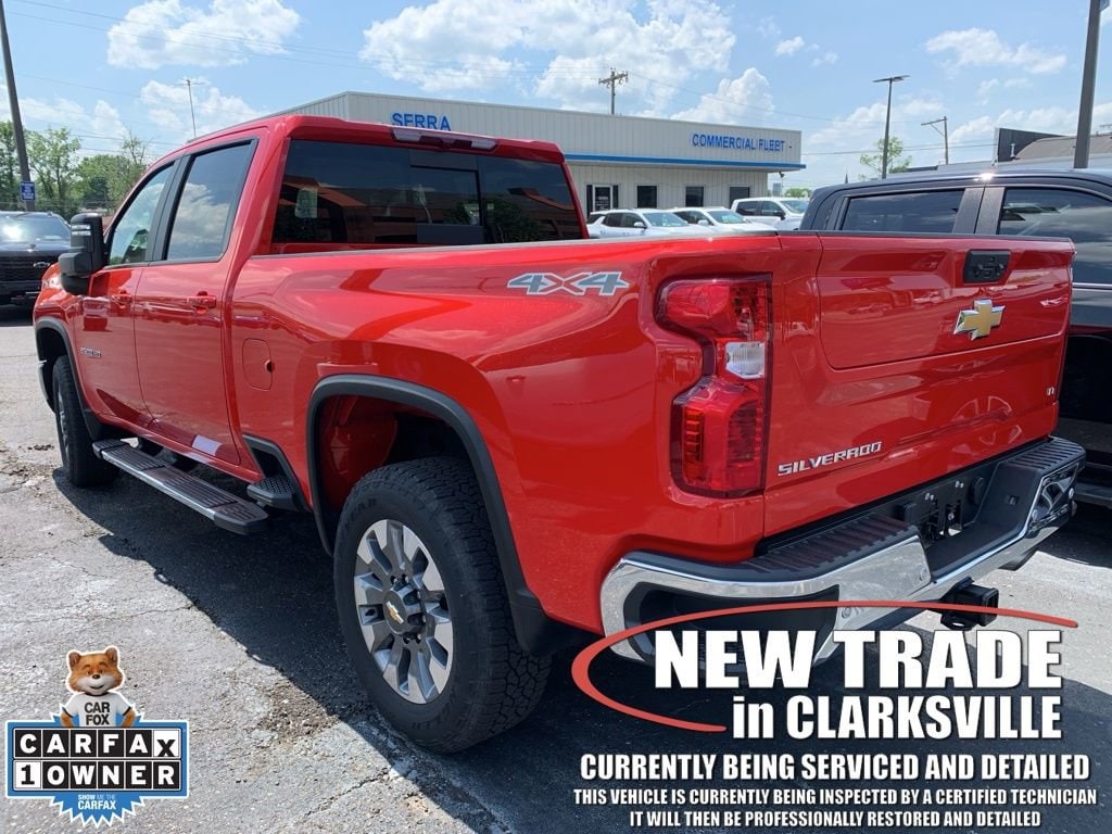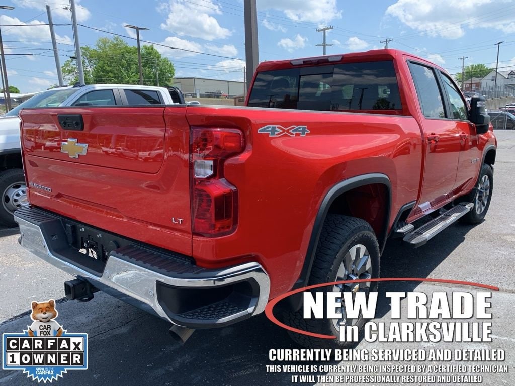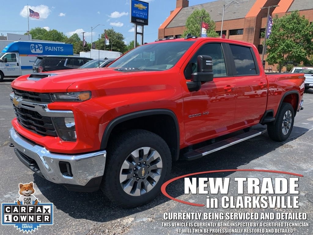 The Pre-Owned 2025 Chevrolet Silverado 2500HD LT with 6.6L V8 at Serra Clarksville. Well equipped: All Star Edition, Cloth Rear Seat with Storage Package, Convenience Package (10-Way Power Driver Seat Adjuster with Lumbar, Dual-Zone Automatic Climate Control, Front LED Fog Lamps, LED Cargo Area Lighting, and Manual Tilt and Telescoping Steering Column), Convenience Package II (Hitch Guidance with Hitch View, in-Vehicle Trailering App System, Power Sliding Rear Window with Defogger, and Universal Home Remote), Gooseneck/5th Wheel Prep Package (Black Chevytec Spray-on Bedliner), Heat Package (Heated Driver and Front Outboard Passenger Seating and Heated Steering Wheel), Leather Package, Preferred Equipment Group 1LT (120-Volt Bed Mounted Power Outlet, 120-Volt Interior Power Outlet, 17 Machined Aluminum Wheels, 170 Amp Alternator, 2-Speed Electronic Shift Transfer Case, 3.73 Rear Axle Ratio, 4-Way Manual Driver Seat Adjuster, Black Mirror Caps, Bluetooth® For Phone, Chevrolet Connected Access Capable, Color-Keyed Carpeting Floor Covering, Compass, Deep-Tinted Glass, Durabed Pickup Bed, Electronic Cruise Control with Set and Resume Speed, EZ Lift Power Lock and Release Tailgate, Front Rubberized Vinyl Floor Mats, Halogen Reflector Headlamps, HD Rear Vision Camera, Heated Vertical Trailering Mirrors, Keyless Open and Start, OnStar Services Capable, Power Door Locks, Power Front Windows with Driver Express Up/Down, Power Front Windows with Passenger Express Down, Power Rear Windows with Express Down, Push Button Start, Rear 60/40 Folding Bench Seat (folds Up), Rear Rubberized Vinyl Floor Mats, SiriusXM with 360L Trial Subscription, Standard Tailgate, Steering Wheel Audio Controls, Wi-Fi Hotspot Capable, Wireless Phone Projection, and Wrapped Steering Wheel), Remote Start Package (Electric Rear-Window Defogger, Remote Vehicle Starter System, and Unauthorized Entry Theft-Deterrent System), Safety Package (Bed View Camera with Two Trailer Camera Provisions, HD Surround Vision, Rear Cross Traffic Alert, Trailer Camera Provisions, Trailer Side Blind Zone Alert, and Ultrasonic Front and Rear Park Assist), Suspension Package, Up-Level Rear Seat with Storage Package, 10-Speed Automatic, 4WD, Gideon/Very Dark Atmosphere Leather, 2 Charge/Data USB Ports Inside Center Console, 4-Wheel Disc Brakes, 6 Speakers, 6-Speaker Audio System, 6 Rectangular Chromed Tubular Assist Steps, 720 Cold-Cranking Amps Heavy-Duty Battery, ABS brakes, Adaptive Cruise Control, Air Conditioning, Alloy wheels, AM/FM radio: SiriusXM with 360L, Apple CarPlay/Android Auto, Auto High-beam Headlights, Auto-Dimming Inside Rear-View Mirror, Brake assist, Bumpers: chrome, Cloth Seat Trim, Delay-off headlights, Driver door bin, Driver vanity mirror, Dual front impact airbags, Dual front side impact airbags, Electronic Stability Control, Emergency communication system: OnStar, Floor-Mounted Center Console, Front 40/20/40 Split-Bench Seats with Lockable Storage, Front anti-roll bar, Front Bucket Seats, Front Center Armrest w/Storage, Front reading lights, Front wheel independent suspension, Fully automatic headlights, Heated and Auto-Dimming Vertical Trailering Mirrors, Heated door mirrors, Illuminated entry, LED Smoked Amber Roof Marker Lamps, Low tire pressure warning, Multi-Flex Tailgate, Occupant sensing airbag, Outside temperature display, Overhead airbag, Overhead console, Panic alarm, Passenger door bin, Passenger vanity mirror, Power door mirrors, Power steering, Power windows, Premium audio system: Chevrolet Infotainment 3 Premium, Radio: Chevrolet Infotainment 3 Premium System, Rear reading lights, Rear step bumper, Remote keyless entry, Speed control, Split folding rear seat, Steering wheel mounted audio controls, Tachometer, Tilt steering wheel, Traction control, Trip computer, Turn signal indicator mirrors, Variably intermittent wipers, Vo