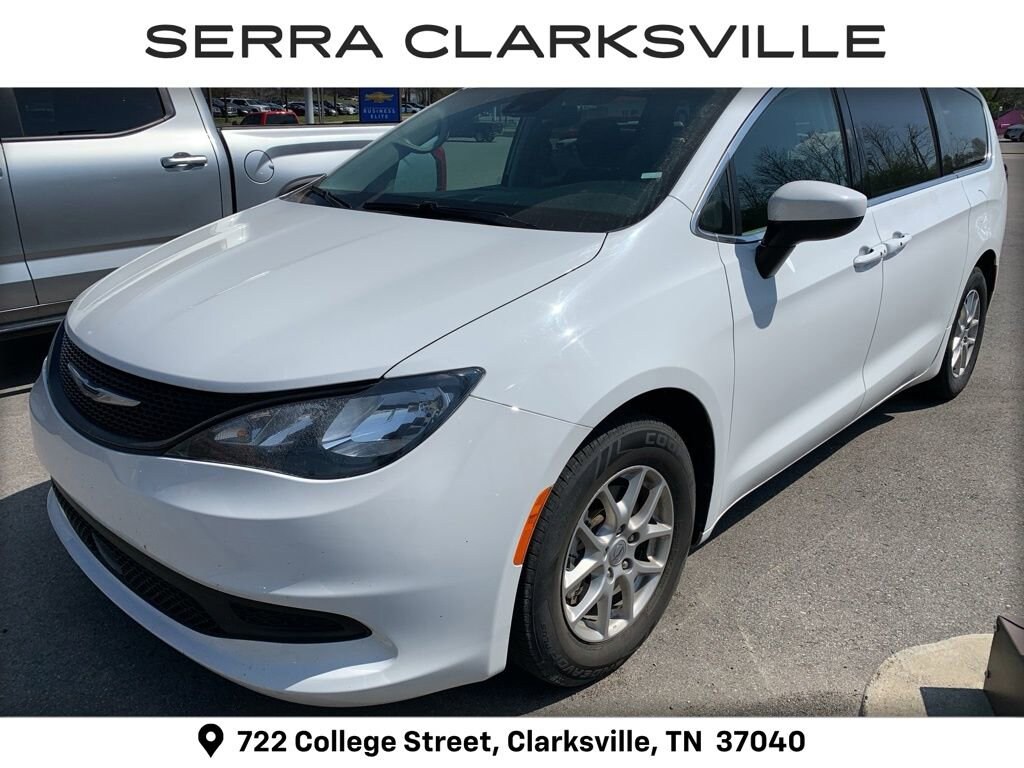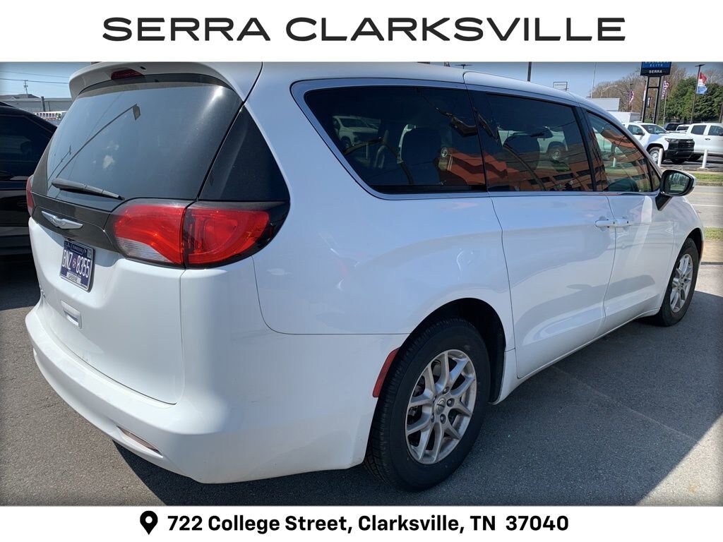 The Pre-Owned 2023 Chrysler Voyager LX with 3.6L V6 24V VVT at Serra Clarksville. Well equipped: 17 x 7 Aluminum Wheels, 3.25 Axle Ratio, 3rd row seats: split-bench, 4-Wheel Disc Brakes, 6 Speakers, ABS brakes, Air Conditioning, Alloy wheels, AM/FM radio: SiriusXM, Apple CarPlay, Apple CarPlay/Android Auto, Automatic temperature control, Brake assist, Bumpers: body-color, Cloth Bucket Seats, Compass, Delay-off headlights, Driver door bin, Driver vanity mirror, Driver's Seat Mounted Armrest, Dual front impact airbags, Dual front side impact airbags, Electronic Stability Control, Exterior Mirrors w/Heating Element, Four wheel independent suspension, Front anti-roll bar, Front Bucket Seats, Front dual zone A/C, Front reading lights, Fully automatic headlights, Google Android Auto, GPS Antenna Input, Heated door mirrors, Heated front seats, Heated steering wheel, Illuminated entry, Knee airbag, Low tire pressure warning, Occupant sensing airbag, Outside temperature display, Overhead airbag, Overhead console, Panic alarm, ParkView Rear Back-Up Camera, Passenger door bin, Passenger seat mounted armrest, Passenger vanity mirror, Power door mirrors, Power driver seat, Power Liftgate, Power steering, Power windows, Radio data system, Radio: Uconnect 5 w/7 Display, Rear air conditioning, Rear window defroster, Rear window wiper, Reclining 3rd row seat, Remote keyless entry, Security system, Speed control, Split folding rear seat, Spoiler, Steering wheel mounted audio controls, Tachometer, Telescoping steering wheel, Tilt steering wheel, Touring Suspension, Traction control, Trip computer, USB Host Flip, Variably intermittent wipers, and Voltmeter.