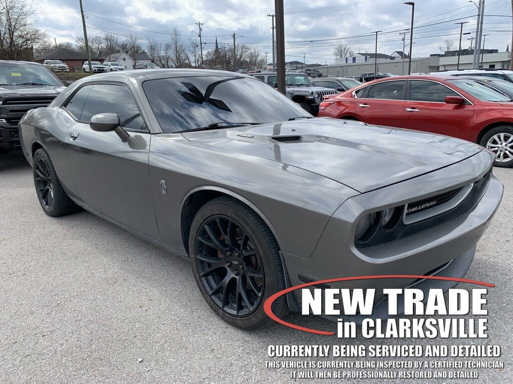 The Pre-Owned 2013 Dodge Challenger R/T with HEMI 5.7L V8 Multi Displacement VVT at Serra Clarksville. Well equipped: Quick Order Package 28F, 18 x 7.5 Aluminum Wheels, 4-Wheel Disc Brakes, 6 Speakers, ABS brakes, Air Conditioning, Alloy wheels, AM/FM radio: SIRIUS, Anti-Lock 4-Wheel Disc HD Brakes, Anti-whiplash front head restraints, Audio Jack Input for Mobile Devices, Auto-dimming Rear-View mirror, Automatic temperature control, Brake assist, Bumpers: body-color, CD player, Cloth Low-Back Bucket Seats, Conventional Differential Rear Axle, Delay-off headlights, Driver door bin, Driver vanity mirror, Dual front impact airbags, Dual front side impact airbags, Electronic Stability Control, Four wheel independent suspension, Front anti-roll bar, Front Bucket Seats, Front Center Armrest, Front fog lights, Front reading lights, Fully automatic headlights, Illuminated entry, Leather Shift Knob, Low tire pressure warning, Overhead airbag, Overhead console, Panic alarm, Passenger door bin, Passenger vanity mirror, Power door mirrors, Power driver seat, Power steering, Power windows, Radio data system, Radio: Uconnect 130 AM/FM/CD/MP3, Rear anti-roll bar, Rear seat center armrest, Rear window defroster, Remote keyless entry, SIRIUS Satellite Radio, Speed control, Speed-sensing steering, Split folding rear seat, Spoiler, Steering wheel mounted audio controls, Tachometer, Telescoping steering wheel, Tilt steering wheel, Traction control, Trip computer, and Variably intermittent wipers.