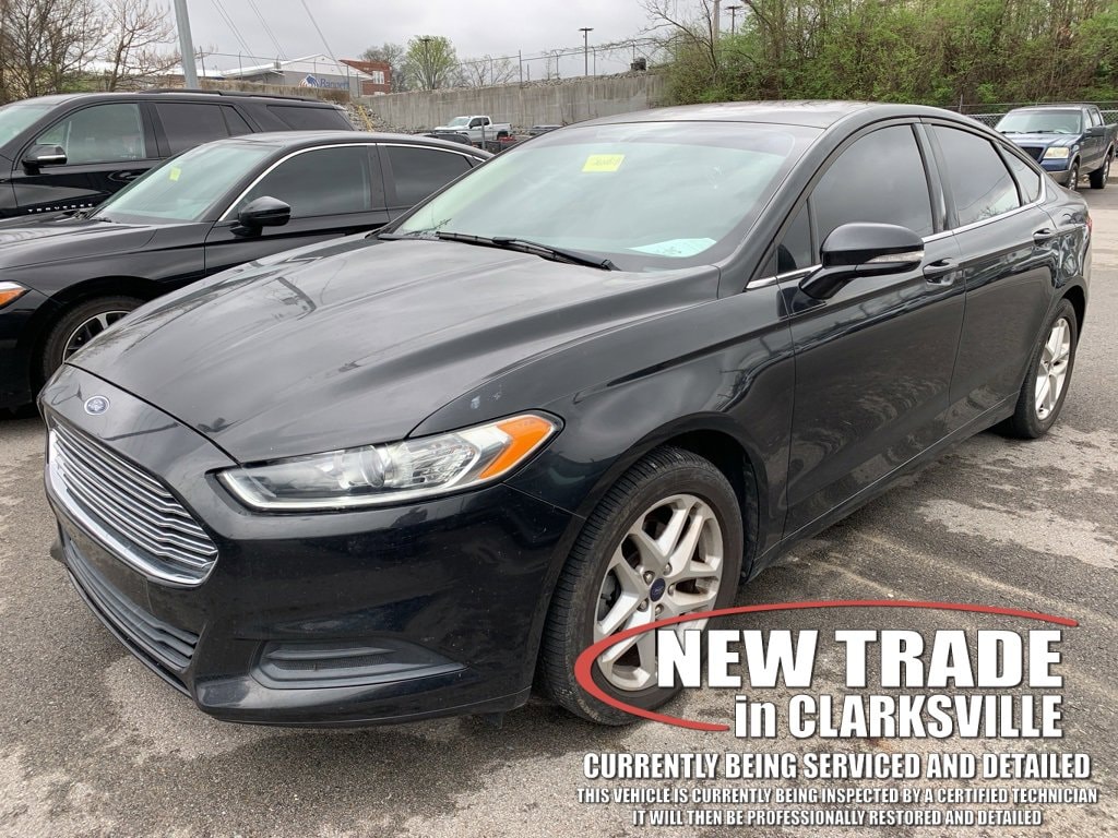 Clean CARFAX. Tuxedo Black Metallic 2013 Ford Fusion SEThe Pre-Owned 2013 Ford Fusion SE with EcoBoost 1.6L I4 GTDi DOHC Turbocharged VCT at Serra Clarksville. Well equipped: Equipment Group 203B, 6-Speed Automatic, 17 Aluminum Wheels, 4-Wheel Disc Brakes, 6 Speakers, ABS brakes, Air Conditioning, Alloy wheels, AM/FM radio: SiriusXM, AM/FM Stereo w/MP3/CD Player, Brake assist, Bumpers: body-color, CD player, Cloth Front Bucket Seats, Compass, Delay-off headlights, Driver door bin, Driver vanity mirror, Dual front impact airbags, Dual front side impact airbags, Electronic Stability Control, Four wheel independent suspension, Front anti-roll bar, Front Bucket Seats, Front Center Armrest, Front License Plate Bracket, Front reading lights, Fully automatic headlights, Heated door mirrors, Illuminated entry, Knee airbag, Low tire pressure warning, Occupant sensing airbag, Outside temperature display, Overhead airbag, Overhead console, Panic alarm, Passenger door bin, Passenger vanity mirror, Power door mirrors, Power driver seat, Power steering, Power windows, Radio data system, Rear anti-roll bar, Rear reading lights, Rear seat center armrest, Rear window defroster, Remote keyless entry, Security system, Speed control, Speed-sensing steering, Speed-Sensitive Wipers, Split folding rear seat, Steering wheel mounted audio controls, Tachometer, Telescoping steering wheel, Tilt steering wheel, Traction control, Trip computer, Turn signal indicator mirrors, and Variably intermittent wipers.FWD EcoBoost 1.6L I4 GTDi DOHC Turbocharged VCT 6-Speed AutomaticRecent Arrival!Awards:* Ward's 10 Best Engines * 2013 KBB.com 10 Best Family Cars * 2013 KBB.com Best Resale Value Awards * 2013 KBB.com 10 Best New Sedans Under $25,000 * Green Car Journal 2013 Green Car of the Year * 2013 KBB.com Brand Image AwardsBased on 2017 EPA mileage ratings. Use for comparison purposes only. Your mileage will vary depending on how you drive and maintain your vehicle, driving conditions and other factors.Reviews:* Whether you want a midsize sedan thatâs value-oriented, engaging to drive, or boasts the highest fuel economy in its class, there is probably a version of the 2013 Fusion that fits your requirements. Source: KBB.com* Fuel-efficient turbocharged engines; sharp handling; composed ride; quiet cabin; advanced technology and safety features; eye-catching styling; available all-wheel drive. Source: Edmunds