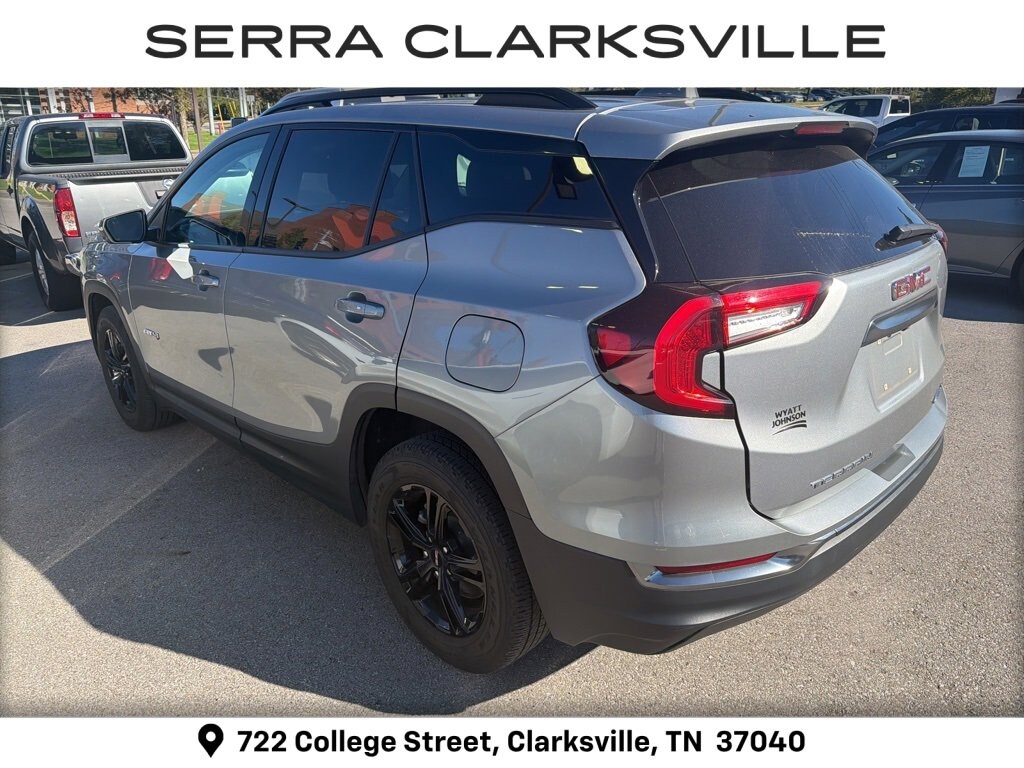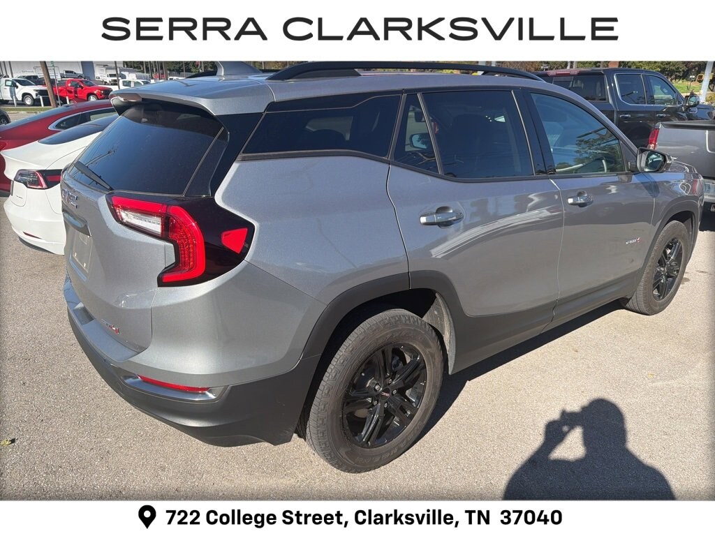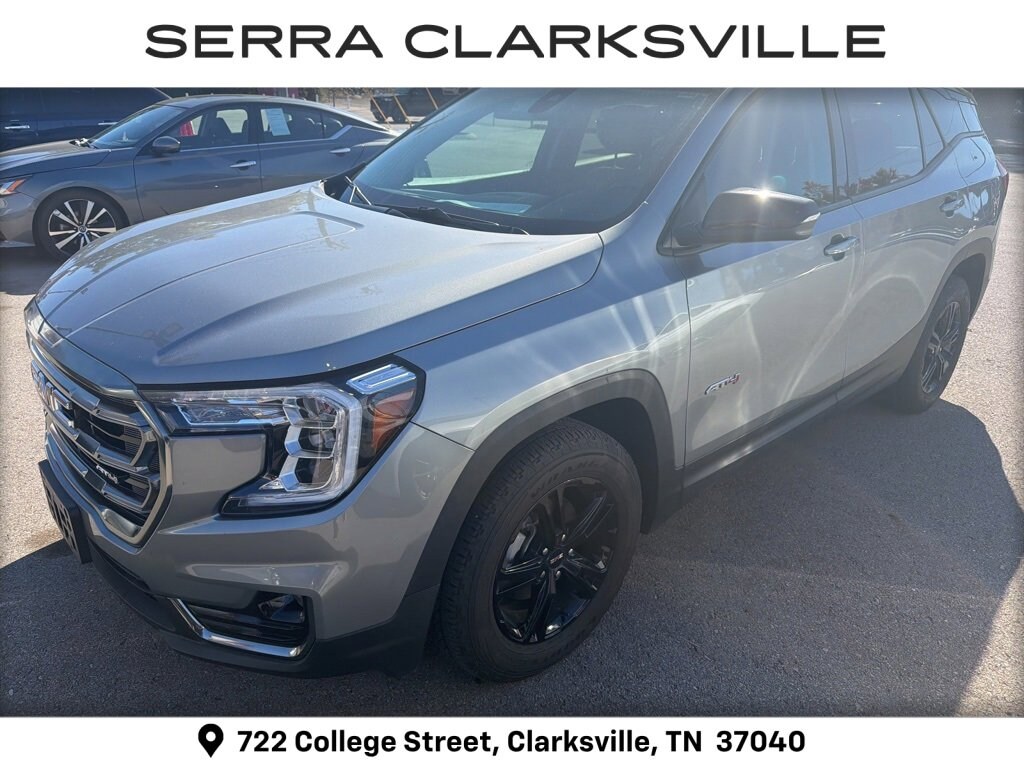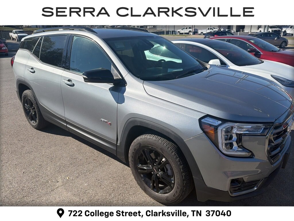 Local new car trade-in! Clean CARFAX. The Pre-Owned 2023 GMC Terrain AT4 with 1.5L DOHC at Serra Clarksville. Well equipped: License Plate Front Mounting Package, Preferred Equipment Group 4SC, AWD, 2 USB Data Ports, 2 USB Data Ports w/SD Card Reader, 3.47 Axle Ratio, 4-Wheel Disc Brakes, 6 Speakers, 6-Speaker Audio System Feature, 6-Way Power Front Passenger Seat, 8-Way Power Driver Seat Adjuster, ABS brakes, Air Conditioning, Alloy wheels, AM/FM radio: SiriusXM, Auto High-beam Headlights, Auto-dimming Rear-View mirror, Automatic temperature control, Bluetooth® For Phone, Brake assist, Bumpers: body-color, Compass, Delay-off headlights, Deleted 3 Years of OnStar & Connected Services Plan, Driver & Front Passenger Heated Seats, Driver door bin, Driver vanity mirror, Dual front impact airbags, Dual front side impact airbags, Electronic Stability Control, Emergency communication system: OnStar and GMC connected services capable, Four wheel independent suspension, Front anti-roll bar, Front Bucket Seats, Front Center Armrest, Front dual zone A/C, Front fog lights, Front Passenger 2-Way Power Lumbar, Front reading lights, Fully automatic headlights, Garage door transmitter, Heated door mirrors, Heated front seats, Heated steering wheel, Illuminated entry, Lane Departure Warning System, Low tire pressure warning, Memory seat, Occupant sensing airbag, Outside temperature display, Overhead airbag, Overhead console, Panic alarm, Passenger door bin, Passenger vanity mirror, Perforated Leather-Appointed Seat Trim w/AT4 Logo, Power door mirrors, Power Driver Lumbar Control, Power driver seat, Power Liftgate, Power passenger seat, Power steering, Power windows, Radio data system, Radio: GMC Infotainment Audio System w/8 Display, Rear anti-roll bar, Rear seat center armrest, Rear window defroster, Rear window wiper, Remote keyless entry, Roof rack: rails only, Security system, SiriusXM Radio, Speed control, Speed-sensing steering, Split folding rear seat, Spoiler, Steering wheel mounted audio controls, Tachometer, Telescoping steering wheel, Tilt steering wheel, Traction control, Trip computer, Turn signal indicator mirrors, Variably intermittent wipers, Wheels: 17 x 7 Gloss Black Aluminum, and Wireless Apple CarPlay/Wireless Android Auto.AWD 1.5L DOHC 9-Speed AutomaticRecent Arrival! Odometer is 12175 miles below market average! 24/28 City/Highway MPG
