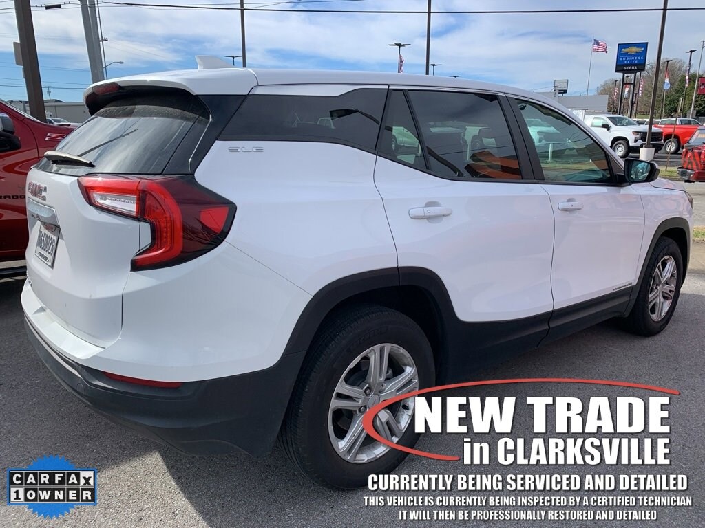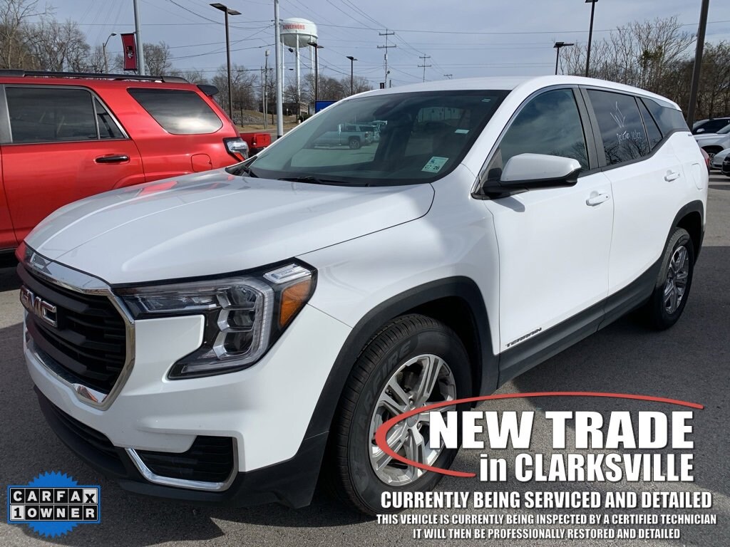 CARFAX One-Owner. Clean CARFAX. Summit White 2024 GMC Terrain SLEThe Pre-Owned 2024 GMC Terrain SLE with 1.5L DOHC at Serra Clarksville. Well equipped: Preferred Equipment Group 3SA, 2 USB Data Ports w/Auxiliary Input Jack, 3.47 Final Drive Axle Ratio, 4-Way Manual Driver's Seat, 4-Way Manual Front Passenger Seat, 4-Wheel Disc Brakes, 4.2 Multi-Color Driver Information Screen, 6 Speakers, 6-Speaker Audio System Feature, ABS brakes, Air Conditioning, Alloy wheels, AM/FM radio: SiriusXM, Auto High-beam Headlights, Auto-dimming Rear-View mirror, Automatic temperature control, Bluetooth® For Phone, Brake assist, Bumpers: body-color, Compass, Delay-off headlights, Deleted 3 Years of Remote Access, Driver door bin, Driver vanity mirror, Dual front impact airbags, Dual front side impact airbags, Electronic Stability Control, Emergency communication system: OnStar and GMC connected services capable, Four wheel independent suspension, Front anti-roll bar, Front Bucket Seats, Front Center Armrest, Front reading lights, Fully automatic headlights, Heated door mirrors, Illuminated entry, Low tire pressure warning, Occupant sensing airbag, Outside temperature display, Overhead airbag, Overhead console, Panic alarm, Passenger door bin, Passenger vanity mirror, Power door mirrors, Power steering, Power windows, Premium Cloth Seat Trim, Radio data system, Radio: GMC Infotainment Audio System w/7 Display, Rear anti-roll bar, Rear seat center armrest, Rear window defroster, Rear window wiper, Remote keyless entry, Security system, SiriusXM, Speed control, Speed-sensing steering, Split folding rear seat, Spoiler, Steering wheel mounted audio controls, Tachometer, Telescoping steering wheel, Tilt steering wheel, Traction control, Trip computer, Variably intermittent wipers, Wheels: 17 x 7 Silver Painted Aluminum, and Wireless Apple CarPlay/Wireless Android Auto.FWD 1.5L DOHC 9-Speed AutomaticRecent Arrival! Odometer is 3414 miles below market average! 24/29 City/Highway MPG
