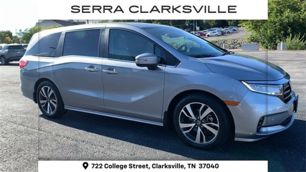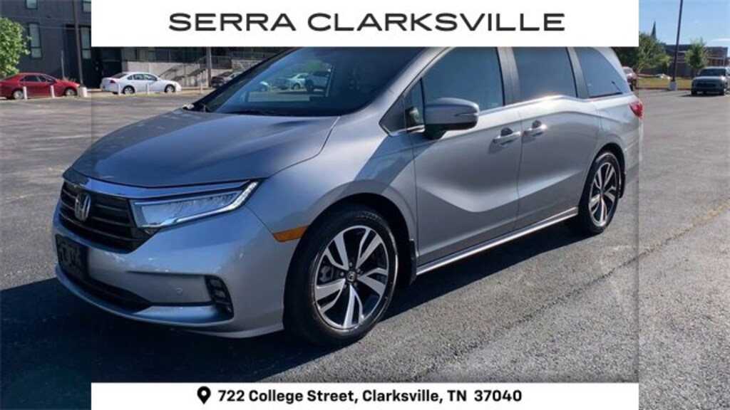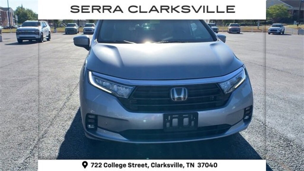 One-owner local new car trade-in! Clean CARFAX. The Pre-Owned 2024 Honda Odyssey Touring with 3.5L V6 SOHC i-VTEC 24V at Serra Clarksville. Well equipped: 3.61 Axle Ratio, 3rd row seats: split-bench, 4-Wheel Disc Brakes, 7 Speakers, A/V remote: CabinControl, ABS brakes, Adaptive Cruise Control: Adaptive Cruise Control (ACC) with Low-Speed Follow, Air Conditioning, Alloy wheels, AM/FM radio: SiriusXM, Anti-whiplash front head restraints, Apple CarPlay/Android Auto, Auto High-beam Headlights, Auto-dimming Rear-View mirror, Automatic temperature control, Blind Spot Information (BSI) System warning, Brake assist, Bumpers: body-color, CD player, Compass, Delay-off headlights, Driver door bin, Driver vanity mirror, Driver's Seat Mounted Armrest, Dual front impact airbags, Dual front side impact airbags, DVD-Audio, Electronic Stability Control, Emergency communication system: HondaLink, Exterior Parking Camera Rear, Four wheel independent suspension, Front anti-roll bar, Front Bucket Seats, Front dual zone A/C, Front fog lights, Front reading lights, Fully automatic headlights, Garage door transmitter: HomeLink, Headphones, Heated door mirrors, Heated Front Bucket Seats, Heated front seats, Illuminated entry, Knee airbag, Lane departure: Lane Keeping Assist System (LKAS) active, Leather Seat Trim, Leather steering wheel, Low tire pressure warning, Memory seat, Navigation system: Honda Satellite-Linked Navigation System, Occupant sensing airbag, Outside temperature display, Overhead airbag, Overhead console, Panic alarm, Passenger door bin, Passenger seat mounted armrest, Passenger vanity mirror, Power door mirrors, Power driver seat, Power Liftgate, Power moonroof, Power passenger seat, Power steering, Power windows, Radio data system, Radio: 160-Watt AM/FM/HD/SiriusXM Audio System, Rear air conditioning, Rear anti-roll bar, Rear audio controls, Rear reading lights, Rear seat center armrest, Rear window defroster, Rear window wiper, Reclining 3rd row seat, Remote keyless entry, Security system, Speed control, Speed-sensing steering, Speed-Sensitive Wipers, Split folding rear seat, Spoiler, Steering wheel mounted audio controls, Tachometer, Telescoping steering wheel, Tilt steering wheel, Traction control, Trip computer, Turn signal indicator mirrors, Variably intermittent wipers, and Wheels: 19 Machine-Finished Alloy.