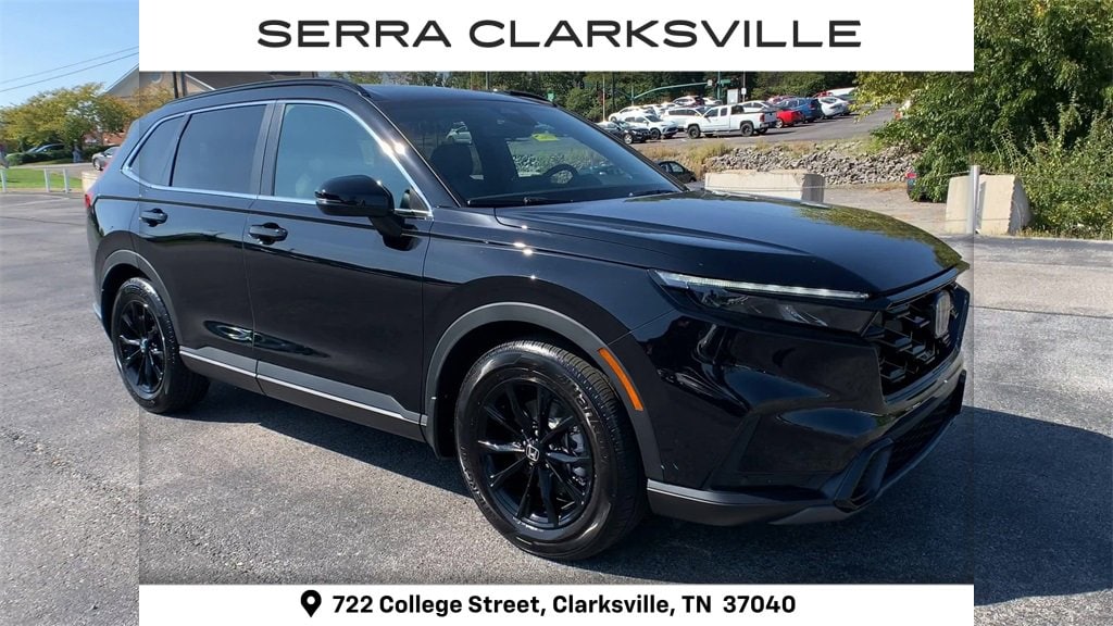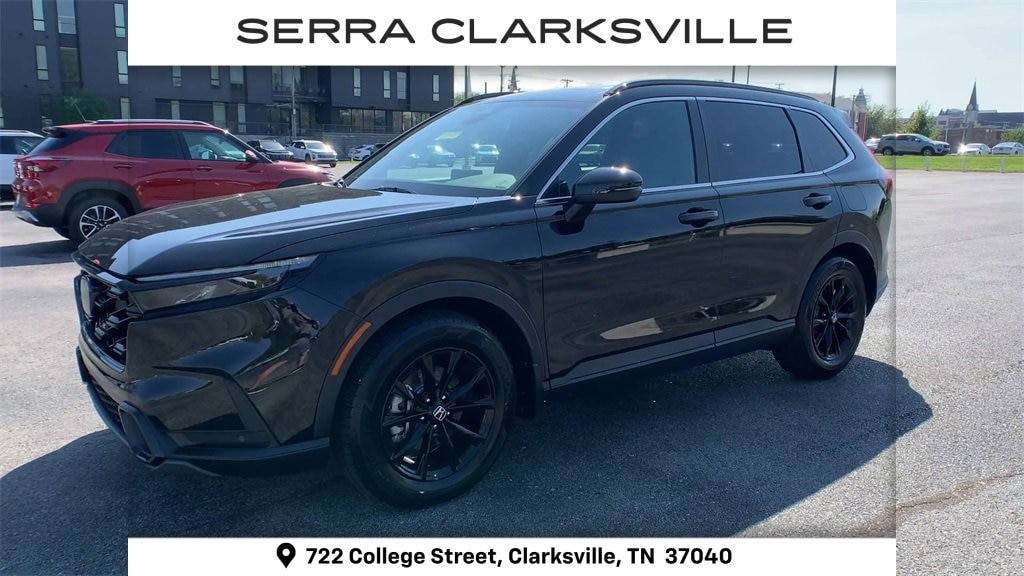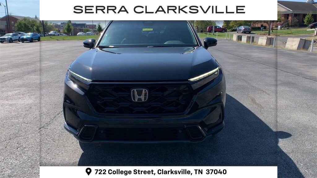One-owner local new car trade-on! Clean CARFAX. The Pre-Owned 2025 Honda CR-V Hybrid Sport-L with 2.0L I4 DOHC 16V at Serra Clarksville. Well equipped: 2.0L I4 DOHC 16V, 4-Wheel Disc Brakes, 8 Speakers, ABS brakes, Adaptive Cruise Control: Adaptive Cruise Control (ACC) with Low-Speed Follow, Air Conditioning, Alloy wheels, AM/FM radio: SiriusXM, Auto High-beam Headlights, Auto-dimming Rear-View mirror, Automatic temperature control, Blind Spot Information (BSI) System warning, Brake assist, Bumpers: body-color, Compass, Delay-off headlights, Driver door bin, Driver vanity mirror, Dual front impact airbags, Dual front side impact airbags, Electronic Stability Control, Exterior Parking Camera Rear, Four wheel independent suspension, Front anti-roll bar, Front Bucket Seats, Front Center Armrest, Front dual zone A/C, Front reading lights, Fully automatic headlights, Heated door mirrors, Heated Front Bucket Seats, Heated front seats, Illuminated entry, Knee airbag, Leather Seat Trim, Leather Shift Knob, Leather steering wheel, Low tire pressure warning, Memory seat, Occupant sensing airbag, Outside temperature display, Overhead airbag, Overhead console, Panic alarm, Passenger door bin, Passenger vanity mirror, Power door mirrors, Power driver seat, Power Liftgate, Power moonroof, Power passenger seat, Power steering, Power windows, Radio data system, Radio: 320-Watt AM/FM/HD/SiriusXM Audio System, Rear anti-roll bar, Rear reading lights, Rear seat center armrest, Rear side impact airbag, Rear window defroster, Rear window wiper, Remote keyless entry, Security system, Speed control, Speed-sensing steering, Speed-Sensitive Wipers, Split folding rear seat, Spoiler, Steering wheel mounted audio controls, Telescoping steering wheel, Tilt steering wheel, Traction control, Trip computer, Turn signal indicator mirrors, Variably intermittent wipers, and Wheels: 18 Berlina Black Alloy.
