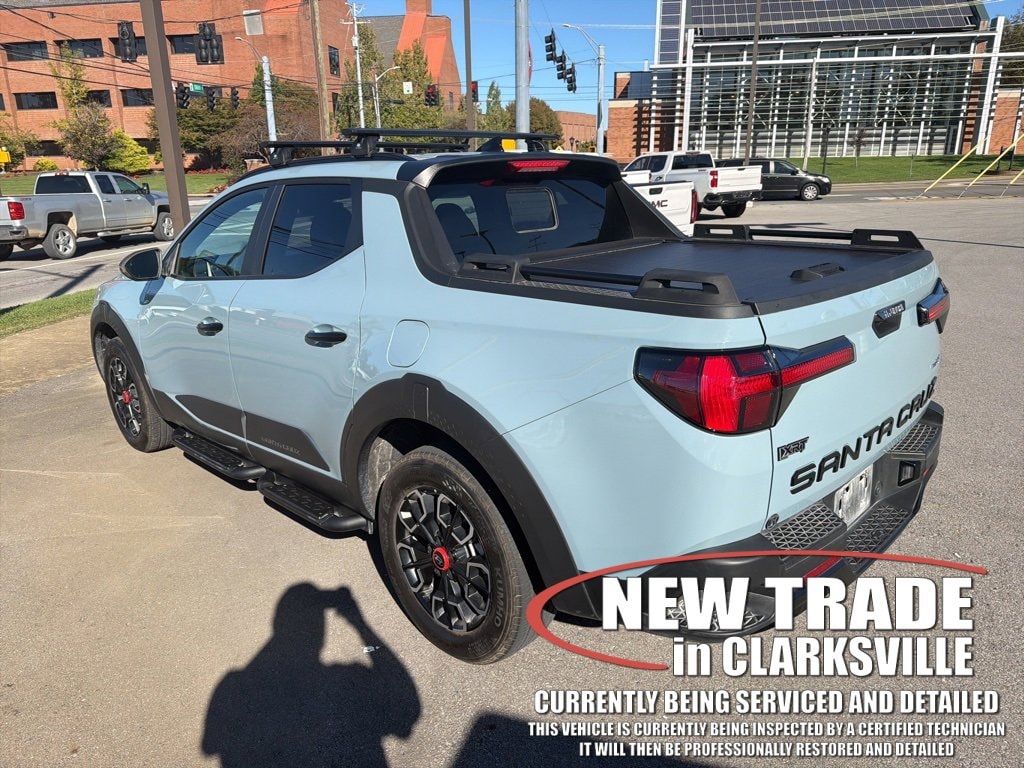 One-owner local new car trade-in! The Pre-Owned 2024 Hyundai Santa Cruz XRT with 2.5L I4 at Serra Clarksville. Well equipped: Option Group 01, 18 x 7.5J Alloy Wheels, 3.316 Axle Ratio, 4-Wheel Disc Brakes, 6 Speakers, ABS brakes, Air Conditioning, Alloy wheels, AM/FM radio: SiriusXM, Apple CarPlay & Android Auto, Auto High-beam Headlights, Auto-dimming Rear-View mirror, Auto-leveling suspension, Automatic temperature control, Bed Mat, Bodyside moldings, Brake assist, Bumpers: body-color, Carpeted Floor Mats, Delay-off headlights, Driver door bin, Driver vanity mirror, Dual front impact airbags, Dual front side impact airbags, Electronic Stability Control, Emergency communication system: Bluelink+, Exterior Parking Camera Rear, Four wheel independent suspension, Front anti-roll bar, Front Bucket Seats, Front Center Armrest, Front dual zone A/C, Front reading lights, Fully automatic headlights, H-Tex Leatherette Seating Surfaces, Heated door mirrors, Heated Front Bucket Seats, Heated front seats, Illuminated entry, Leather Shift Knob, Leather steering wheel, Low tire pressure warning, Navigation System, Occupant sensing airbag, Outside temperature display, Overhead airbag, Overhead console, Panic alarm, Passenger door bin, Passenger vanity mirror, Power door mirrors, Power driver seat, Power moonroof, Power steering, Power windows, Radio data system, Radio: AM/FM/HD Audio System, Rear anti-roll bar, Rear side impact airbag, Rear step bumper, Rear window defroster, Remote keyless entry, Roadside Assistance Kit, Roof Rack Cross Rails, Security system, Speed control, Speed-sensing steering, Split folding rear seat, Spoiler, Steering wheel mounted audio controls, Tachometer, Telescoping steering wheel, Tilt steering wheel, Traction control, Trip computer, Turn signal indicator mirrors, and Variably intermittent wipers.
