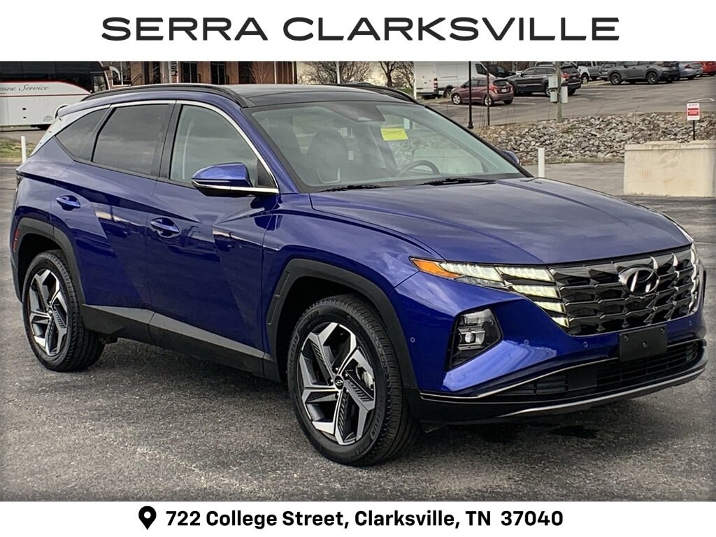 CARFAX One-Owner. Clean CARFAX. Intense Blue 2024 Hyundai Tucson LimitedThe Pre-Owned 2024 Hyundai Tucson Limited with 2.5L I4 DGI DOHC 16V LEV3-SULEV30 187hp at Serra Clarksville. Well equipped: Option Group 01, AWD, 3.648 Axle Ratio, 4-Wheel Disc Brakes, 8 Speakers, ABS brakes, Air Conditioning, Alloy wheels, AM/FM radio: SiriusXM, Apple CarPlay & Android Auto, Auto High-beam Headlights, Auto-dimming Rear-View mirror, Automatic temperature control, Brake assist, Bumpers: body-color, Delay-off headlights, Driver door bin, Driver vanity mirror, Dual front impact airbags, Dual front side impact airbags, Electronic Stability Control, Emergency communication system: Blue Link Connected Car Service (3-year complimentary subscription), Exterior Parking Camera Rear, Four wheel independent suspension, Front anti-roll bar, Front Bucket Seats, Front Center Armrest, Front dual zone A/C, Front reading lights, Fully automatic headlights, Garage door transmitter: HomeLink, Heated & Ventilated Front Bucket Seats, Heated door mirrors, Heated front seats, Heated rear seats, Heated steering wheel, Illuminated entry, Leather Seat Trim, Low tire pressure warning, Memory seat, Navigation System, Occupant sensing airbag, Outside temperature display, Overhead airbag, Overhead console, Panic alarm, Passenger door bin, Passenger vanity mirror, Power door mirrors, Power driver seat, Power Liftgate, Power moonroof, Power passenger seat, Power steering, Power windows, Radio data system, Radio: Bose Premium w/AM/FM/HD Audio System, Rain sensing wipers, Rear anti-roll bar, Rear reading lights, Rear seat center armrest, Rear side impact airbag, Rear window defroster, Rear window wiper, Remote keyless entry, Roof rack: rails only, Security system, Speed control, Split folding rear seat, Spoiler, Steering wheel mounted audio controls, Tachometer, Telescoping steering wheel, Tilt steering wheel, Traction control, Trip computer, Turn signal indicator mirrors, Variably intermittent wipers, Ventilated front seats, and Wheels: 19 x 7.5J Machine-Face Finish Alloy.AWD 2.5L I4 DGI DOHC 16V LEV3-SULEV30 187hp 8-Speed Automatic with SHIFTRONICRecent Arrival! Odometer is 10159 miles below market average! 23/29 City/Highway MPG