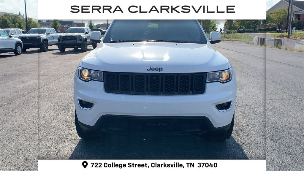 One-owner local new car trade-in! Clean CARFAX. The Pre-Owned 2021 Jeep Grand Cherokee Laredo E with 3.6L V6 24V VVT at Serra Clarksville. Well equipped: MOPAR Interior Protection Group, Quick Order Package 2BE Laredo E, Security & Convenience Group (115V Auxiliary Power Outlet, Power Liftgate, Security Alarm, and Universal Garage Door Opener), 4WD, 3.45 Rear Axle Ratio, 4-Wheel Disc Brakes, 6 Speakers, ABS brakes, Air Conditioning, Alloy wheels, AM/FM radio: SiriusXM, Anti-whiplash front head restraints, Apple CarPlay, Apple CarPlay/Android Auto, Automatic temperature control, Brake assist, Bumpers: body-color, Cargo Compartment Cover, Cloth Bucket Seats, Compass, Delay-off headlights, Driver door bin, Driver vanity mirror, Dual front impact airbags, Dual front side impact airbags, Electronic Stability Control, Four wheel independent suspension, Front anti-roll bar, Front Bucket Seats, Front Center Armrest w/Storage, Front dual zone A/C, Front fog lights, Front reading lights, Fully automatic headlights, Google Android Auto, GPS Antenna Input, Heated door mirrors, Illuminated entry, Integrated Voice Command w/Bluetooth, Knee airbag, Leather Shift Knob, Low tire pressure warning, MOPAR Cargo Area Liner (DISC), MOPAR Slush Mats (DISC), Normal Duty Suspension, Occupant sensing airbag, Outside temperature display, Overhead airbag, Overhead console, Panic alarm, ParkView Rear Back-Up Camera, Passenger door bin, Passenger vanity mirror, Power door mirrors, Power driver seat, Power steering, Power windows, Radio data system, Radio: Uconnect 4 w/7 Display, Rear anti-roll bar, Rear reading lights, Rear seat center armrest, Rear window defroster, Rear window wiper, Remote keyless entry, Roof rack: rails only, Speed control, Speed-sensing steering, Speed-Sensitive Wipers, Split folding rear seat, Spoiler, Steering Wheel Mounted Audio Controls, Steering wheel mounted audio controls, Tachometer, Telescoping steering wheel, Tilt steering wheel, Traction control, Trip computer, Variably intermittent wipers, and Wheels: 18 x 8.0 Fine Silver Aluminum.