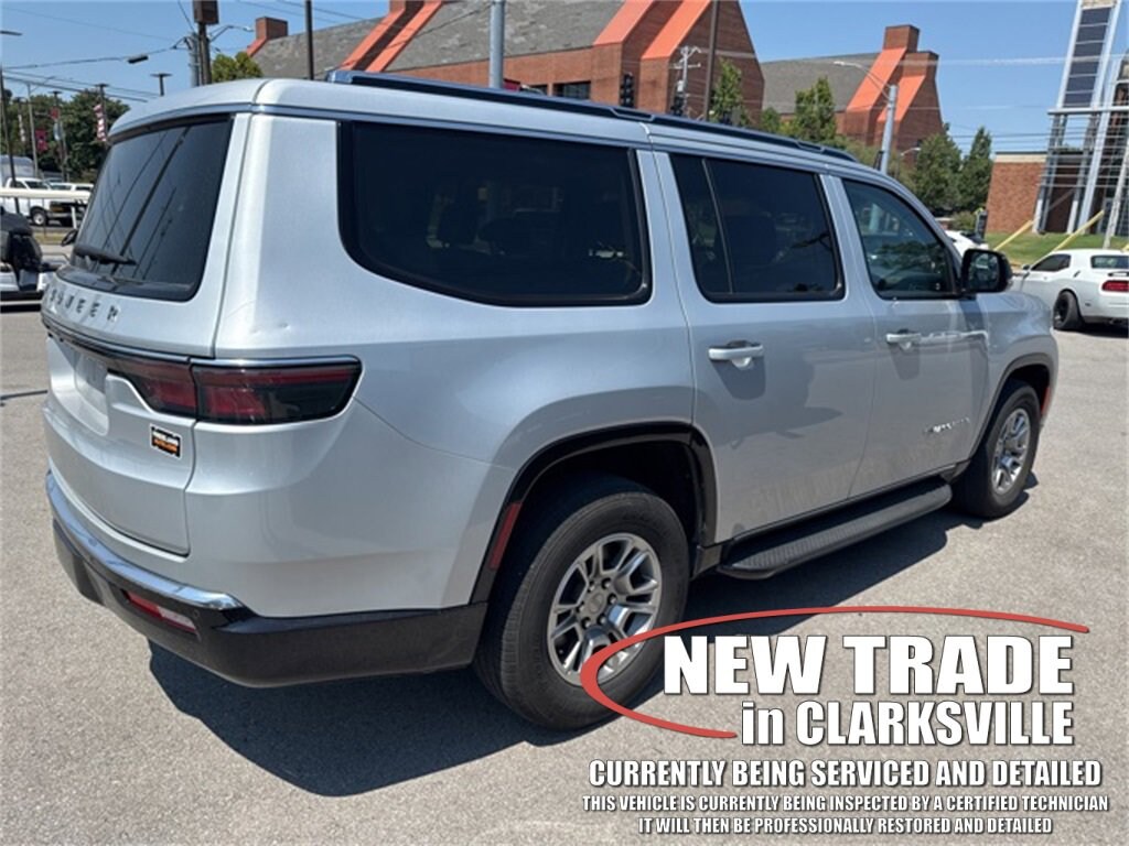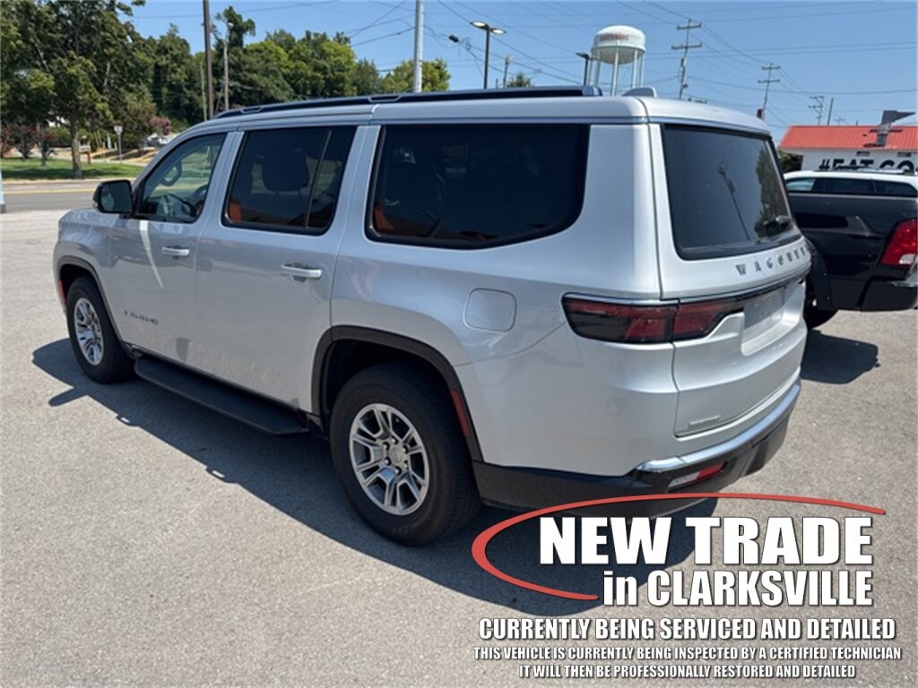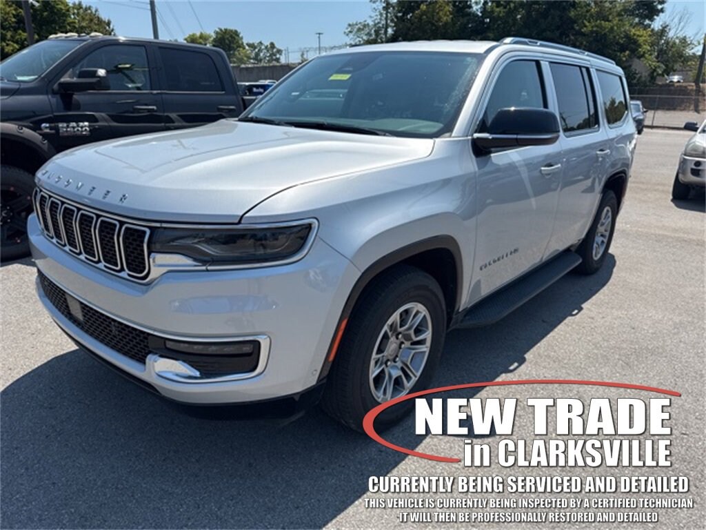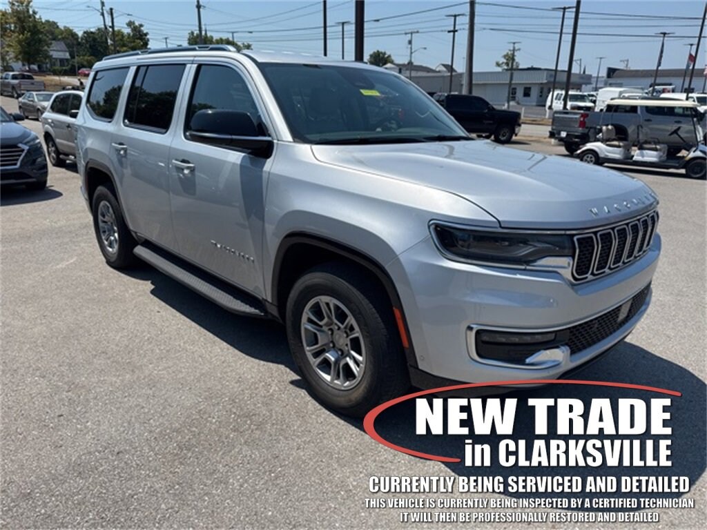 One-owner local new car trade-in! Clean CARFAX. The Pre-Owned 2023 Jeep Wagoneer with 3.0L I6 at Serra Clarksville. Well equipped: Quick Order Package 25E, 10 Speakers, 3.21 Rear Axle Ratio, 3.55 Rear Axle Ratio, 3rd row seats: bench, 4-Wheel Disc Brakes, ABS brakes, Adjustable pedals, Air Conditioning, Alloy wheels, AM/FM radio: SiriusXM with 360L, Anti-whiplash front head restraints, Audio memory, Auto-dimming door mirrors, Auto-dimming Rear-View mirror, Auto-leveling suspension, Automatic temperature control, Brake assist, Bumpers: body-color, Compass, Delay-off headlights, Driver door bin, Driver vanity mirror, Driver's Seat Mounted Armrest, Dual front impact airbags, Dual front side impact airbags, Electronic Stability Control, Emergency communication system: Automatic SOS Call, Exterior Parking Camera Rear, Four wheel independent suspension, Front anti-roll bar, Front Bucket Seats, Front Center Armrest w/Storage, Front dual zone A/C, Front fog lights, Front reading lights, Fully automatic headlights, Garage door transmitter, Heated door mirrors, Heated front seats, Heated steering wheel, Illuminated entry, Knee airbag, Leather Trimmed Bucket Seats, Low tire pressure warning, Memory seat, Navigation System, Normal Duty Suspension, Occupant sensing airbag, Outside temperature display, Overhead airbag, Overhead console, Panic alarm, Passenger door bin, Passenger seat mounted armrest, Passenger vanity mirror, Pedal memory, Power adjustable front head restraints, Power door mirrors, Power driver seat, Power Liftgate, Power passenger seat, Power steering, Power windows, Radio data system, Radio: Uconnect 5 Nav w/10.1 Display, Rear air conditioning, Rear anti-roll bar, Rear dual zone A/C, Rear reading lights, Rear seat center armrest, Rear window defroster, Rear window wiper, Reclining 3rd row seat, Remote keyless entry, Security system, Speed control, Speed-sensing steering, Speed-Sensitive Wipers, Split folding rear seat, Steering wheel memory, Steering wheel mounted audio controls, Tachometer, Telescoping steering wheel, Tilt steering wheel, Traction control, Trip computer, Turn signal indicator mirrors, Variably intermittent wipers, Ventilated front seats, Voltmeter, and Wheels: 18 x 8.0 Aluminum Base Finish.