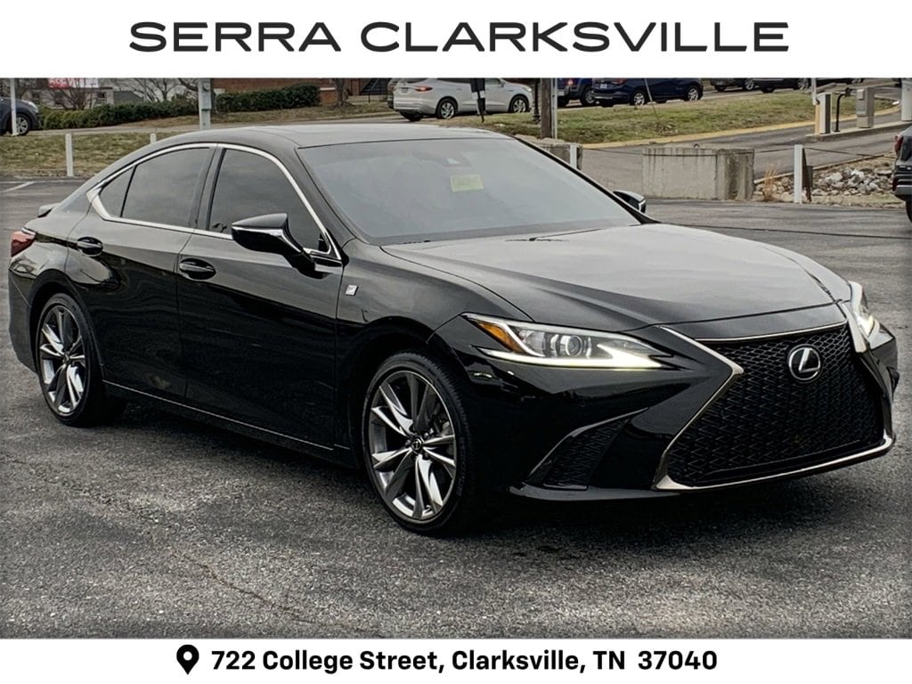 The Pre-Owned 2020 Lexus ES 350 F Sport with 3.5L V6 DOHC Dual VVT-i 24V at Serra Clarksville. Well equipped: Accessory Package 2 (Alloy Wheel Locks, Cargo Net, Carpet Trunk Mat, Key Gloves, and Rear Bumper Applique), F SPORT Package (8 TFT LCD Instrument Panel Display, Active Noise Control, Auto Retractable Outside Rear View Mirror, Driver Seat Memory, F SPORT Analog Clock, F SPORT Gauges w/Movable Display Ring, F SPORT Grille w/Dark Surround, F SPORT Pedals, F SPORT Shift Lever & Knob, Front & Rear Performance Dampers, Hadori Aluminum Interior Trim, Heated & Ventilated Seats, Power Tilt/Telescoping Steering Wheel w/Memory, Rain Sensing Wipers, and Rear Spoiler), Circuit Red W/Hadori Aluminum, 10 Speakers, 10-Way Power Adjustable F SPORT Front Seats, 4-Wheel Disc Brakes, ABS brakes, Air Conditioning, All Weather Floor Liners w/Trunk Tray, Alloy wheels, AM/FM radio: SiriusXM, Auto High-beam Headlights, Auto tilt-away steering wheel, Auto-dimming door mirrors, Auto-dimming Rear-View mirror, Automatic temperature control, Blind Spot Monitor w/Park Assist, Brake assist, Bumpers: body-color, CD player, Compass, Delay-off headlights, Door Edge Film by 3M, Driver door bin, Driver vanity mirror, Dual front impact airbags, Dual front side impact airbags, Electronic Stability Control, Emergency communication system: Lexus Enform Safety Connect, Exterior Parking Camera Rear, F SPORT Heated Leather Steering Wheel, F SPORT NuLuxe Seat Trim, Four wheel independent suspension, Front anti-roll bar, Front Bucket Seats, Front Center Armrest, Front dual zone A/C, Front reading lights, Fully automatic headlights, Garage door transmitter: HomeLink, Heated door mirrors, Heated front seats, Illuminated entry, Intelligence Clearance Sonar, Knee airbag, Lane Change Assist w/Rear Cross Traffic Alert, Leather Shift Knob, Leather steering wheel, Low tire pressure warning, Memory seat, Occupant sensing airbag, Outside temperature display, Overhead airbag, Overhead console, Panic alarm, Passenger door bin, Passenger vanity mirror, Power door mirrors, Power driver seat, Power moonroof, Power passenger seat, Power steering, Power windows, Radio data system, Radio: Lexus Premium Sound System w/10 Speakers, Radio: Mark Levinson Audio, Rain sensing wipers, Rear anti-roll bar, Rear reading lights, Rear seat center armrest, Rear side impact airbag, Rear window defroster, Remote keyless entry, Security system, Speed control, Speed-sensing steering, Sport steering wheel, Steering wheel memory, Steering wheel mounted audio controls, Tachometer, Telescoping steering wheel, Tilt steering wheel, Traction control, Trip computer, Turn signal indicator mirrors, Variably intermittent wipers, Ventilated front seats, Wheels: 19 x 8J Split Spoke Aluminum Alloy, and Wireless Charger.