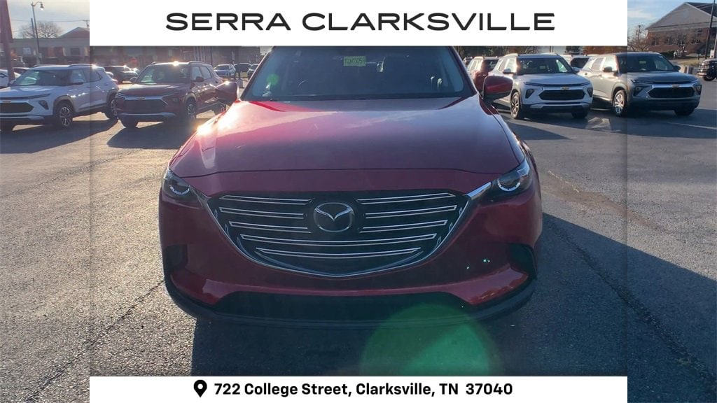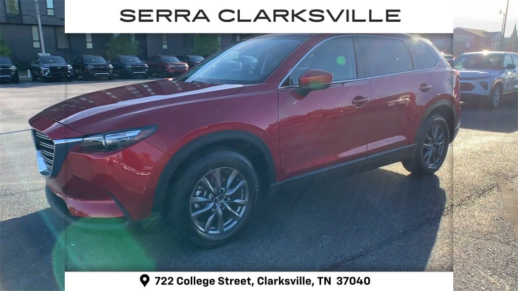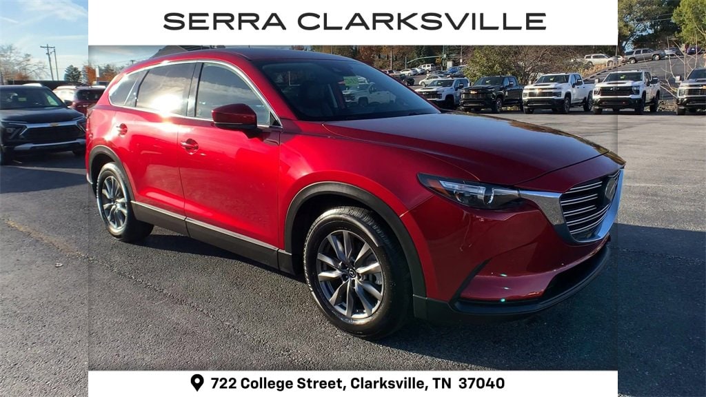 One-owner local new car trade-in! The Pre-Owned 2022 Mazda CX-9 Touring with 2.5L 4-Cylinder at Serra Clarksville. Well equipped: AWD, 3rd row seats: bench, 4-Wheel Disc Brakes, 4.411 Axle Ratio, 6 Speakers, ABS brakes, Air Conditioning, Alloy wheels, AM/FM radio, AppLink/Apple CarPlay and Android Auto, Auto High-beam Headlights, Auto-dimming Rear-View mirror, Automatic temperature control, Brake assist, Bumpers: body-color, Compass, Delay-off headlights, Driver door bin, Driver vanity mirror, Dual front impact airbags, Dual front side impact airbags, E911 Automatic Emergency Notification, Electronic Stability Control, Emergency communication system: MAZDA CONNECT, Exterior Parking Camera Rear, Four wheel independent suspension, Front anti-roll bar, Front Bucket Seats, Front Center Armrest, Front dual zone A/C, Front reading lights, Fully automatic headlights, Garage door transmitter: HomeLink, Heated door mirrors, Heated Front Bucket Seats, Heated front seats, Illuminated entry, Infotainment System Voice Command, Leather Seat Trim, Leather Shift Knob, Leather steering wheel, Low tire pressure warning, Mazda Connected Services, Occupant sensing airbag, Outside temperature display, Overhead airbag, Overhead console, Pandora Internet Radio Integration, Panic alarm, Passenger door bin, Passenger vanity mirror, Power door mirrors, Power driver seat, Power Liftgate, Power passenger seat, Power steering, Power windows, Radio Broadcast Data System Program Information, Radio data system, Radio: AM/FM Sound System, Rain sensing wipers, Rear air conditioning, Rear anti-roll bar, Rear reading lights, Rear seat center armrest, Rear window defroster, Rear window wiper, Remote keyless entry, SMS Text Msg Audio Delivery & Reply, Soul Red Crystal Metallic Paint, Speed control, Speed-sensing steering, Split folding rear seat, Spoiler, Steering wheel mounted audio controls, Tachometer, Telescoping steering wheel, Tilt steering wheel, Traction control, Trip computer, Turn signal indicator mirrors, Variably intermittent wipers, and Wheels: 18 x 8J Aluminum Alloy.