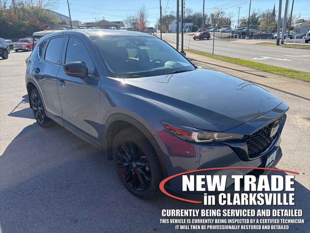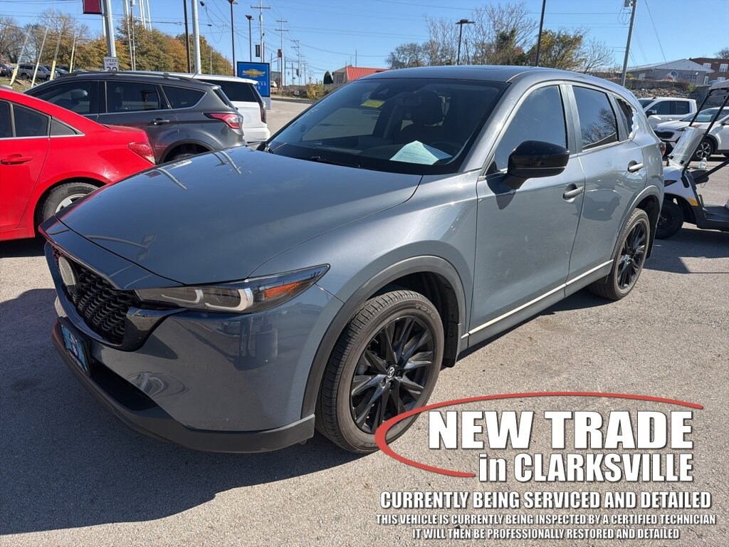 Local new car trade-in! Clean CARFAX. The Pre-Owned 2023 Mazda CX-5 2.5 S Carbon Edition with SKYACTIV® 2.5L 4-Cylinder DOHC 16V at Serra Clarksville. Well equipped: 10 Speakers, 4-Wheel Disc Brakes, 4.624 Axle Ratio, ABS brakes, Air Conditioning, Alloy wheels, AM/FM radio, AppLink/Apple CarPlay and Android Auto, Auto High-beam Headlights, Auto-dimming Rear-View mirror, Automatic temperature control, Black Lug Nuts & Black Wheel Locks, Brake assist, Bumpers: body-color, Carbon Edition License Plate Frame, Delay-off headlights, Driver door bin, Driver vanity mirror, Dual front impact airbags, Dual front side impact airbags, E911 Automatic Emergency Notification, Electronic Stability Control, Emergency communication system: MAZDA CONNECT, Exterior Parking Camera Rear, Four wheel independent suspension, Front anti-roll bar, Front Bucket Seats, Front Center Armrest w/Storage, Front dual zone A/C, Front reading lights, Fully automatic headlights, Garage door transmitter: HomeLink, Heated Front Bucket Seats, Heated front seats, Illuminated entry, Infotainment System Voice Command, Leather Seat Trim, Leather Shift Knob, Low tire pressure warning, Memory seat, Multifunction Commander Control, Occupant sensing airbag, Outside temperature display, Overhead airbag, Overhead console, Pandora, Panic alarm, Passenger door bin, Passenger vanity mirror, Power door mirrors, Power driver seat, Power Liftgate, Power moonroof, Power passenger seat, Power steering, Power windows, Radio Broadcast Data System Program Information, Radio data system, Radio: AM/FM/HD Audio System, Rain sensing wipers, Rear anti-roll bar, Rear reading lights, Rear seat center armrest, Rear window defroster, Rear window wiper, Remote keyless entry, Roof Rack Side Rails, SMS Text Msg Audio Delivery & Reply, Speed control, Speed-sensing steering, Split folding rear seat, Spoiler, Steering wheel mounted audio controls, Tachometer, Telescoping steering wheel, Tilt steering wheel, Traction control, Trip computer, Turn signal indicator mirrors, Variably intermittent wipers, and Wheels: 19 x 7J Aluminum Alloy.