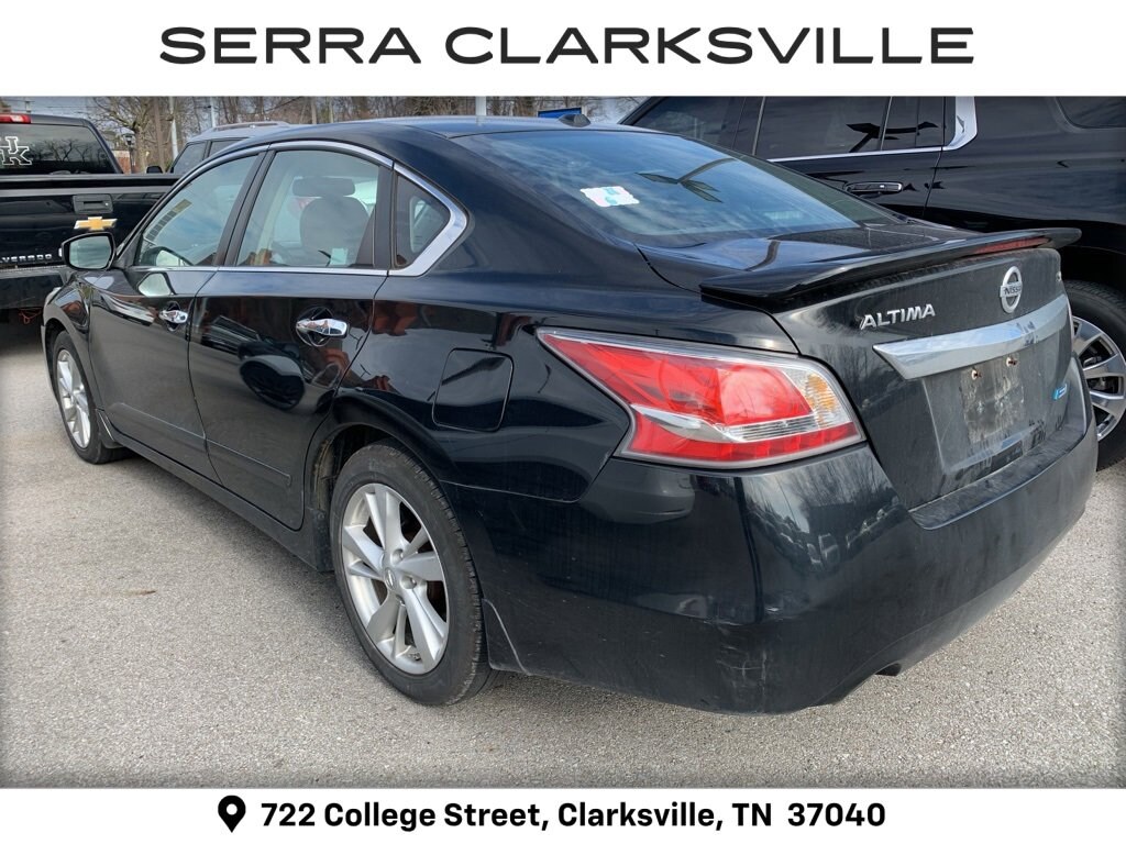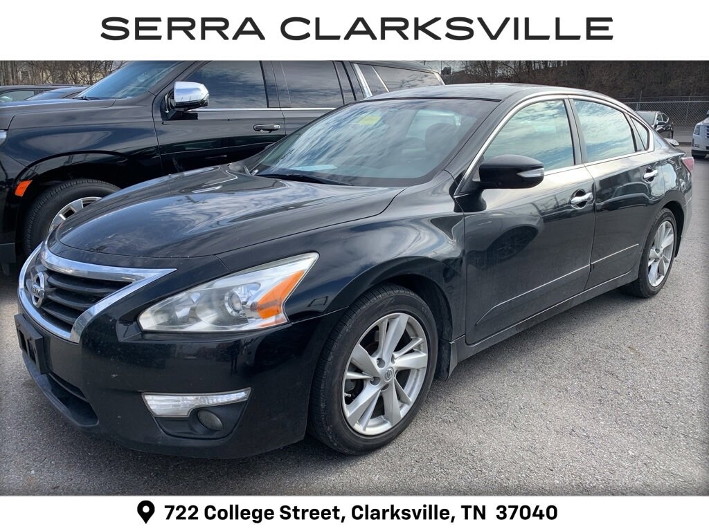 Super Black Clearcoat 2014 Nissan Altima 2.5 SLThe Pre-Owned 2014 Nissan Altima 2.5 SL with 2.5L I4 DOHC 16V at Serra Clarksville. Well equipped: Moonroof Package, Technology Package (Blind Spot Warning, Lane Departure Warning System, and Nissan Navigation System), CVT with Xtronic, 17 x 7.5 Aluminum Wheels, 4-Wheel Disc Brakes, 9 Speakers, ABS brakes, Activation Disclaimer, Air Conditioning, Alloy wheels, AM/FM radio: SiriusXM, Auto-dimming Rear-View mirror, Automatic temperature control, Brake assist, Bumpers: body-color, CD player, Compass, Delay-off headlights, Driver door bin, Driver vanity mirror, Dual front impact airbags, Dual front side impact airbags, Electronic Stability Control, Exterior Parking Camera Rear, External Ground Lighting, Floor Mats Plus Trunk Mat (5 Piece), Four wheel independent suspension, Front anti-roll bar, Front Bucket Seats, Front Center Armrest w/Storage, Front dual zone A/C, Front fog lights, Front reading lights, Fully automatic headlights, Garage door transmitter: HomeLink, Heated door mirrors, Heated Front Bucket Seats, Heated front seats, Heated steering wheel, Illuminated entry, Leather-Appointed Seat Trim, Low tire pressure warning, Occupant sensing airbag, Outside temperature display, Overhead airbag, Overhead console, Panic alarm, Passenger door bin, Passenger vanity mirror, Power door mirrors, Power driver seat, Power steering, Power windows, Radio data system, Radio: Bose Premium AM/FM/CD/SiriusXM Audio System, Rear anti-roll bar, Rear reading lights, Rear seat center armrest, Rear Spoiler, Rear window defroster, Remote keyless entry, Security system, Speed control, Speed-sensing steering, Speed-Sensitive Wipers, Splash Guards, Split folding rear seat, Steering wheel mounted audio controls, Tachometer, Telescoping steering wheel, Tilt steering wheel, Traction control, Trip computer, Trunk Sub Floor Organizer & Kits, Turn signal indicator mirrors, and Variably intermittent wipers.FWD 2.5L I4 DOHC 16V CVT with XtronicRecent Arrival! 27/38 City/Highway MPGAwards:* 2014 KBB.com 12 Best Family Cars * 2014 KBB.com 10 Most Comfortable Cars Under $30,000 * 2014 KBB.com 10 Best Sedans Under $25,000