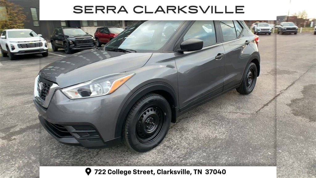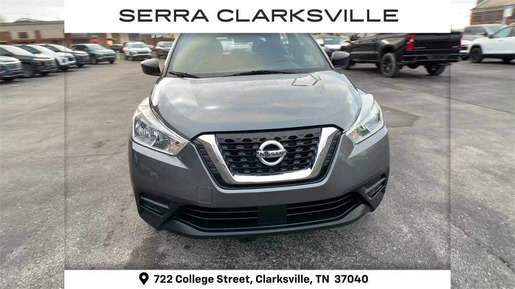 The Pre-Owned 2020 Nissan Kicks S with 1.6L 4-Cylinder DOHC 16V at Serra Clarksville. Well equipped: 16 Steel Wheels w/Full Covers, 3.927 Axle Ratio, 6 Speakers, ABS brakes, Air Conditioning, AM/FM radio, Auto High-beam Headlights, Blind Spot Warning, Brake assist, Bumpers: body-color, Carpeted Floor Mats w/Cargo Mat, Cloth Seat Trim, Driver door bin, Driver vanity mirror, Driver's Seat Mounted Armrest, Dual front impact airbags, Dual front side impact airbags, Electronic Stability Control, Front anti-roll bar, Front Bucket Seats, Front reading lights, Front wheel independent suspension, Fully automatic headlights, Illuminated entry, Knee airbag, Low tire pressure warning, Occupant sensing airbag, Outside temperature display, Overhead airbag, Panic alarm, Passenger door bin, Passenger vanity mirror, Power door mirrors, Power steering, Power windows, Radio data system, Radio: AM/FM Audio System, Rear Parking Sensors, Rear reading lights, Rear side impact airbag, Rear window defroster, Rear window wiper, Remote keyless entry, Speed control, Splash Guards Grain (4 Piece), Split folding rear seat, Sport steering wheel, Steering wheel mounted audio controls, Tachometer, Telescoping steering wheel, Tilt steering wheel, Traction control, Trip computer, and Variably intermittent wipers.