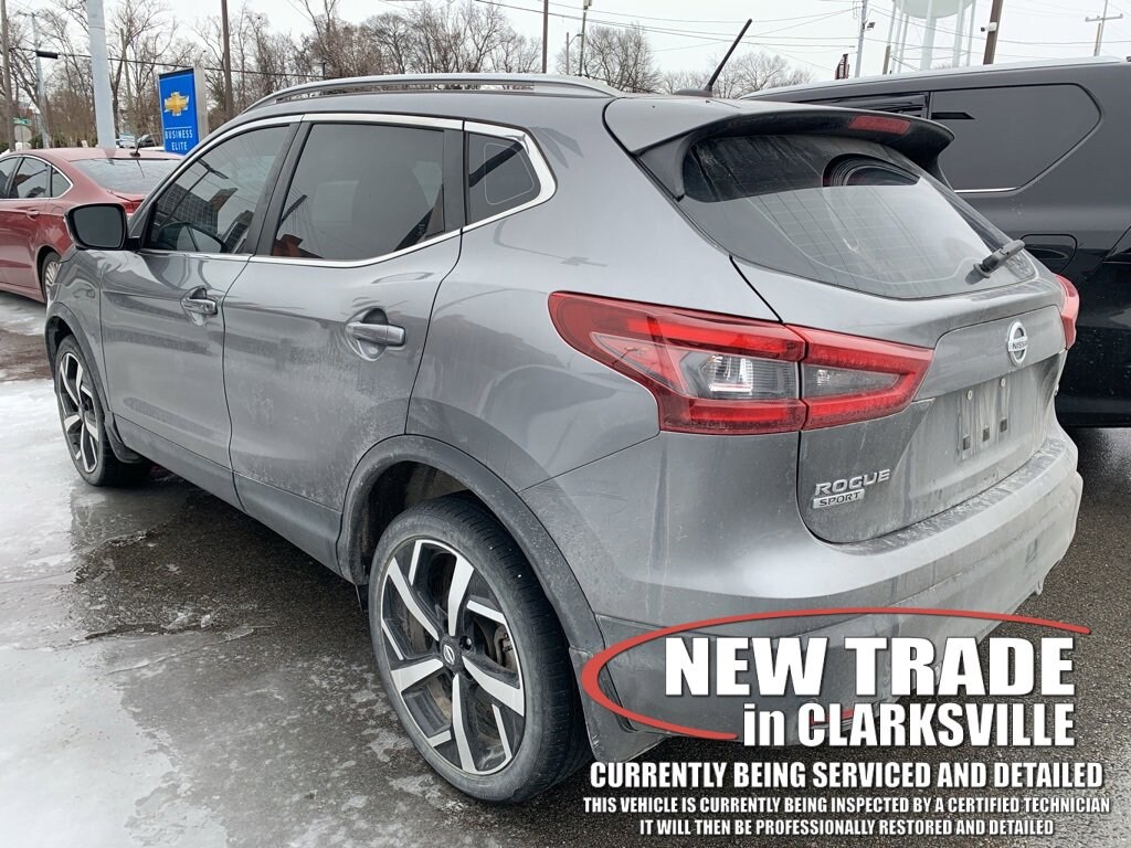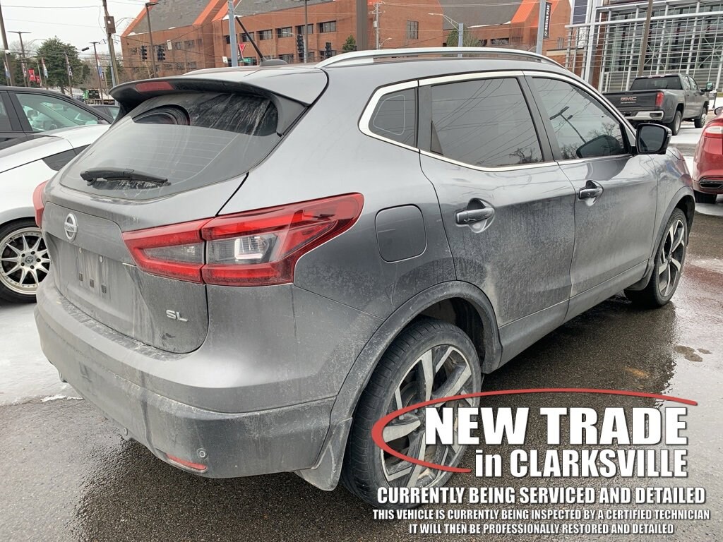 The Pre-Owned 2021 Nissan Rogue Sport SL with 2.0L DOHC at Serra Clarksville. Well equipped: Premium Package (4-Way Power Passenger Seat, Auto-Dimming Inside Mirror, Bose Premium Audio System w/Dual Driver Subwoofer, Driver Seat Memory, Fog Lamps, LED Low & High Beam Headlights, Outside Mirrors w/Memory, and Power Sliding Moonroof), 2-Piece Carpeted Cargo Area Protector & Floor Mats, 4-Wheel Disc Brakes, 6 Speakers, 6.386 Axle Ratio, ABS brakes, Air Conditioning, Alloy wheels, AM/FM radio: SiriusXM, Auto High-beam Headlights, Automatic temperature control, Blind Spot Warning, Brake assist, Bumpers: body-color, CD player, Delay-off headlights, Driver door bin, Driver vanity mirror, Dual front impact airbags, Dual front side impact airbags, Electronic Stability Control, Emergency communication system: NissanConnect Services, First Aid Kit, Four wheel independent suspension, Front anti-roll bar, Front Bucket Seats, Front Center Armrest, Front dual zone A/C, Front reading lights, Fully automatic headlights, Heated door mirrors, Heated front seats, Heated steering wheel, Illuminated entry, Knee airbag, Leather-Appointed Seat Trim, Low tire pressure warning, Navigation system: NissanConnect Navigation, NissanConnect featuring Apple CarPlay and Android Auto, NissanConnect Services Powered By SiriusXM, Occupant sensing airbag, Outside temperature display, Overhead airbag, Overhead console, Panic alarm, Passenger door bin, Passenger vanity mirror, Power door mirrors, Power driver seat, Power passenger seat, Power steering, Power windows, Quick Comfort Heated Front Bucket Seats, Radio data system, Radio: AM/FM NissanConnect w/Navigation, Rear anti-roll bar, Rear Parking Sensors, Rear seat center armrest, Rear side impact airbag, Rear window defroster, Rear window wiper, Remote keyless entry, Security system, Speed control, Speed-sensing steering, Speed-Sensitive Wipers, Splash Guards, Split folding rear seat, Spoiler, Steering wheel mounted audio controls, Tachometer, Telescoping steering wheel, Tilt steering wheel, Traction control, Trip computer, Turn signal indicator mirrors, Variably intermittent wipers, and Wheels: 19 x 7.0 Aluminum Alloy.