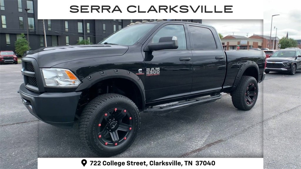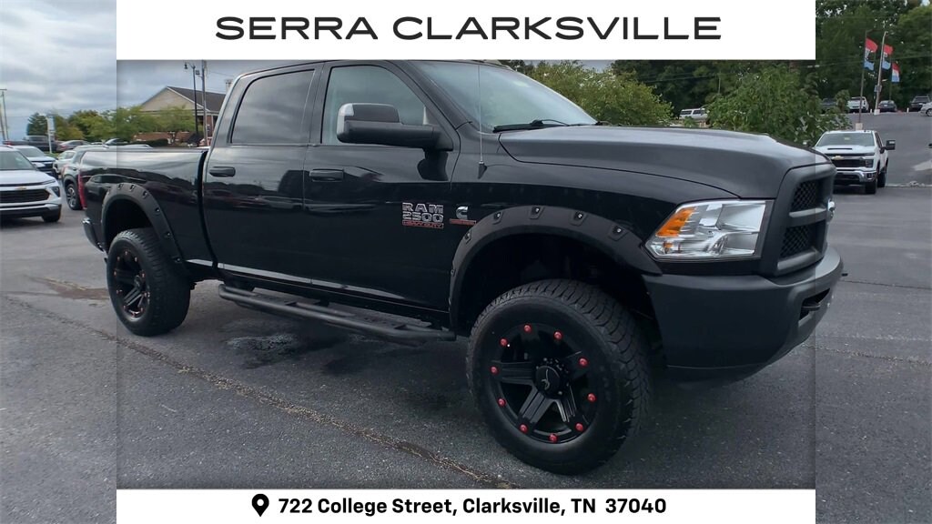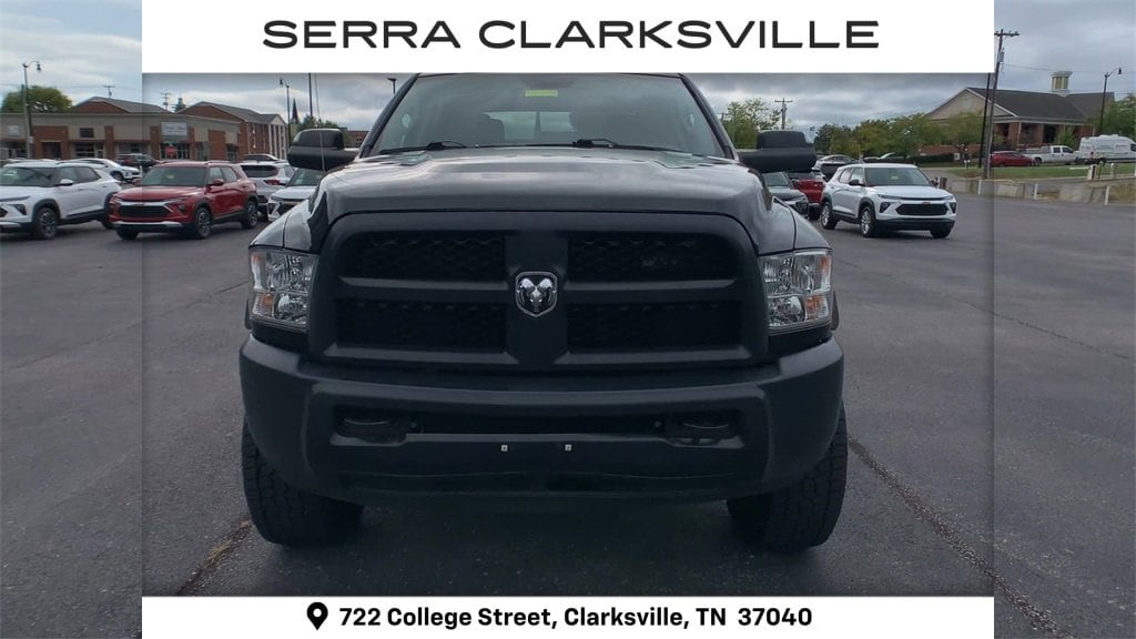 Local new car trade-in! Clean CARFAX. The Pre-Owned 2018 Ram 2500 Tradesman with Cummins 6.7L I6 Turbodiesel at Serra Clarksville. Well equipped: Popular Equipment Group (1-Yr SiriusXM Radio Service, Carpet Floor Covering, For More Info, Call 800-643-2112, Front & Rear Floor Mats, Remote Keyless Entry, and SiriusXM Satellite Radio), Protection Group, Quick Order Package 2FA Tradesman, 17 x 7.5 Steel Styled Wheels, 180 Amp Alternator, 3.42 Axle Ratio, 3.73 Axle Ratio, 4-Wheel Disc Brakes, 40/20/40 Split Bench Seat, 5.0 Touchscreen Display, 6 Speakers, ABS brakes, Air Conditioning, AM/FM radio, Anti-Spin Differential Rear Axle, Auto-dimming Rear-View mirror, Black Exterior Mirrors, Brake assist, Center Hub, Charge Only Remote USB Port, Clearance Lamps, Delay-off headlights, Driver door bin, Dual front impact airbags, Dual front side impact airbags, Electronic Stability Control, Electronically Controlled Throttle, Exterior Mirrors Courtesy Lamps, Exterior Mirrors w/Heating Element, Exterior Mirrors w/Supplemental Signals, Front anti-roll bar, Front Center Armrest, Fully automatic headlights, GPS Antenna Input, Heated door mirrors, Heavy Duty Vinyl 40/20/40 Split Bench Seat, Hemi Badge, Integrated Voice Command w/Bluetooth, Locking Tailgate, Low tire pressure warning, Manual Adjust Seats, Manufacturer's Statement of Origin, Media Hub (USB, AUX), Next Generation Engine Controller, Occupant sensing airbag, Overhead airbag, Overhead Console, ParkView Rear Back-Up Camera, Passenger door bin, Power Black Trailer Tow Mirrors, Power door mirrors, Power steering, Power windows, Radio data system, Radio: 3.0, Radio: Uconnect 3 w/5 Display, Rear Folding Seat, Rear step bumper, Rear View Day/Night Mirror, Speed control, Tachometer, Temperature & Compass Gauge, Tilt steering wheel, Tip Start, Traction control, Trailer Tow Mirrors, Variably intermittent wipers, Vendor Painted Cargo Box Tracking, and Voltmeter.