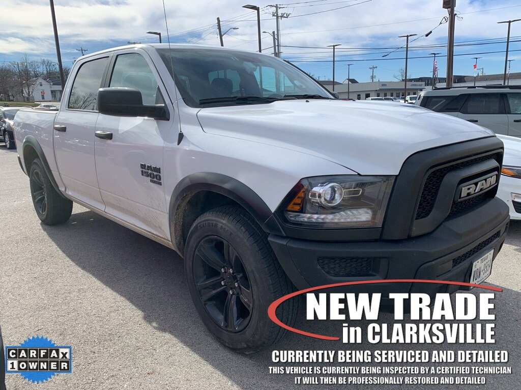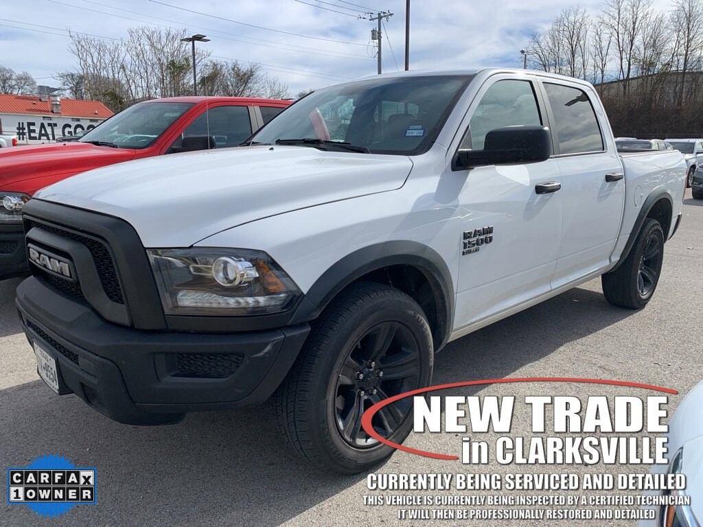 CARFAX One-Owner. Clean CARFAX. Bright White 2024 Ram 1500 Classic WarlockThe Pre-Owned 2024 Ram 1500 Classic Warlock with 3.6L V6 24V VVT at Serra Clarksville. Well equipped: Quick Order Package 29F Warlock (B-Pillar Black Out, Bi-Function Halogen Projector Headlamps, Black Exterior Truck Badging, Black Grille w/RAM Lettering, Black Headlamp Filler Panel, Black Powder Coated Front Bumper, Black Powder Coated Rear Bumper, Black RAM Head Tailgate Badge, Black Wheel Flares, Front Wheel Well Liners, ParkSense Rear Park Assist System, Semi-Gloss Black Hub, Sport Tail Lamps, Warlock, Warlock Interior Accents, and Wheels: 20 x 9 High Gloss Black Aluminum), 17 x 7 Aluminum Wheels, 3.21 Rear Axle Ratio, 4-Wheel Disc Brakes, 40/20/40 Split Bench Seat, 6 Speakers, ABS brakes, Active Grille Shutters, Air Conditioning, All Radio Equipped Vehicles, Alloy wheels, AM/FM radio: SiriusXM, Audio Input Jack for Mobile Devices, Black Exterior Mirrors, Brake assist, Bumpers: chrome, Center Hub, Cloth 40/20/40 Bench Seat, Compass, Delay-off headlights, Driver door bin, Dual front impact airbags, Dual front side impact airbags, Electronic Shift, Electronic Stability Control, Exterior Mirrors w/Heating Element, Front anti-roll bar, Front Armrest w/3 Cupholders, Front Center Armrest w/Storage, Front License Plate Bracket, Front reading lights, Front wheel independent suspension, Fully automatic headlights, GPS Antenna Input, Heated door mirrors, Illuminated entry, Integrated Voice Command w/Bluetooth, Low tire pressure warning, Manufacturer's Statement of Origin, Occupant sensing airbag, Outside temperature display, Overhead airbag, Overhead console, Panic alarm, ParkView Rear Back-Up Camera, Passenger door bin, Passenger vanity mirror, Power door mirrors, Power steering, Power windows, Radio data system, Radio: Uconnect 3 w/5 Display, Rear anti-roll bar, Rear seat center armrest, Rear step bumper, Remote keyless entry, Remote USB Port, Remote USB Port - Charge Only, Speed control, Storage Tray, Tachometer, Tilt steering wheel, Tip Start, Traction control, Trip computer, Variably intermittent wipers, and Voltmeter.RWD 3.6L V6 24V VVT 8-Speed AutomaticRecent Arrival!