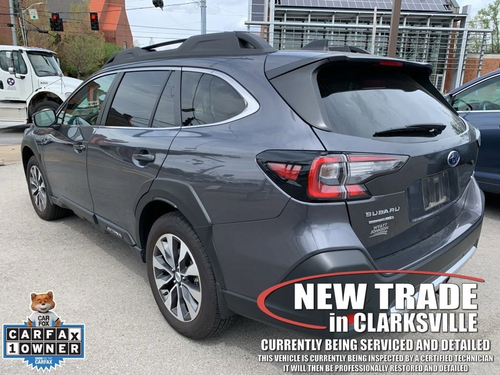 The Pre-Owned 2025 Subaru Outback Limited with 2.5L 4-Cylinder DOHC 16V at Serra Clarksville. Well equipped: Standard Model, 12 Speakers, 4-Wheel Disc Brakes, ABS brakes, Air Conditioning, All-Weather Floor Liners, Alloy wheels, AM/FM radio: SiriusXM with 360L, Apple CarPlay & Android Auto, Auto High-beam Headlights, Auto-dimming Rear-View mirror, Automatic temperature control, Brake assist, Bumpers: body-color, Cargo Net, Compass, Door Projector Light, Driver door bin, Driver vanity mirror, Dual front impact airbags, Dual front side impact airbags, Electronic Stability Control, Emergency communication system: MySubaru Safety (3-year free trial), Exterior Parking Camera Rear, Footwell Illumination Kit, Four wheel independent suspension, Front anti-roll bar, Front Bucket Seats, Front Center Armrest w/Storage, Front dual zone A/C, Front fog lights, Front reading lights, Fully automatic headlights, Garage door transmitter: HomeLink, harman/kardon® Speakers, Heated door mirrors, Heated Front Bucket Seats, Heated front seats, Heated rear seats, Heated steering wheel, HVAC memory, Illuminated entry, Knee airbag, Leather Shift Knob, Leather steering wheel, Low tire pressure warning, Memory seat, Navigation system: TomTom Navigation w/what3words, Occupant sensing airbag, Outside temperature display, Overhead airbag, Overhead console, Panic alarm, Passenger door bin, Passenger vanity mirror, Perforated Leather-Trimmed Upholstery, Power door mirrors, Power driver seat, Power Liftgate, Power moonroof, Power passenger seat, Power steering, Power windows, Radio: Subaru 11.6 Multimedia System w/Navigation, Rear anti-roll bar, Rear seat center armrest, Rear window defroster, Rear window wiper, Remote keyless entry, Roof rack, Security system, Speed control, Speed-sensing steering, Splash Guards, Split folding rear seat, Spoiler, Steering wheel mounted audio controls, Tachometer, Telescoping steering wheel, Tilt steering wheel, Traction control, Trip computer, Turn signal indicator mirrors, Variably intermittent wipers, Wheels: 18 x 7J Black Aluminum-Alloy, and Wireless Charger.