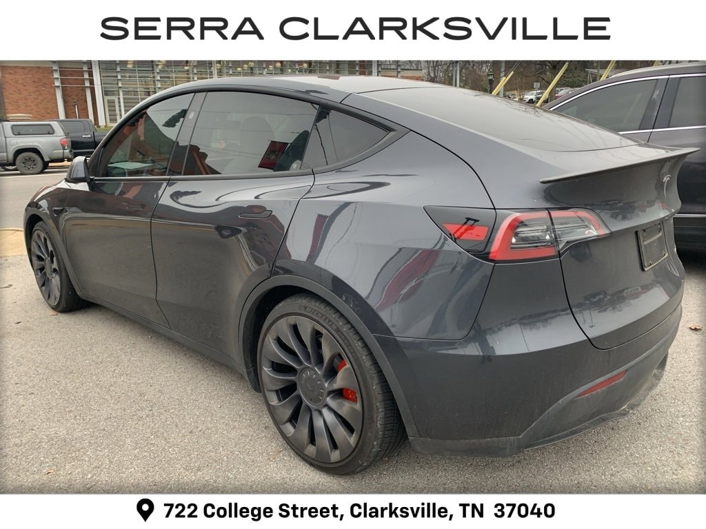 The Pre-Owned 2024 Tesla Model Y Performance with Electric Motor at Serra Clarksville. Well equipped: 14 Speakers, 4-Wheel Disc Brakes, 5 Seat Interior, 9.0 Axle Ratio, ABS brakes, Air Conditioning, Alloy wheels, Audio memory, Auto High-beam Headlights, Auto tilt-away steering wheel, Auto-dimming door mirrors, Auto-dimming Rear-View mirror, Automatic temperature control, Brake assist, Bumpers: body-color, Compass, Delay-off headlights, Driver door bin, Driver vanity mirror, Dual front impact airbags, Dual front side impact airbags, Electronic Stability Control, Emergency communication system, Exterior Parking Camera Rear, Four wheel independent suspension, Front anti-roll bar, Front Bucket Seats, Front Center Armrest, Front dual zone A/C, Front fog lights, Front reading lights, Fully automatic headlights, Genuine wood dashboard insert, Heated door mirrors, Heated front seats, Heated rear seats, Heated steering wheel, HVAC memory, Illuminated entry, Knee airbag, Lane Departure Warning System, Low tire pressure warning, Memory seat, Navigation System, Occupant sensing airbag, Outside temperature display, Overhead airbag, Passenger door bin, Passenger vanity mirror, Power door mirrors, Power driver seat, Power Liftgate, Power passenger seat, Power steering, Power windows, Radio data system, Radio: Premium Audio System w/13 Speakers, Rain sensing wipers, Rear reading lights, Rear seat center armrest, Rear window defroster, Security system, Speed control, Speed-sensing steering, Split folding rear seat, Spoiler, Steering wheel memory, Steering wheel mounted A/C controls, Steering wheel mounted audio controls, Telescoping steering wheel, Tilt steering wheel, Traction control, Trip computer, Variably intermittent wipers, Vegan Leather Seat Trim, and Wheels: 21 x 9.5 Fr & 21 x 10.5 Rr Uberturbine.