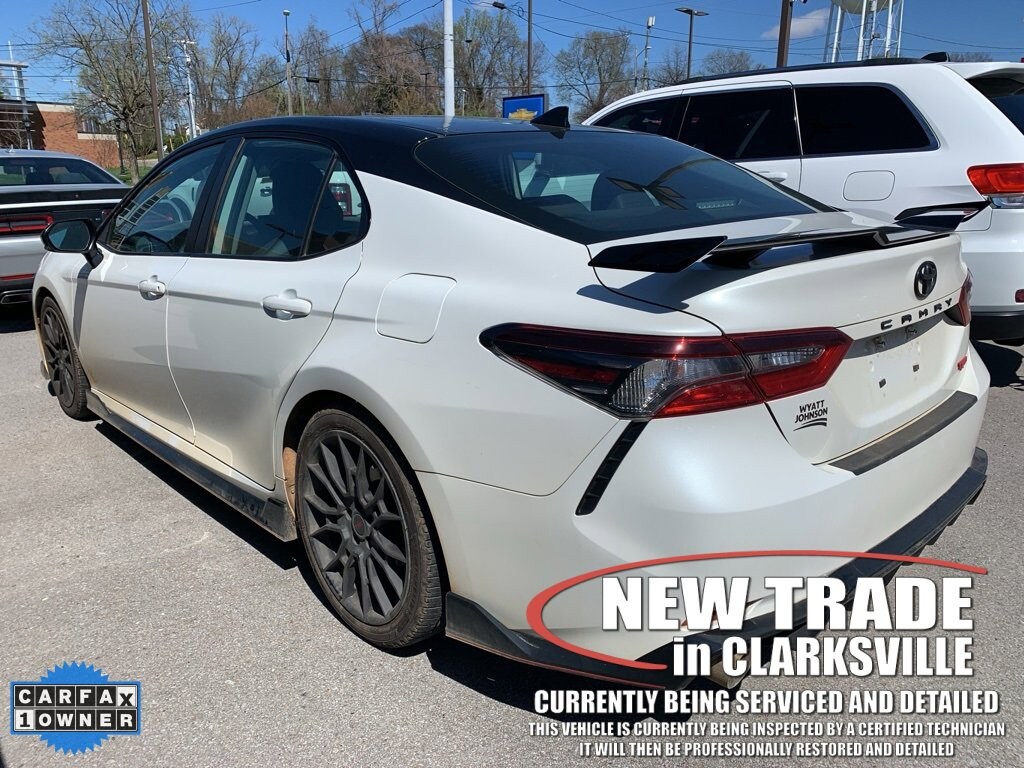 The Pre-Owned 2024 Toyota Camry TRD V6 with 3.5L V6 DOHC 24V at Serra Clarksville. Well equipped: TRD Package w/JBL Audio (Radio: Audio Plus w/JBL), Black W/Silver Performance Artificial Leather, 4-Wheel Disc Brakes, 6 Speakers, ABS brakes, Air Conditioning, All Weather Floor Liners/Cargo Tray (TMS), Alloy wheels, AM/FM radio: SiriusXM, Apple CarPlay/Android Auto, Auto High-beam Headlights, Automatic temperature control, Brake assist, Bumpers: body-color, Delay-off headlights, Door Edge Guard (TMS), Driver door bin, Driver vanity mirror, Dual front impact airbags, Dual front side impact airbags, Electronic Stability Control, Emergency communication system: Safety Connect (1-year trial), Exterior Parking Camera Rear, Four wheel independent suspension, Front anti-roll bar, Front Bucket Seats, Front Center Armrest, Front dual zone A/C, Front reading lights, Fully automatic headlights, Heated door mirrors, Illuminated entry, Knee airbag, Leather Shift Knob, Leather steering wheel, Low tire pressure warning, Occupant sensing airbag, Outside temperature display, Overhead airbag, Overhead console, Panic alarm, Passenger door bin, Passenger vanity mirror, Power door mirrors, Power driver seat, Power steering, Power windows, Radio data system, Radio: Audio, Rear anti-roll bar, Rear Bumper Applique (TMS), Rear reading lights, Rear seat center armrest, Rear side impact airbag, Rear window defroster, Remote keyless entry, Security system, Speed control, Speed-sensing steering, Spoiler, Sport SofTex Seat Trim w/Fabric Inserts, Steering wheel mounted audio controls, Tachometer, Telescoping steering wheel, Tilt steering wheel, Traction control, Trip computer, Turn signal indicator mirrors, Variably intermittent wipers, and Wheels: 19 x 8.5J Alloy.