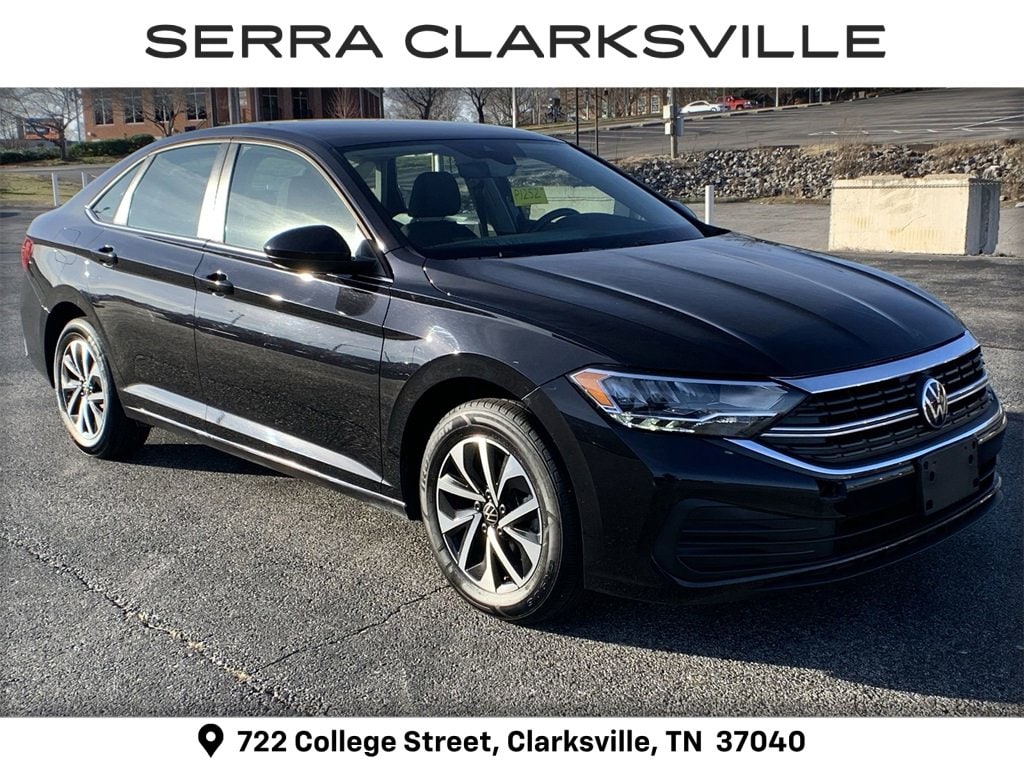 The Pre-Owned 2024 Volkswagen Jetta 1.5T S with 1.5L I-4 DI DOHC Turbocharged at Serra Clarksville. Well equipped: Light Gray Cloth, 4 Speakers, 4-Wheel Disc Brakes, ABS brakes, Active Blind Spot Monitor, Air Conditioning, Alloy wheels, Auto-dimming Rear-View mirror, Brake assist, Bumpers: body-color, Cloth Seat Trim, Delay-off headlights, Driver door bin, Driver vanity mirror, Dual front impact airbags, Dual front side impact airbags, Electronic Stability Control, Emergency communication system: VW Car-Net Safe & Secure 5-year, Exterior Parking Camera Rear, Front anti-roll bar, Front Bucket Seats, Front Center Armrest, Front Seats, Front wheel independent suspension, Fully automatic headlights, Heated door mirrors, Illuminated entry, Leather Shift Knob, Leather steering wheel, Low tire pressure warning, Occupant sensing airbag, Outside temperature display, Overhead airbag, Overhead console, Panic alarm, Passenger door bin, Passenger vanity mirror, Power door mirrors, Power steering, Power windows, Radio data system, Radio: MIB3 Composition Color w/6.5 Touchscreen, Rain sensing wipers, Rear anti-roll bar, Rear reading lights, Rear window defroster, Remote keyless entry, Speed control, Speed-sensing steering, Split folding rear seat, Steering wheel mounted audio controls, Tachometer, Telescoping steering wheel, Tilt steering wheel, Traction control, Trip computer, Variably intermittent wipers, and Wheels: 16 2-Tone Machined Alloy.